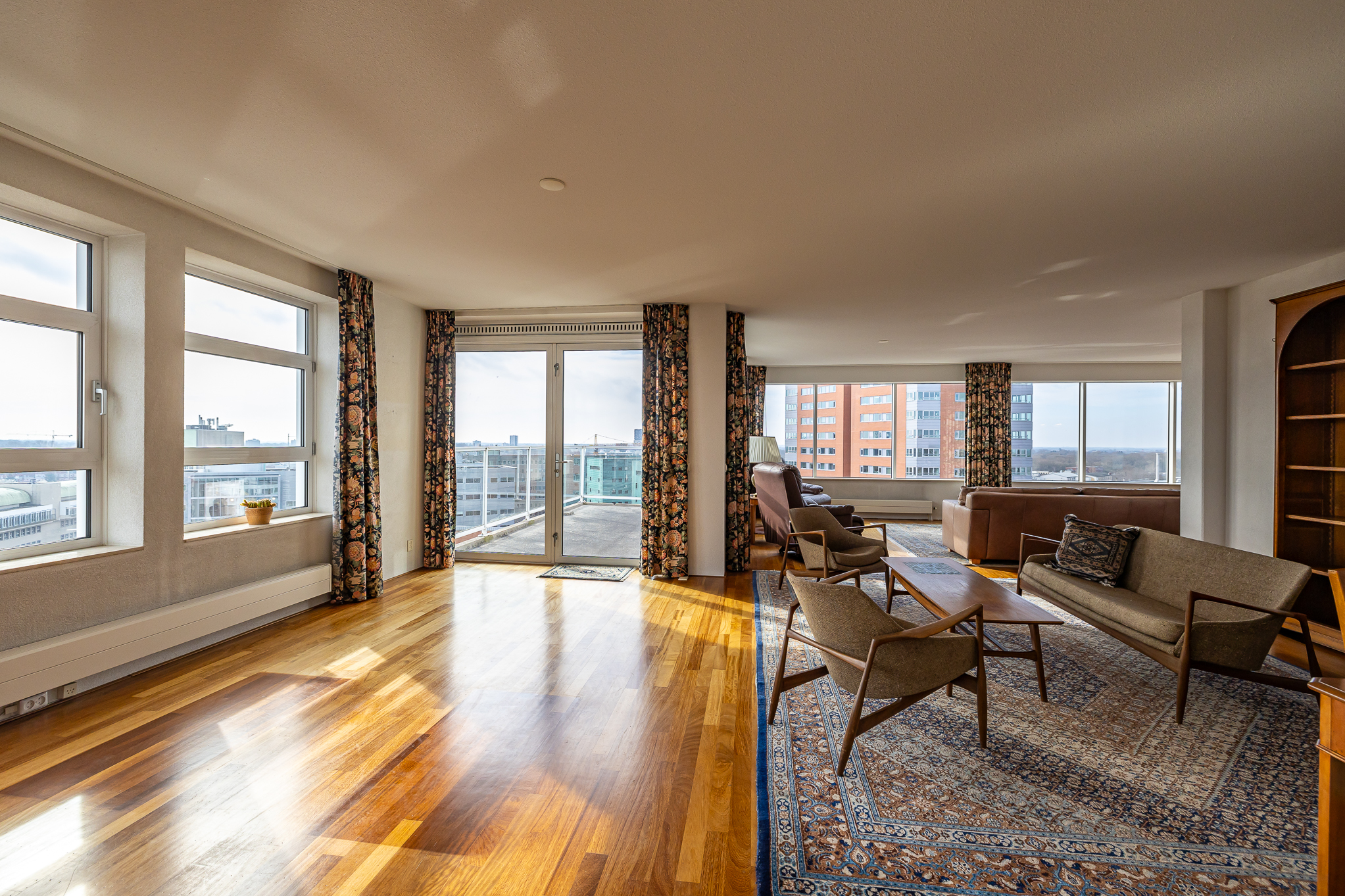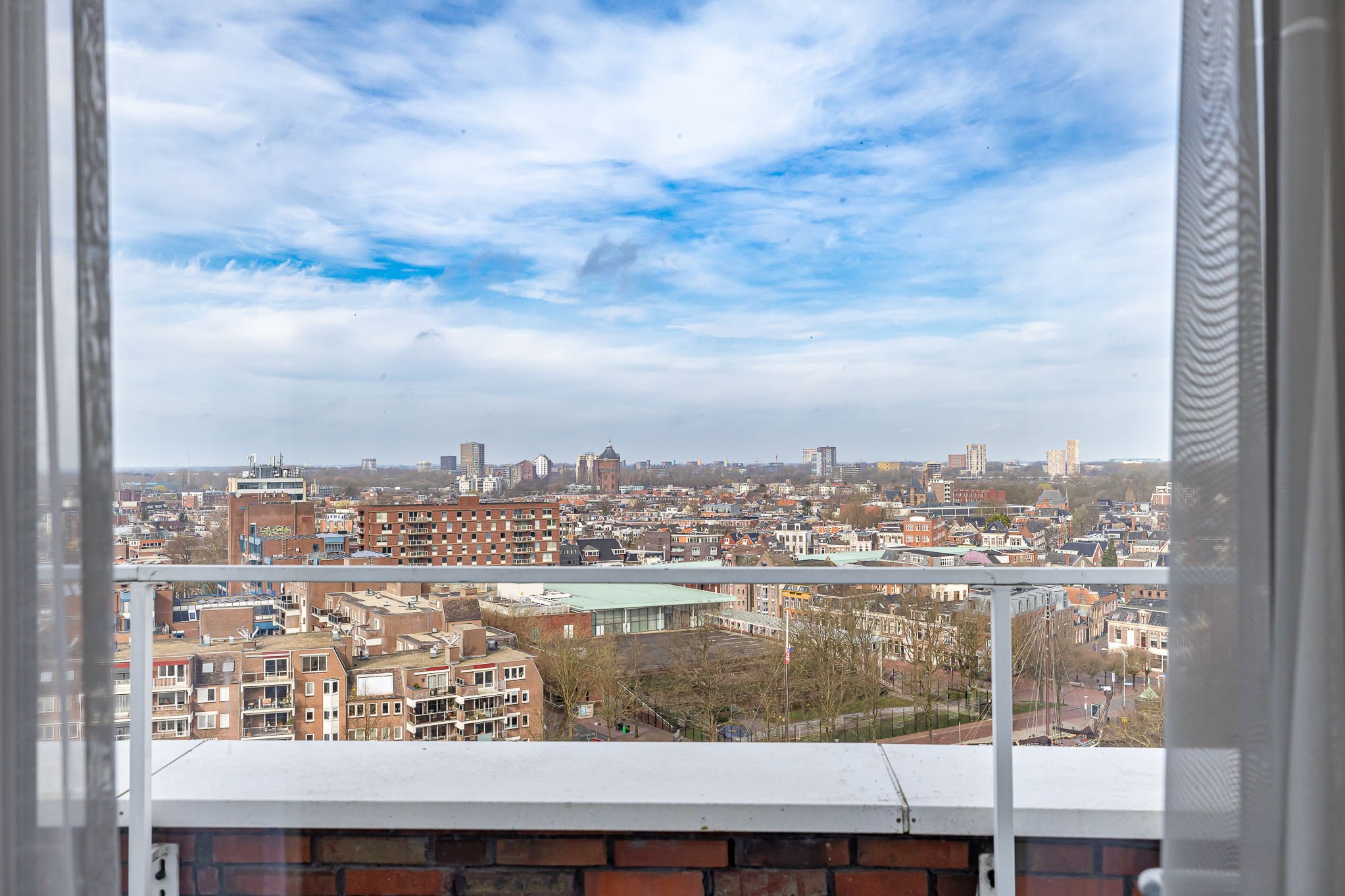 Penthouse Groningen is a rare residence offering refined urban living at the edge of the city’s historic heart. This exclusive penthouse provides 263 m² of living space, where floor-to-ceiling views extend over the Verbindingskanaal, the Zuiderhaven, and the tree-lined Praediniussingel. The property’s distinctive design, achieved by uniting two penthouses, creates a spacious layout with four bedrooms and two bathrooms, including features such as a whirlpool, sauna, and steam cabin.