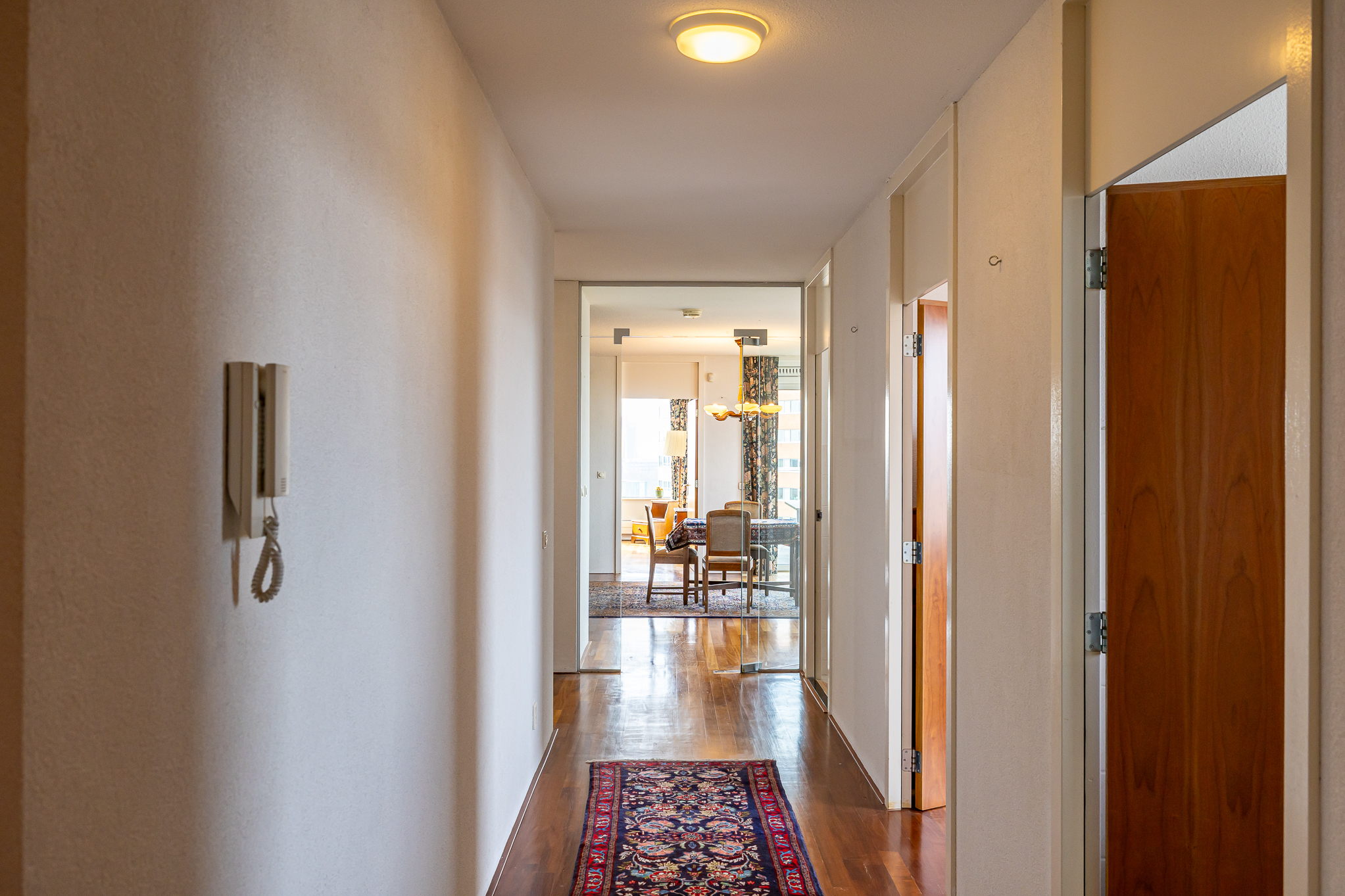 A unique feature, supported by preliminary municipality approval, is the potential to divide the penthouse into two independent apartments, each with its own entrance and flexible layout.