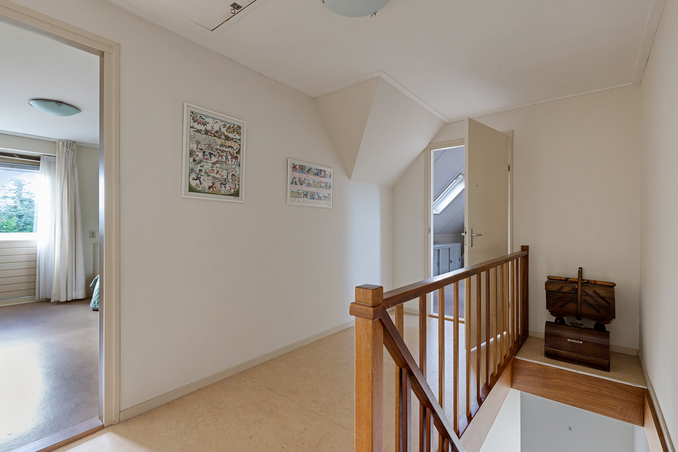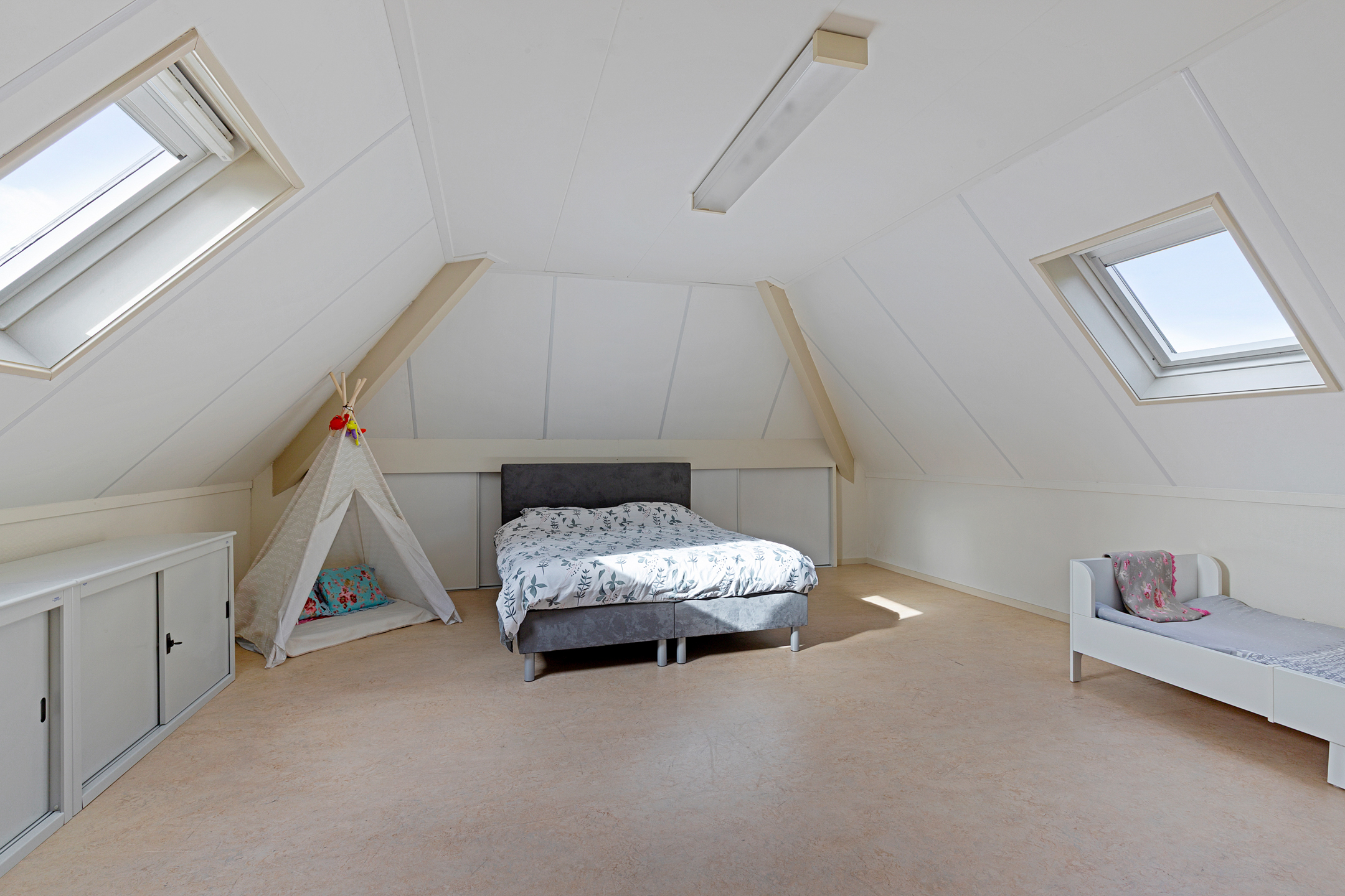 A well-insulated attic with natural light (two windows) is accessible via loft stairs. Thanks to the roof structure, this space has standing height and makes an excellent dry storage area. Mechanical ventilation is also located here.
