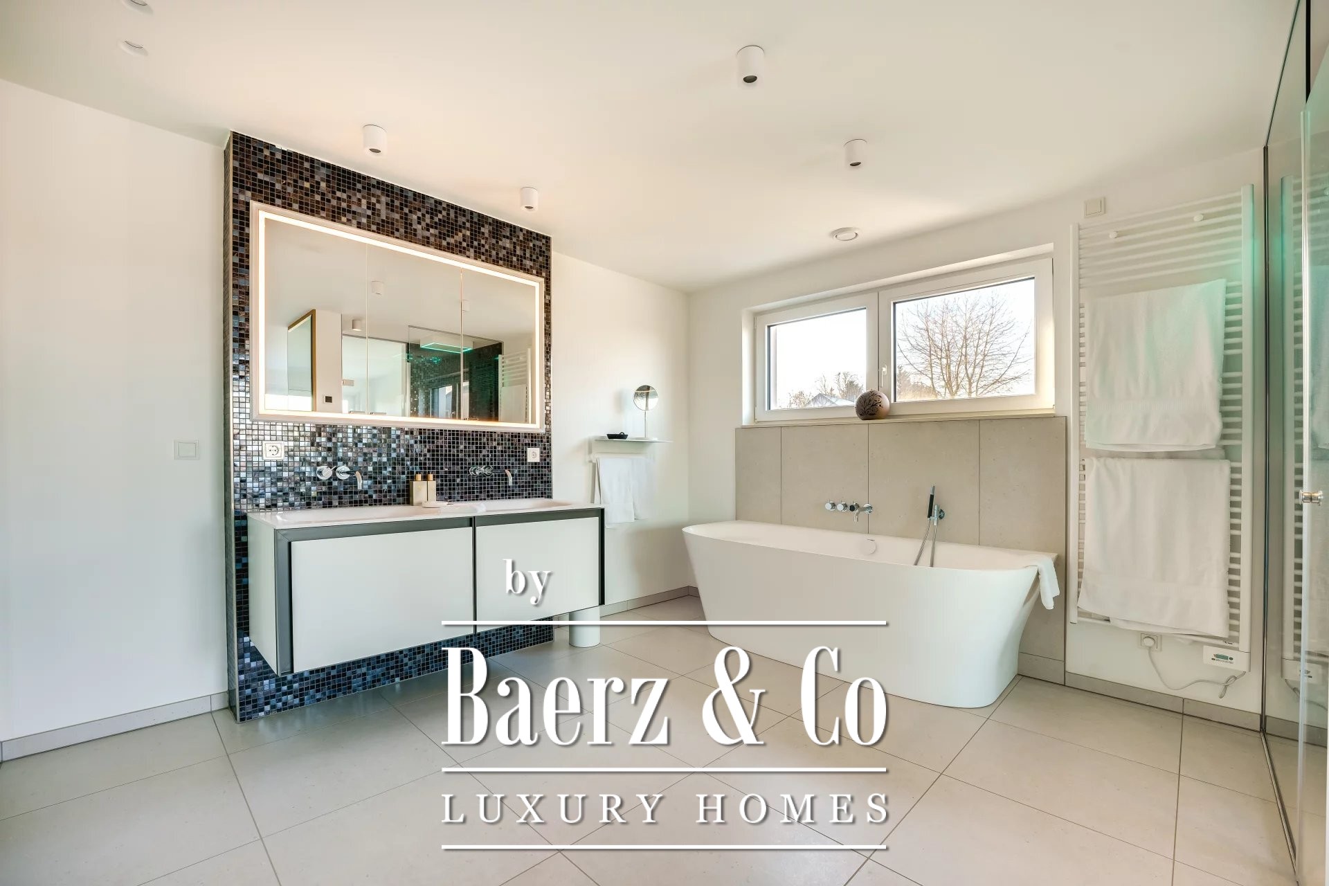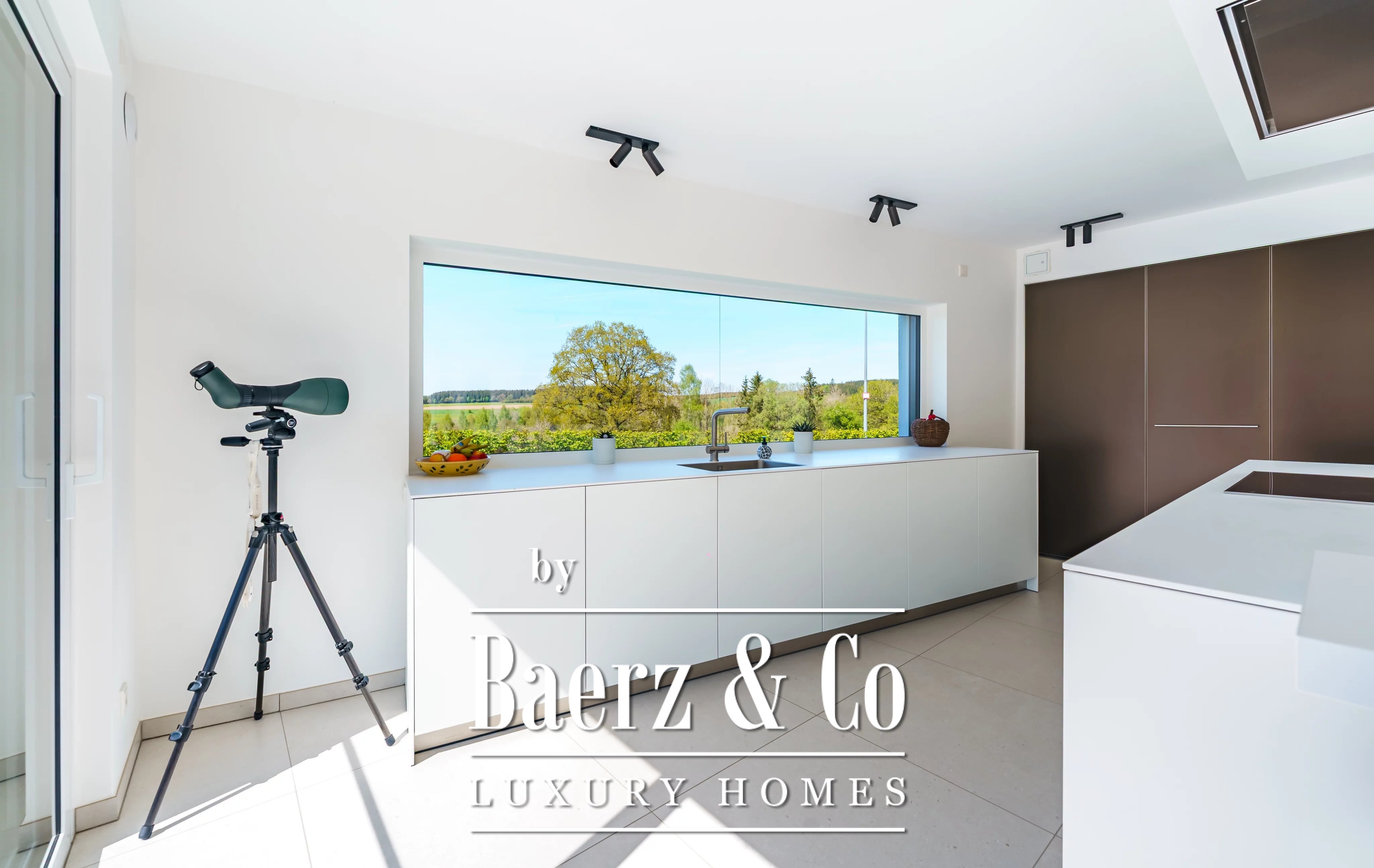 Immopartner offers a sleek, upscale villa with swimming pool and exceptional view of a Natura 2000 area.