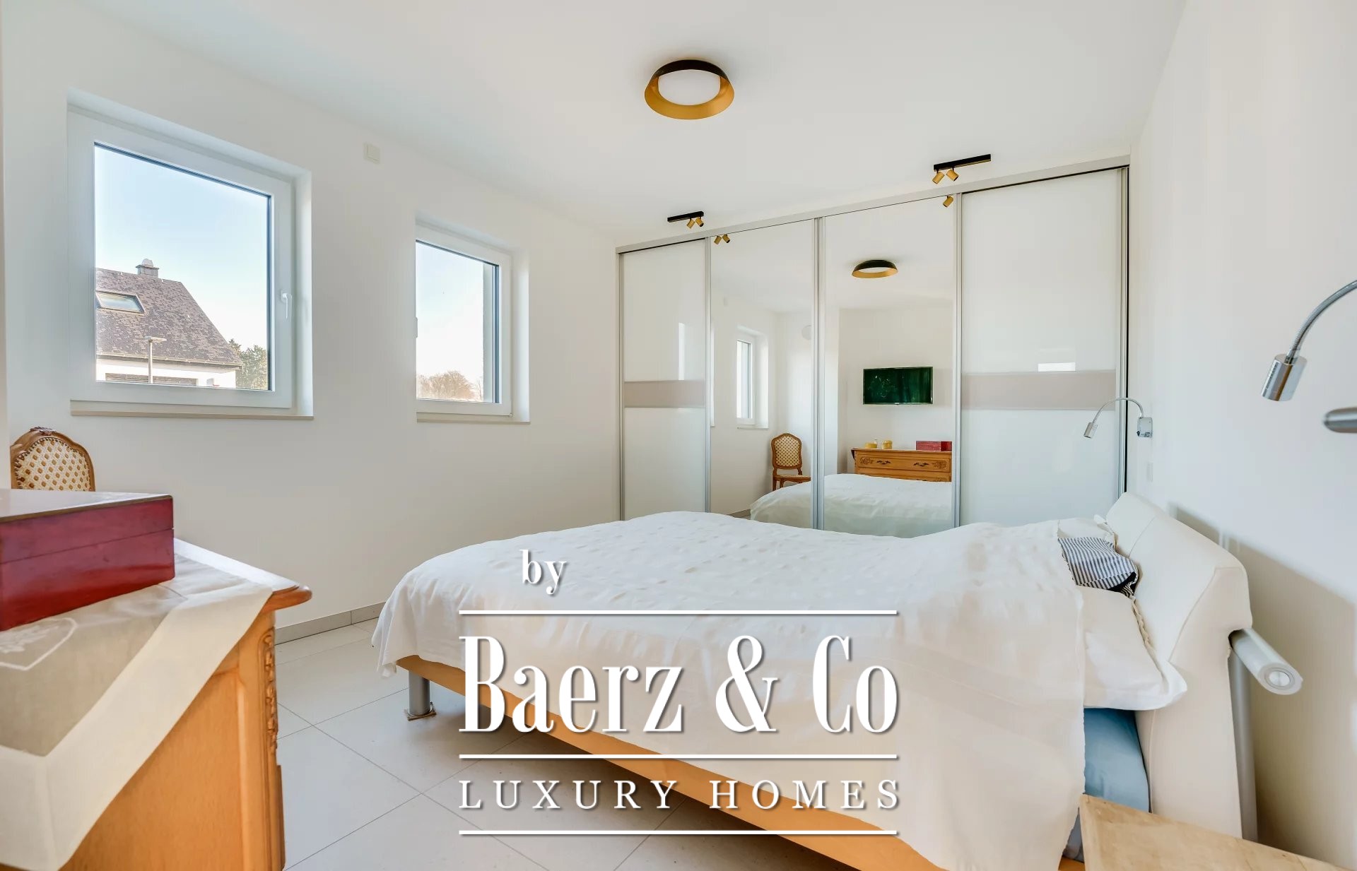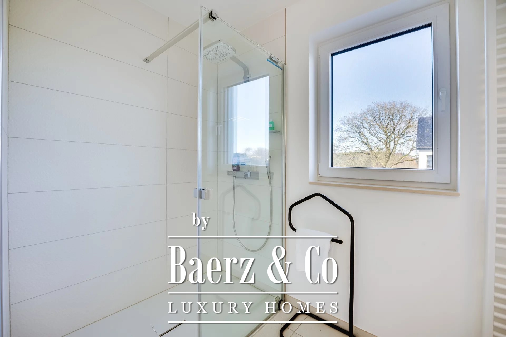 It is built on a 7.01 ares plot of land facing South-South-West, in a beautiful subdivision close to nature and all amenities (Shopping Center Massen 4 Km 6 minutes by car, Knauf Shopping Schmiede 2.4 Km 3 minutes by car, Bus stop : 250m, Troisvierges train station 7.9 Km 11 minutes by car, crèches, Schools nearby Troisvierges, Clervaux Ecole internationale 12Km, Ettelbruck 36km, Luxembourg Kirchberg 61 km.....)
