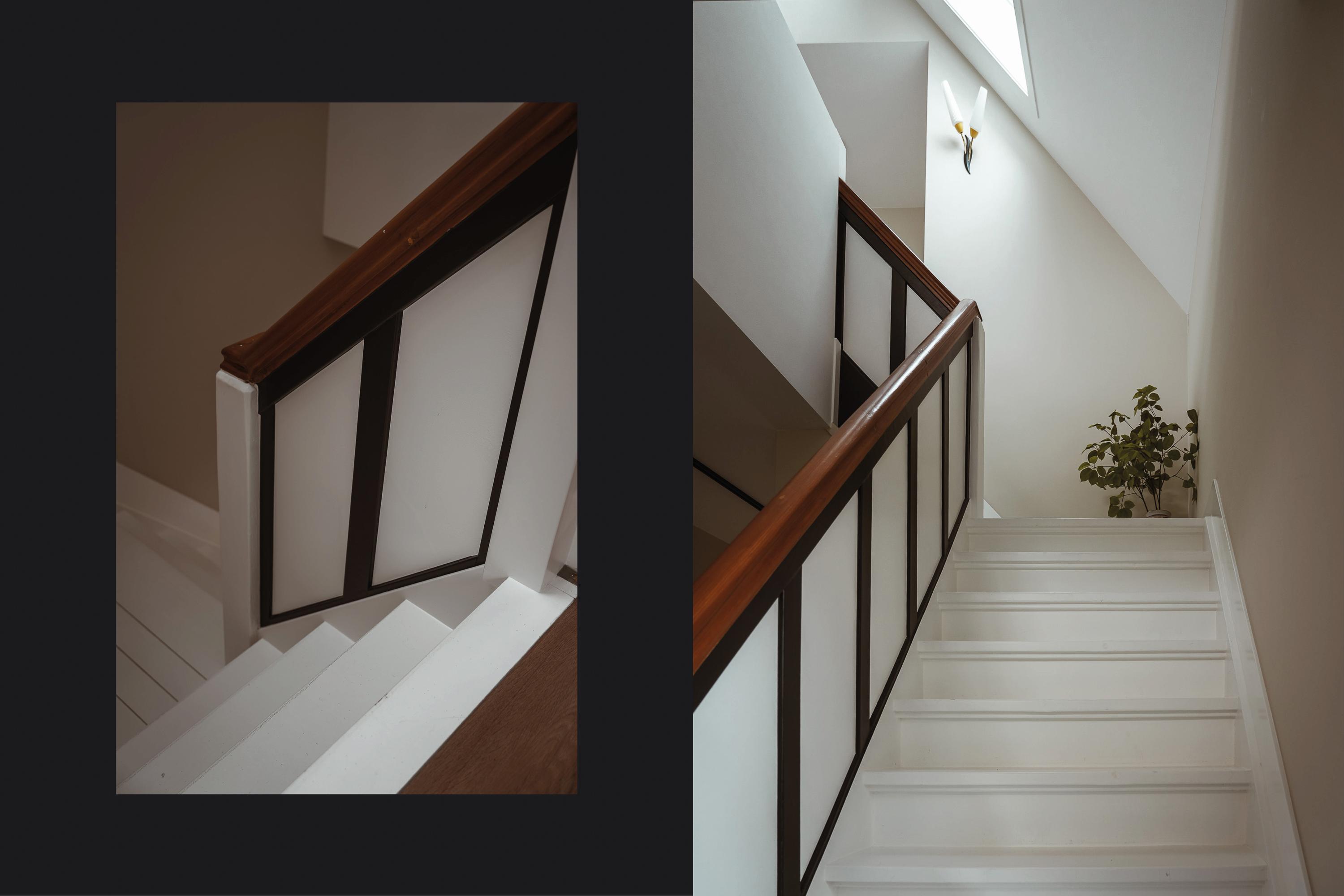 The original staircase leads to the first floor, where the sense of space is immediately apparent.