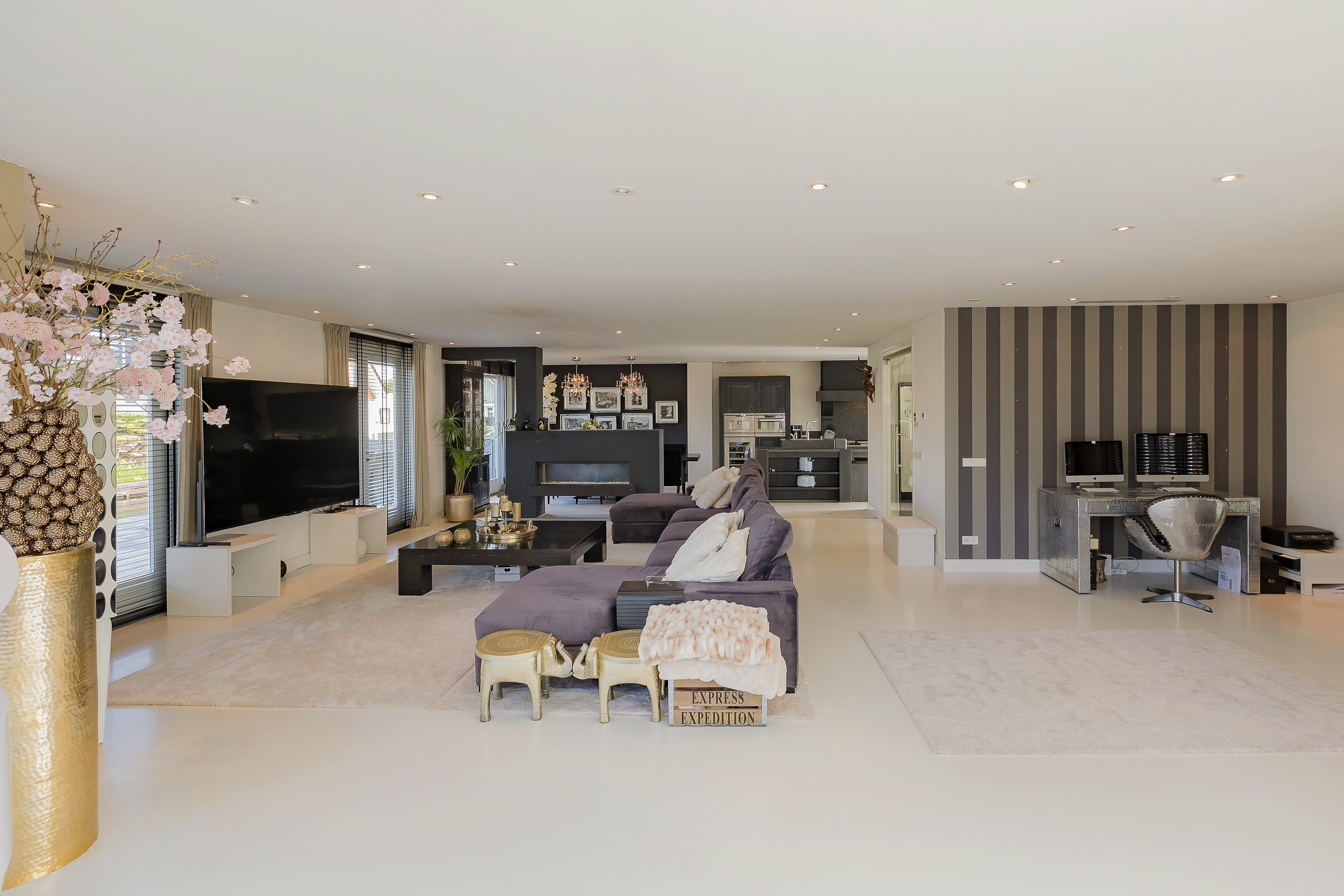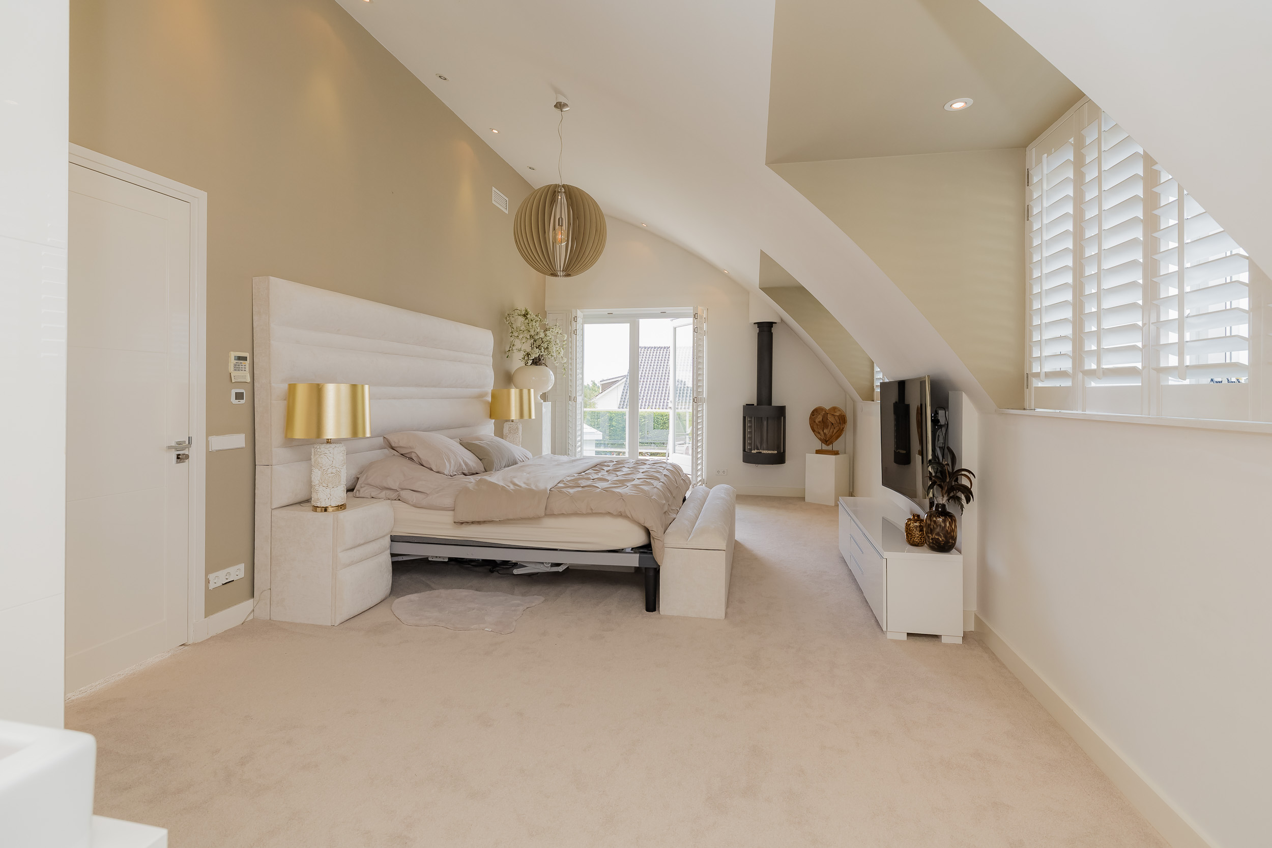 • Spacious living room with gas fireplace and luxury harmonica doors