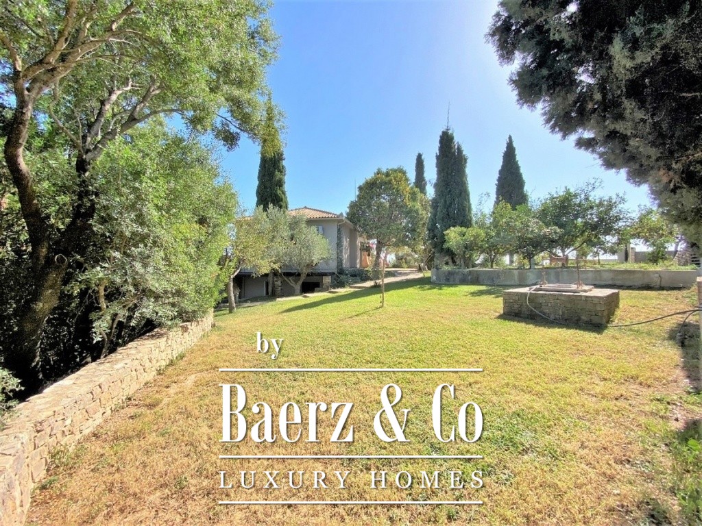Country house Kalamaki presents a rare opportunity for refined living just 200 meters from the shoreline. This 320 m² residence, arranged over two discreet levels on a 2,000 m² plot, offers a tranquil retreat in a prime Greek coastal setting. The main house, accessed through a paved courtyard surrounded by lawns and ornamental trees, features an open-plan living space integrating kitchen and lounge, leading onto a broad terrace with panoramic sea views. Light and space define the interior, complemented by two serene bedrooms, a bathroom, and a guest WC.