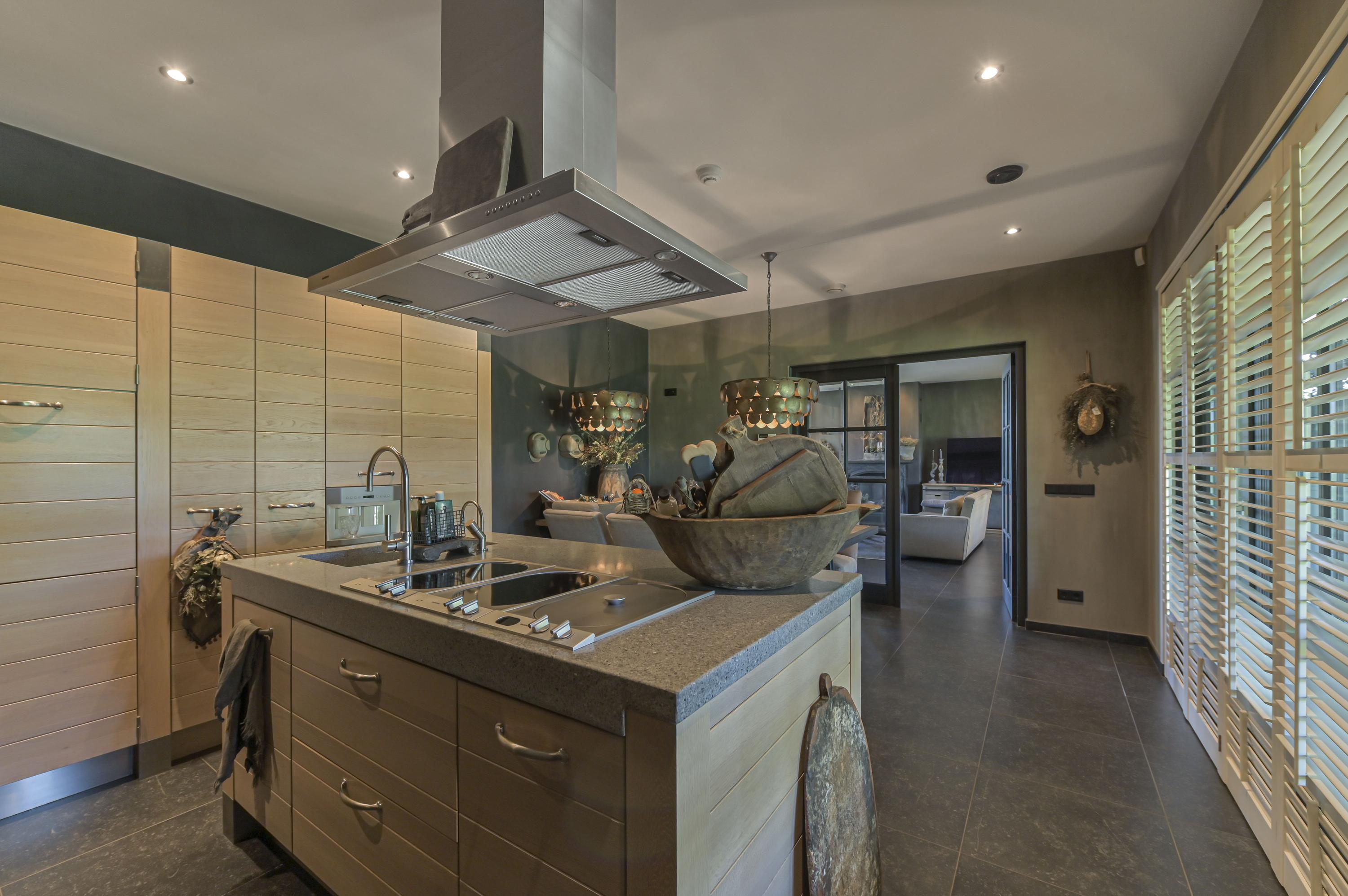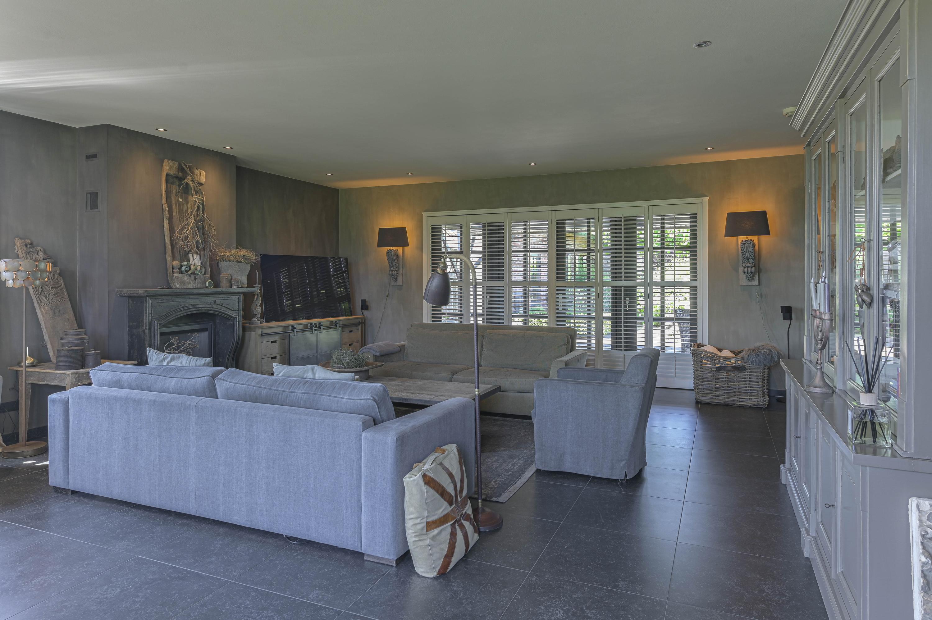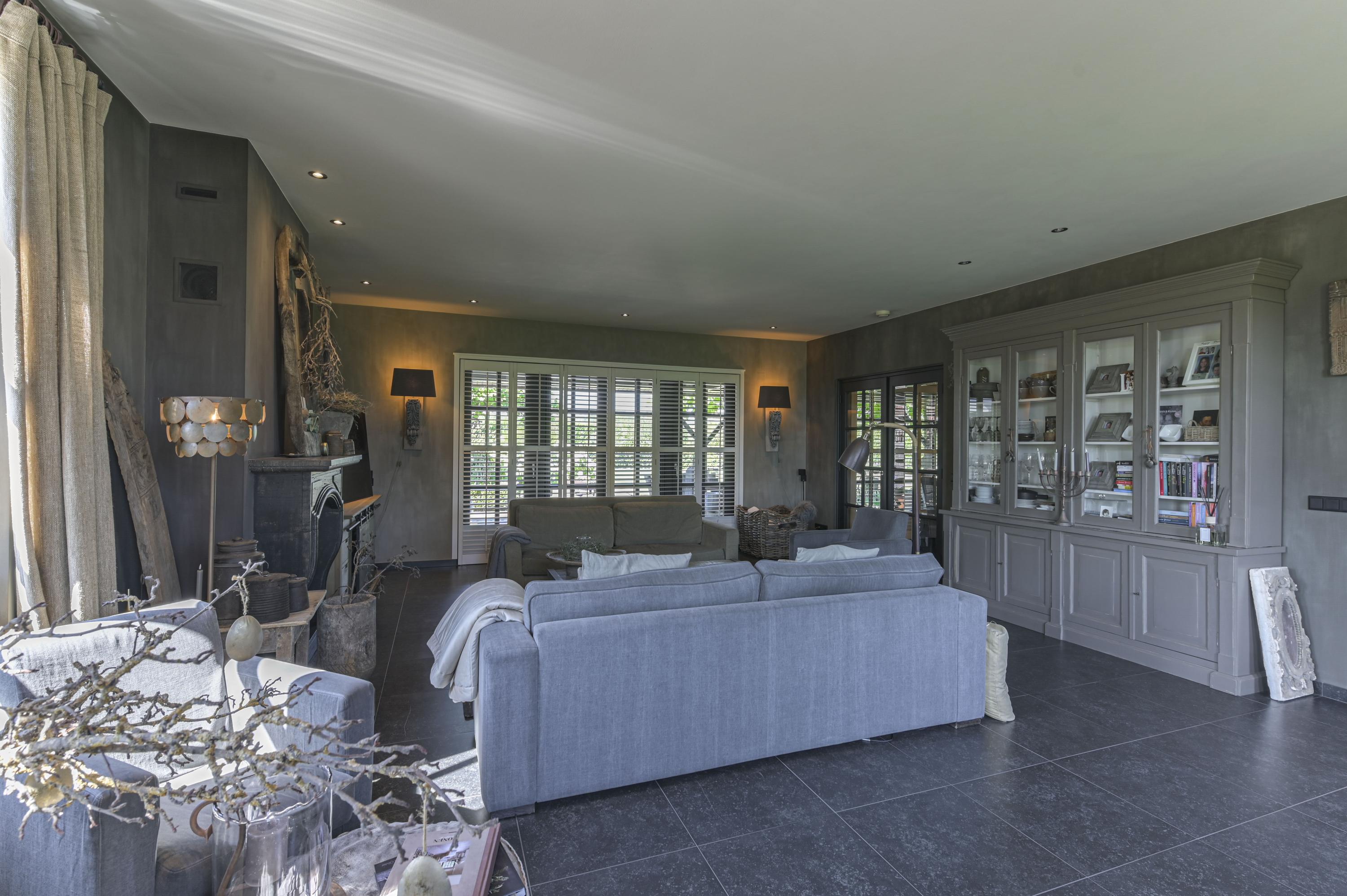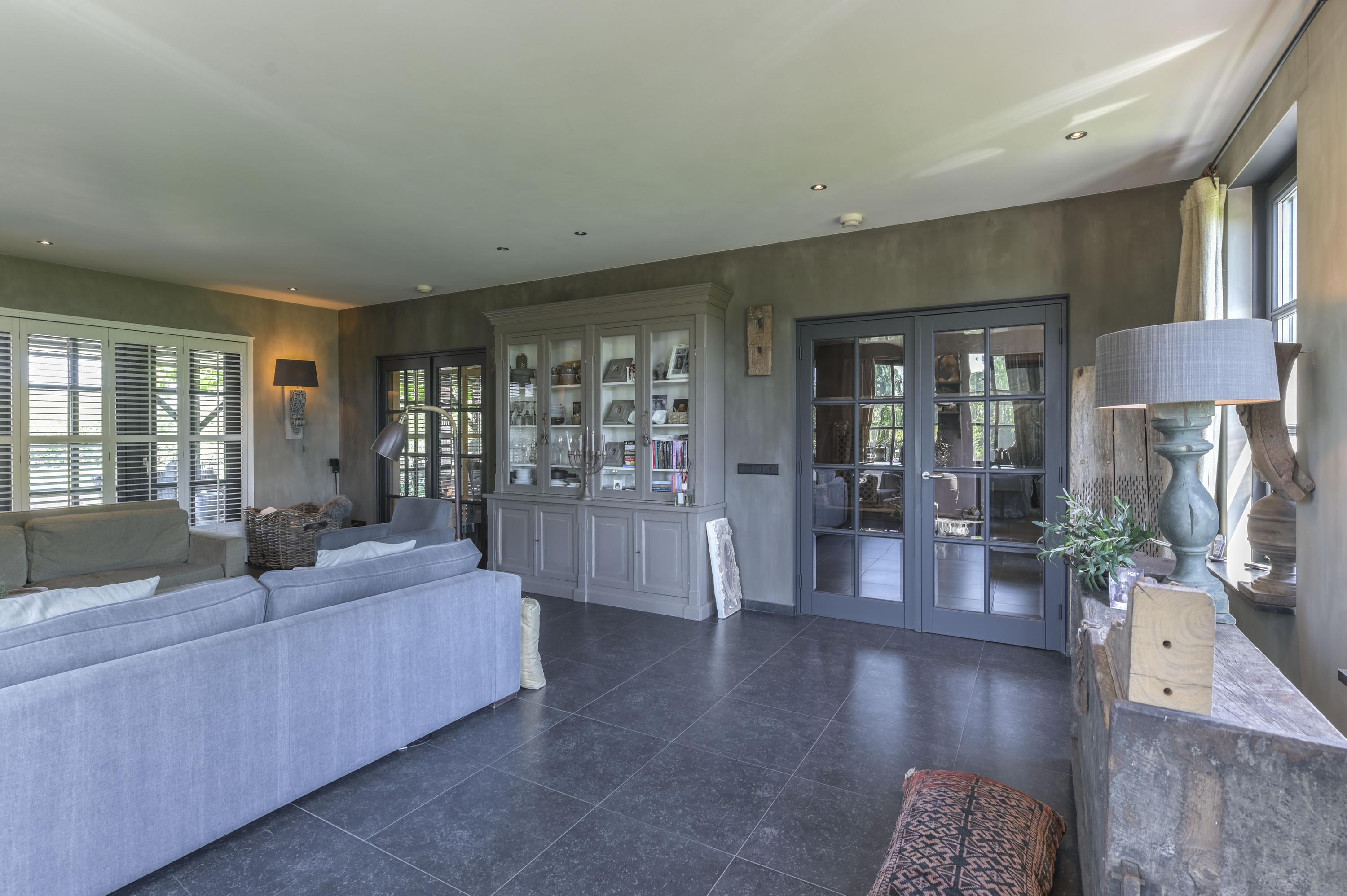 Inside, the villa welcomes with an elegant composition of space and light. The focus keyword villa Kessel is fully realized in the well-conceived floor plan, offering a master suite with a fully renovated en-suite bathroom on the ground floor, complemented by four additional bedrooms and a second bathroom upstairs. Extensive glazing, hardwood frames with HR++ glass, and high ceilings frame each space, while underfloor heating and a gas fireplace add comfort and atmosphere. Materials such as ceramic tile, beton ciré, and wooden flooring ground the interiors with subtle luxury.