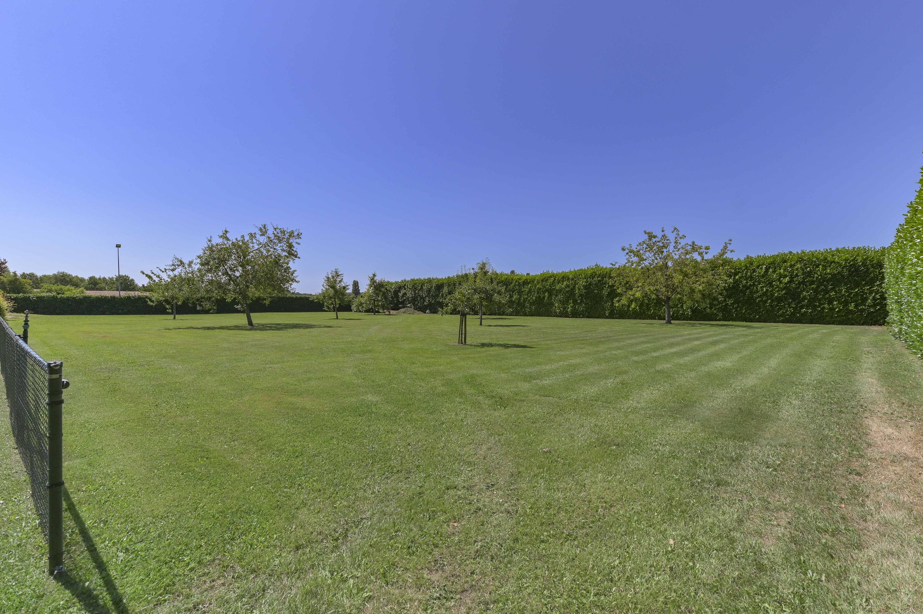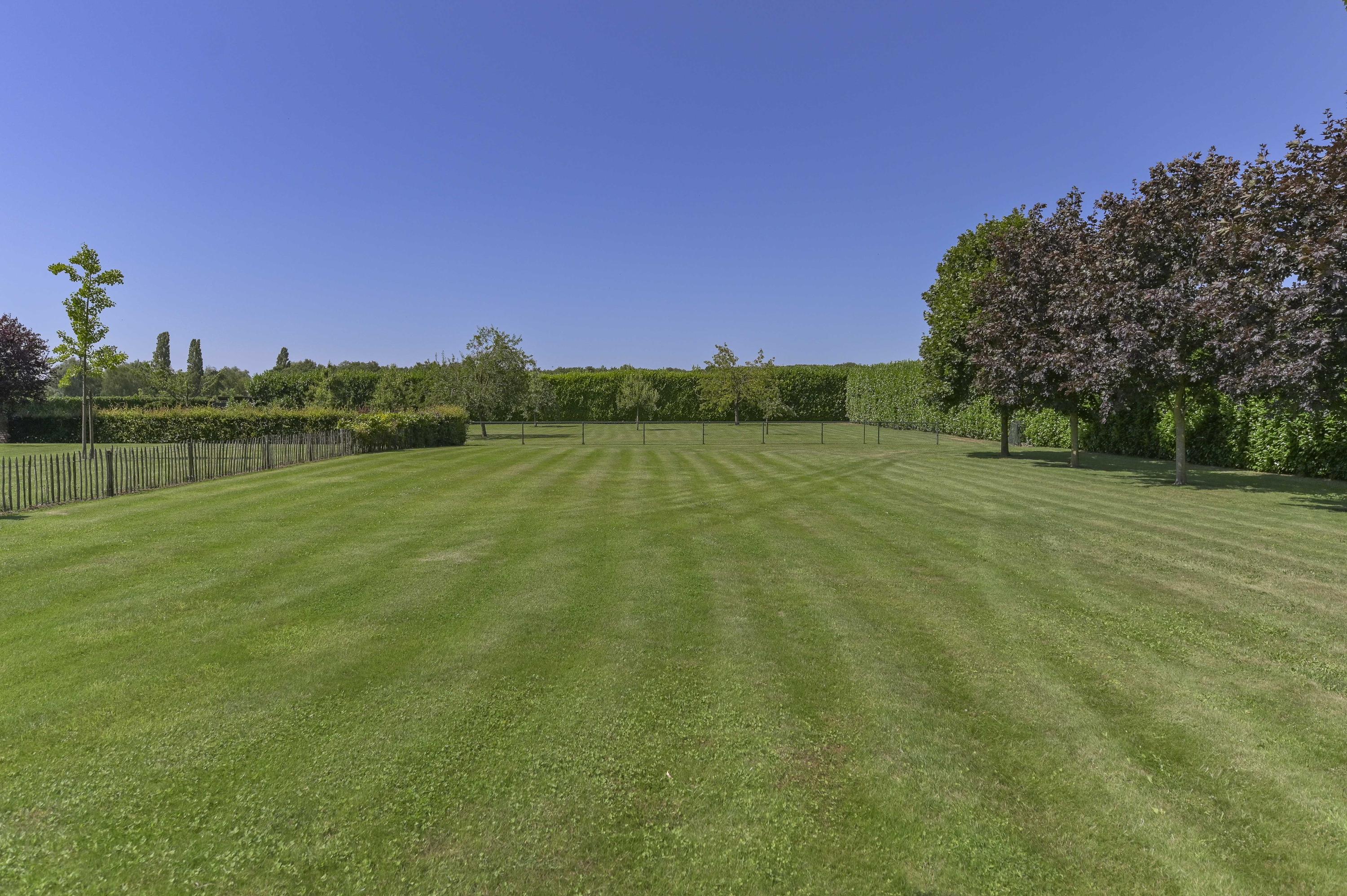 The modern kitchen, equipped with state-of-the-art appliances and an adjoining utility room, allows for effortless culinary routines. Living areas blend organically into the outdoors through French doors, seamlessly extending gatherings into the meticulously landscaped garden—where mature plantings, fruit trees, and uninterrupted meadow views invite moments of quiet reflection or lively celebration.