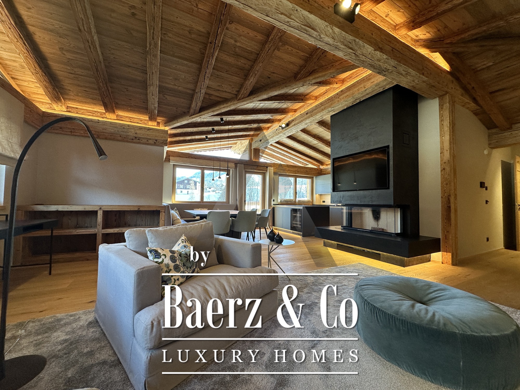 The chalets are delivered fully furnished, showcasing elegant finishes and first-class materials — from reclaimed wood beams and oak parquet flooring to Gaggenau, Miele, Bora and Liebherr appliances. Living spaces open to expansive terraces and balconies, some with private gardens, while amenities include wellness areas with sauna, fireplaces, Dornbracht bathrooms, alarm systems and advanced home technology. Layouts are tailored for comfort and guest privacy, with each unit featuring two underground or carport parking spaces and living room ventilation systems, and most offering elevator access.