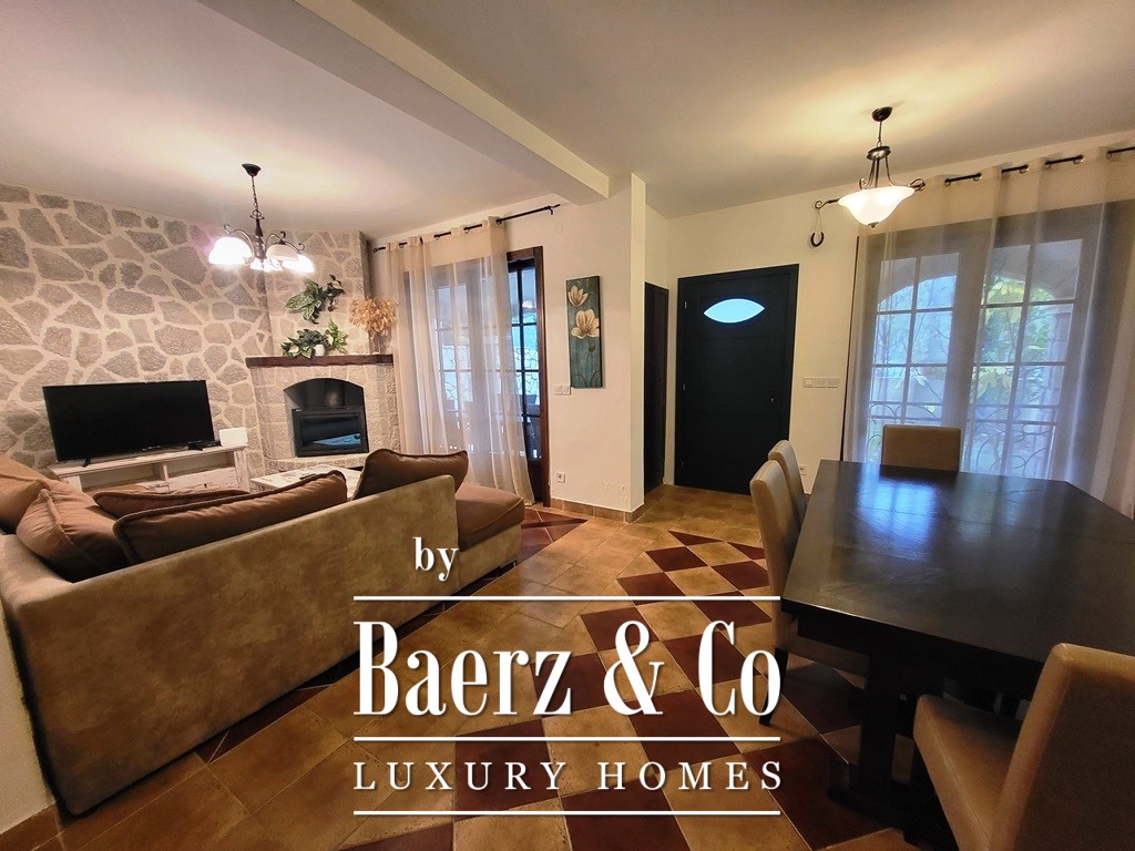 Apartment Kotor sits within the municipality’s captivating coastal landscape, offering panoramic vistas of both the Adriatic Sea and the surrounding mountains. The property is defined by a private entrance, exclusive use of a swimming pool, and a secluded outdoor terrace, seamlessly blending the independence of a house with the ease of apartment living. This apartment Kotor includes a 126 m² living area comprising a living room with a kitchen and dining space, three bedrooms, and two bathrooms featuring heated floors. The design invites natural light, framing views that create an enduring sense of place.