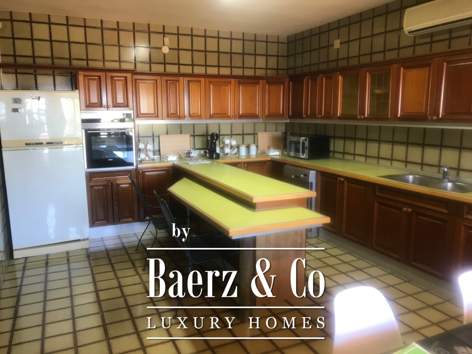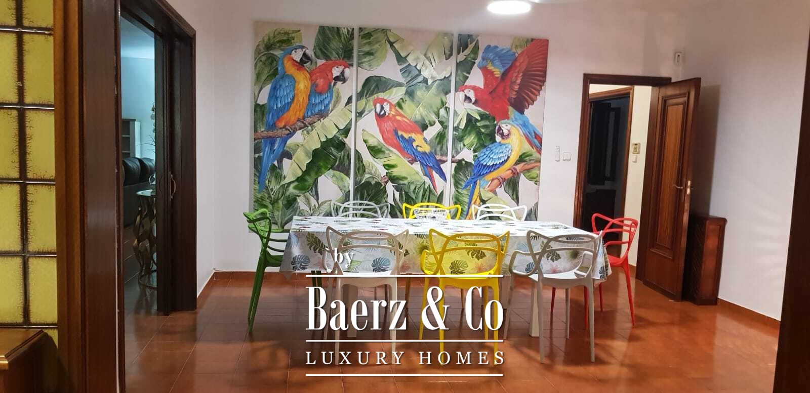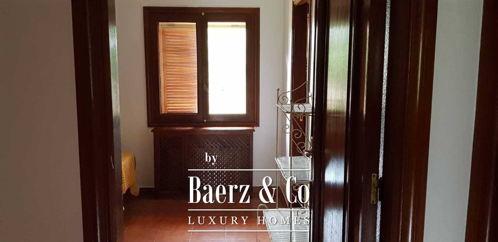 Inside, the layout flows around four generously proportioned double bedrooms and five full bathrooms, with an additional guest toilet for convenience. The main living area, a 100 m² expanse, moves seamlessly into a spacious kitchen and dining area, creating a natural rhythm for gatherings and quiet moments alike. The villa opens towards mature gardens and a swimming pool with a designated children’s area, further complemented by open and covered terraces for year-round enjoyment.