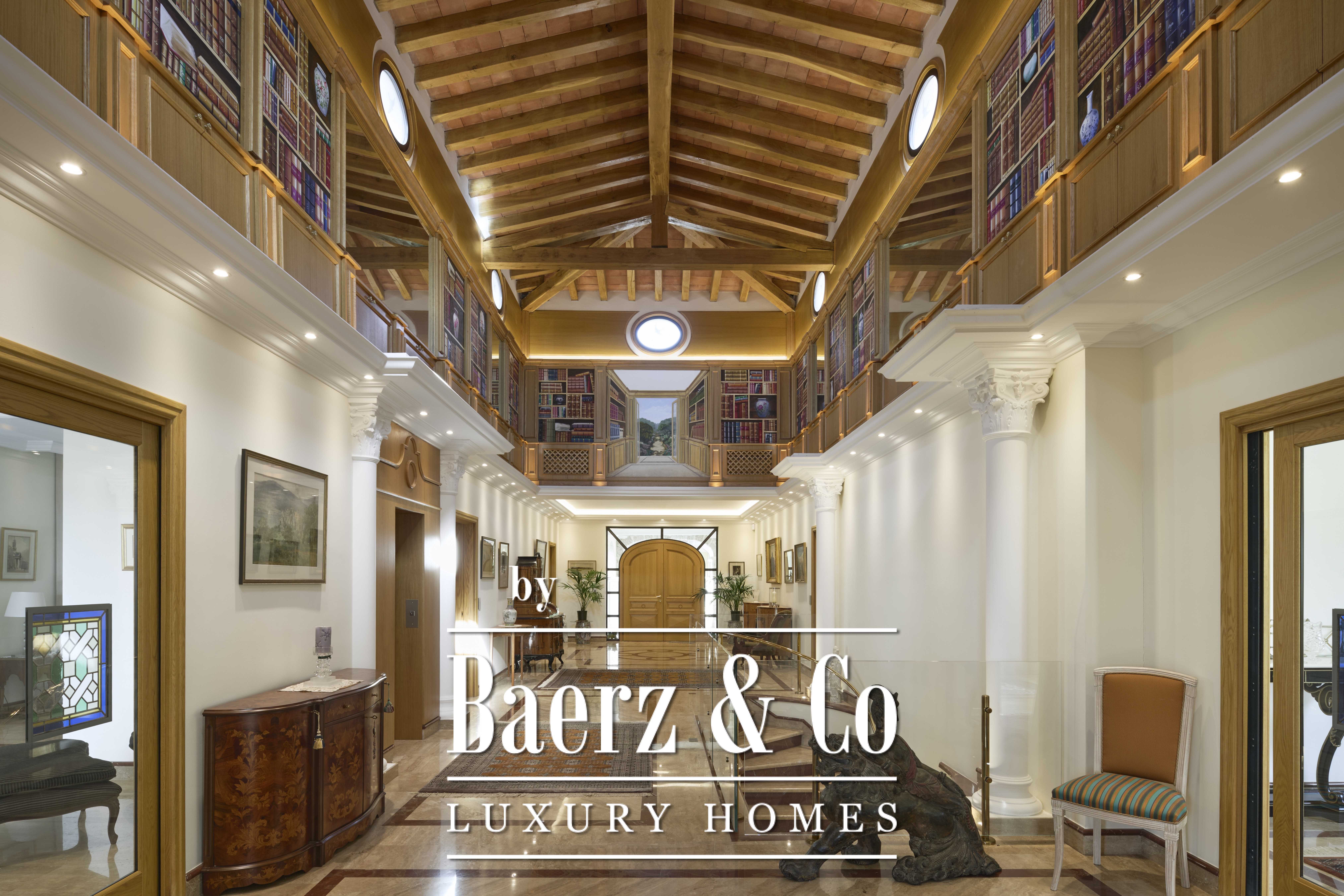 The estate also features a caretaker’s house, a fitness pavilion, and a **second adjoining property** with two large apartments. This additional property comes with planning permission to be converted into guest accommodations, a spa, or a gym.