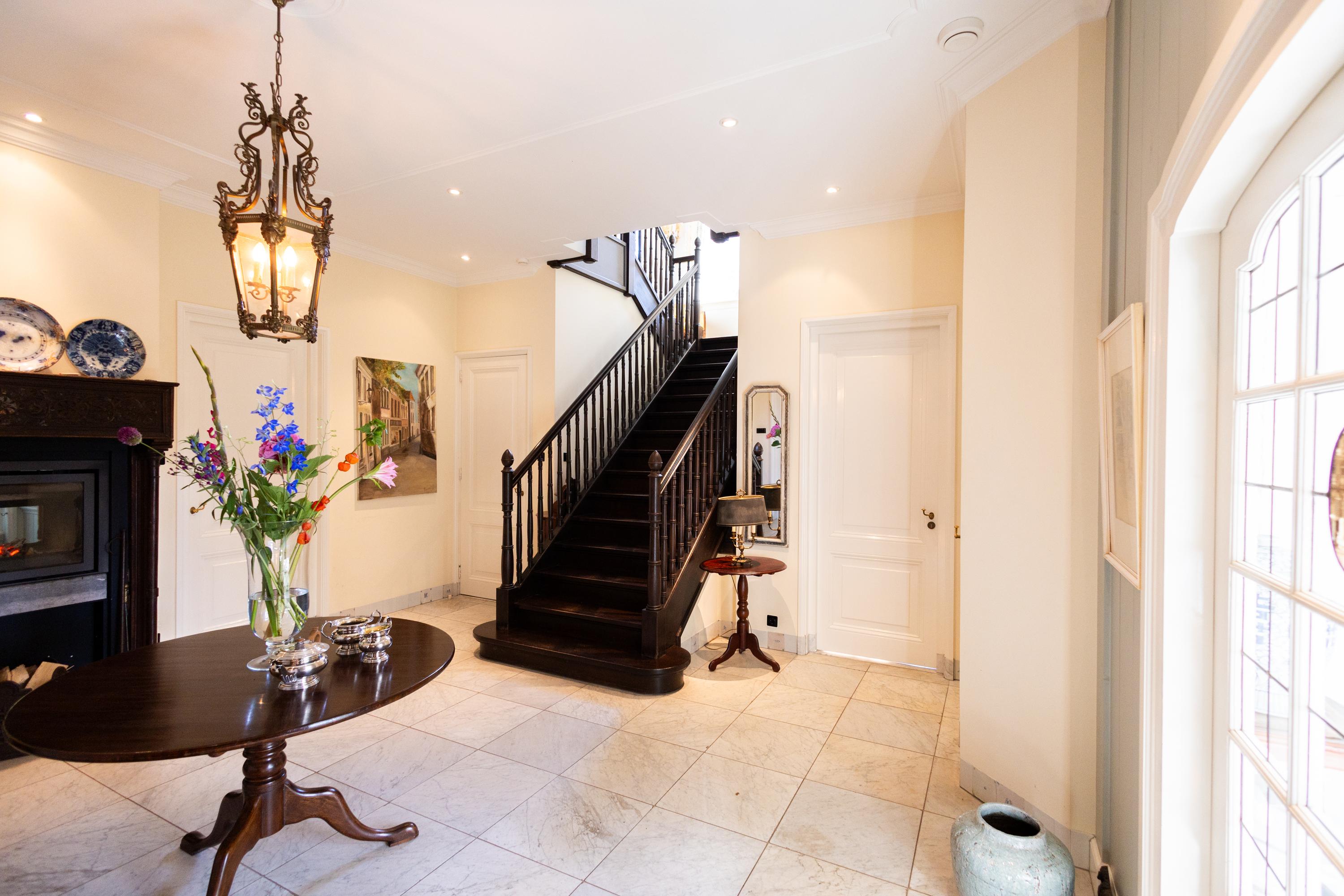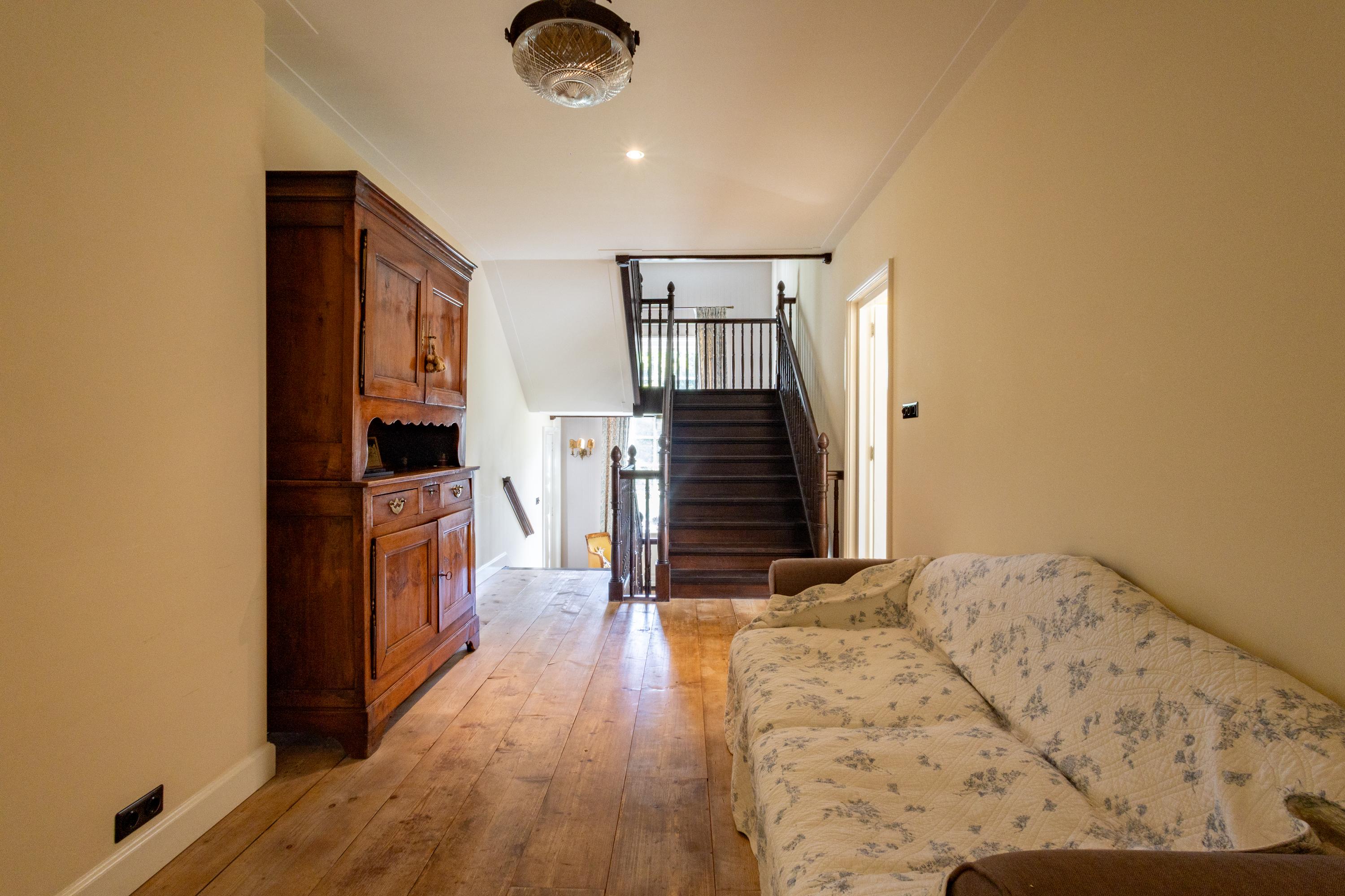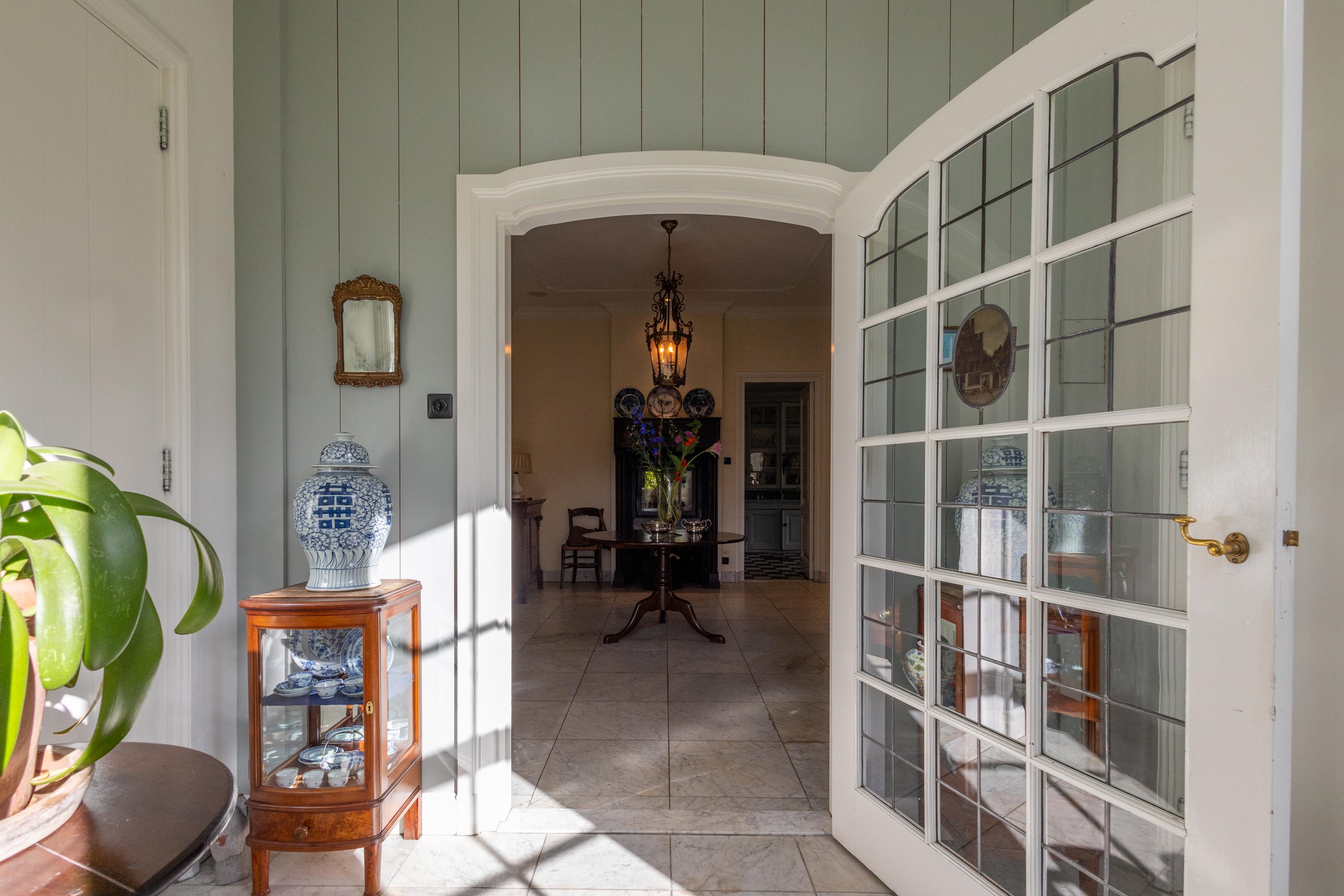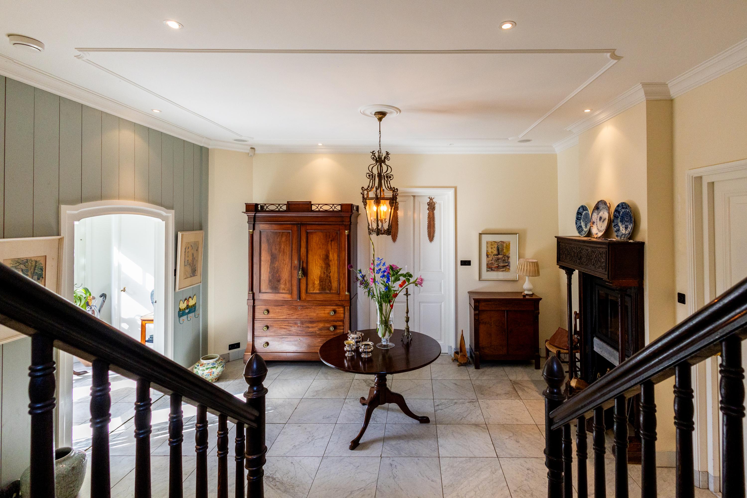 Designed by architect Van Asbeck in 2012, the villa was conceived with an uncommon attention to heritage. Reclaimed parquet, centuries-old Dutch tiles, storied doors, and roof tiles from a historic Utrecht barracks intermingle with contemporary craftsmanship. An Amsterdam canal house cabinet serves as a centrepiece in the kitchen-diner, lending soul and provenance to the heart of the home. Tall ground-floor ceilings approximate three metres, introducing exceptional light and generosity. The stately entrance reveals a fireplace and intricate staircase, surrounded by living areas including a study, atelier, and fireplace-warmed lounge.