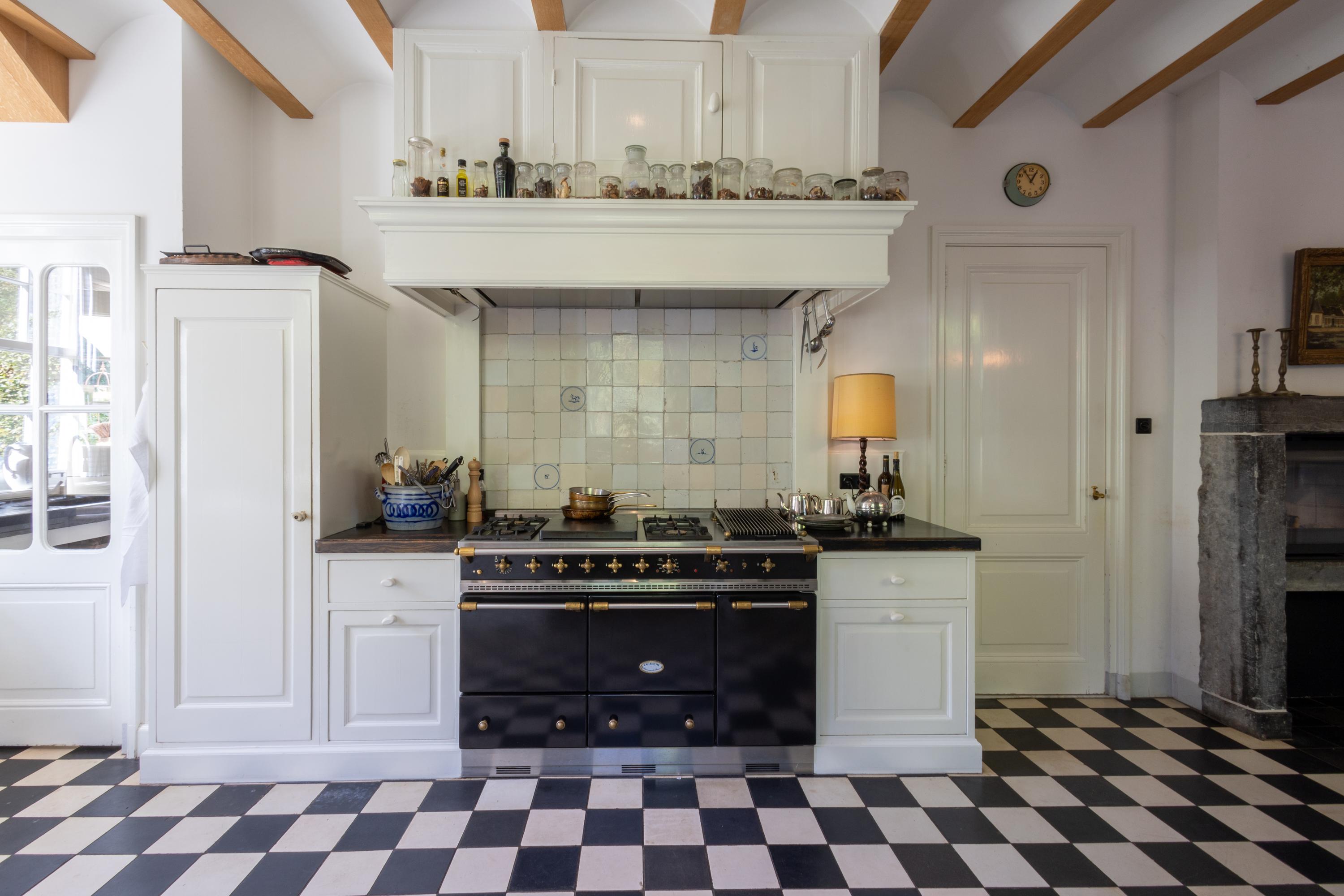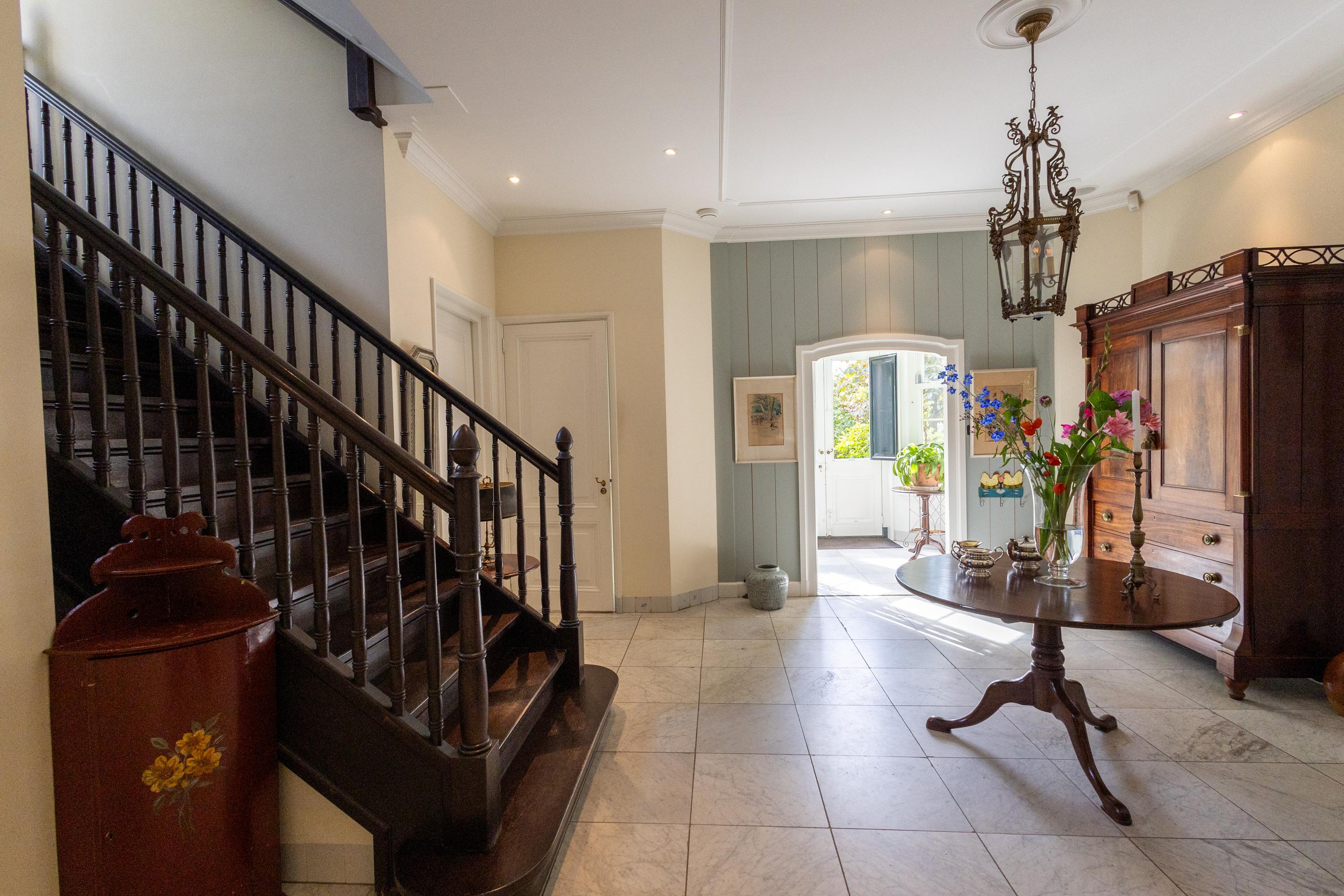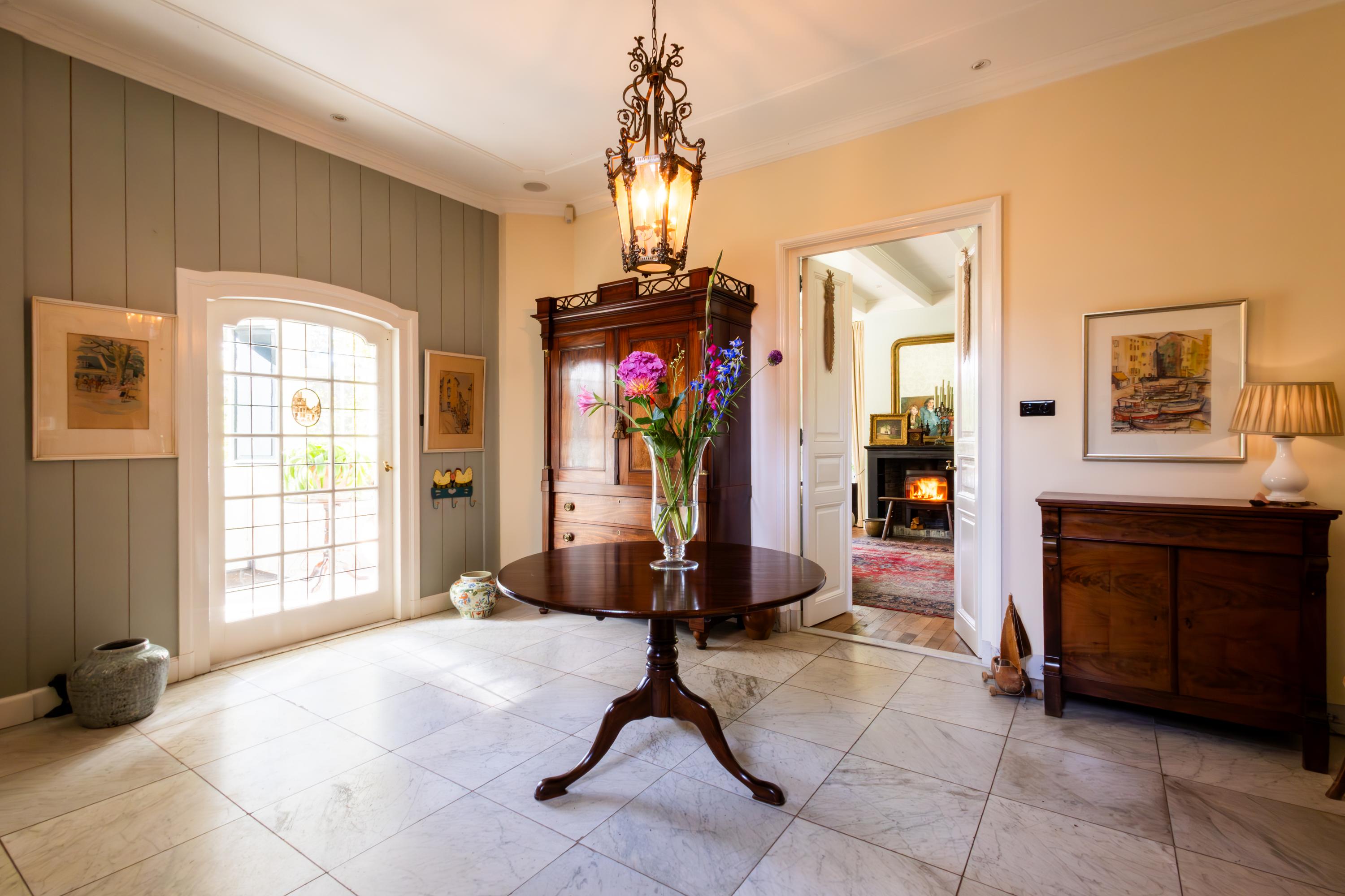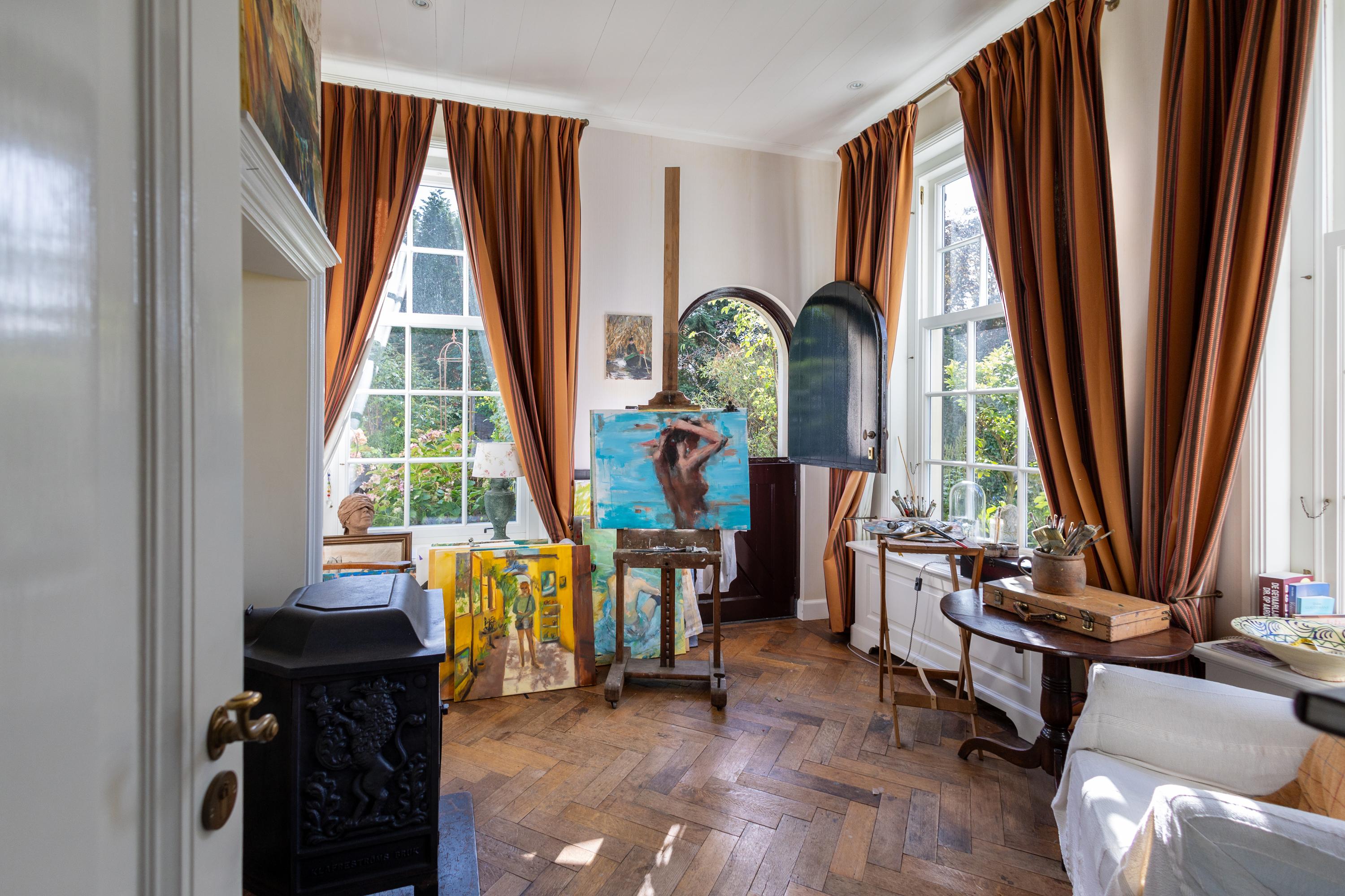 Designed by architect Van Asbeck in 2012, the villa was conceived with an uncommon attention to heritage. Reclaimed parquet, centuries-old Dutch tiles, storied doors, and roof tiles from a historic Utrecht barracks intermingle with contemporary craftsmanship. An Amsterdam canal house cabinet serves as a centrepiece in the kitchen-diner, lending soul and provenance to the heart of the home. Tall ground-floor ceilings approximate three metres, introducing exceptional light and generosity. The stately entrance reveals a fireplace and intricate staircase, surrounded by living areas including a study, atelier, and fireplace-warmed lounge.