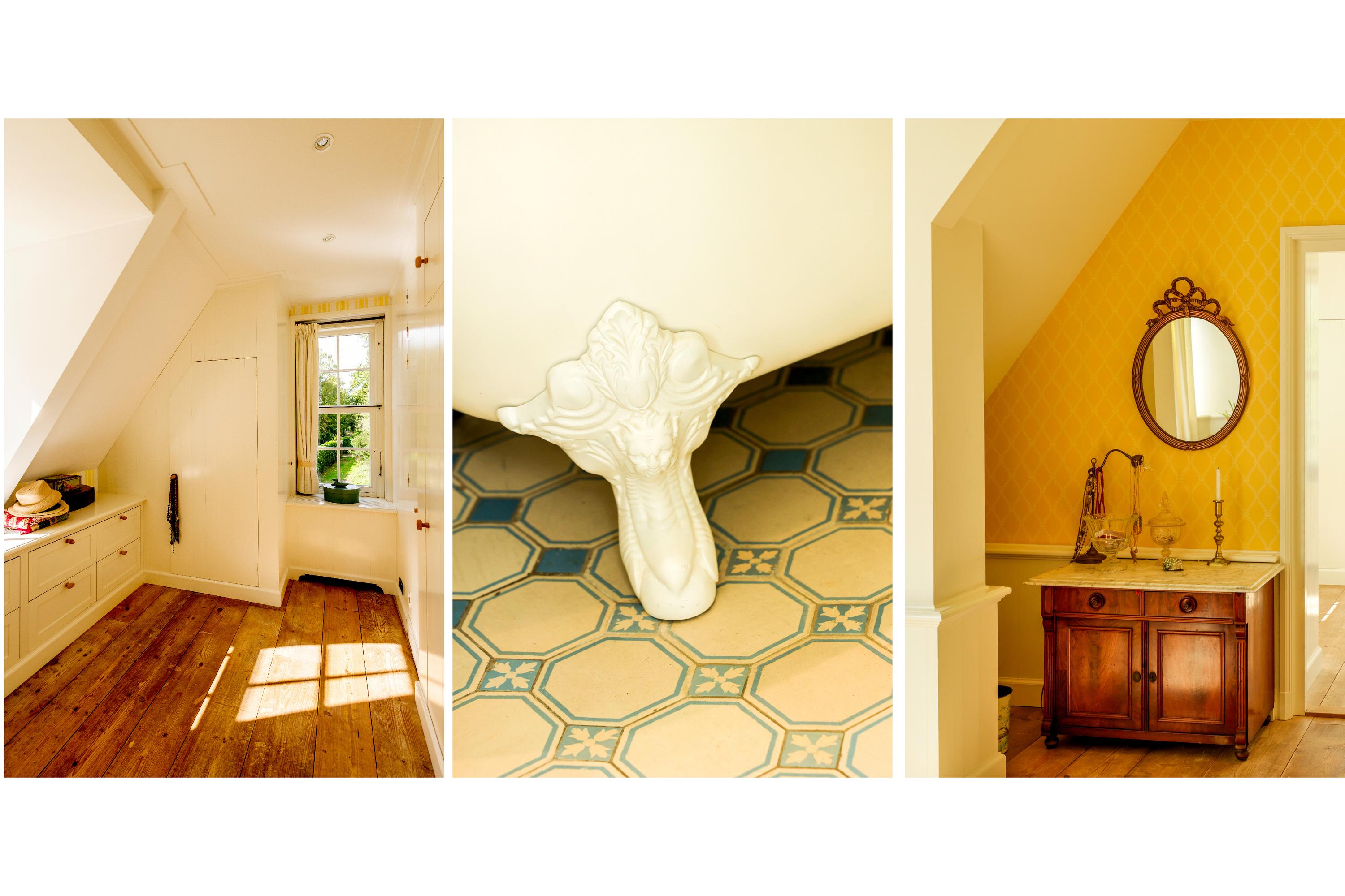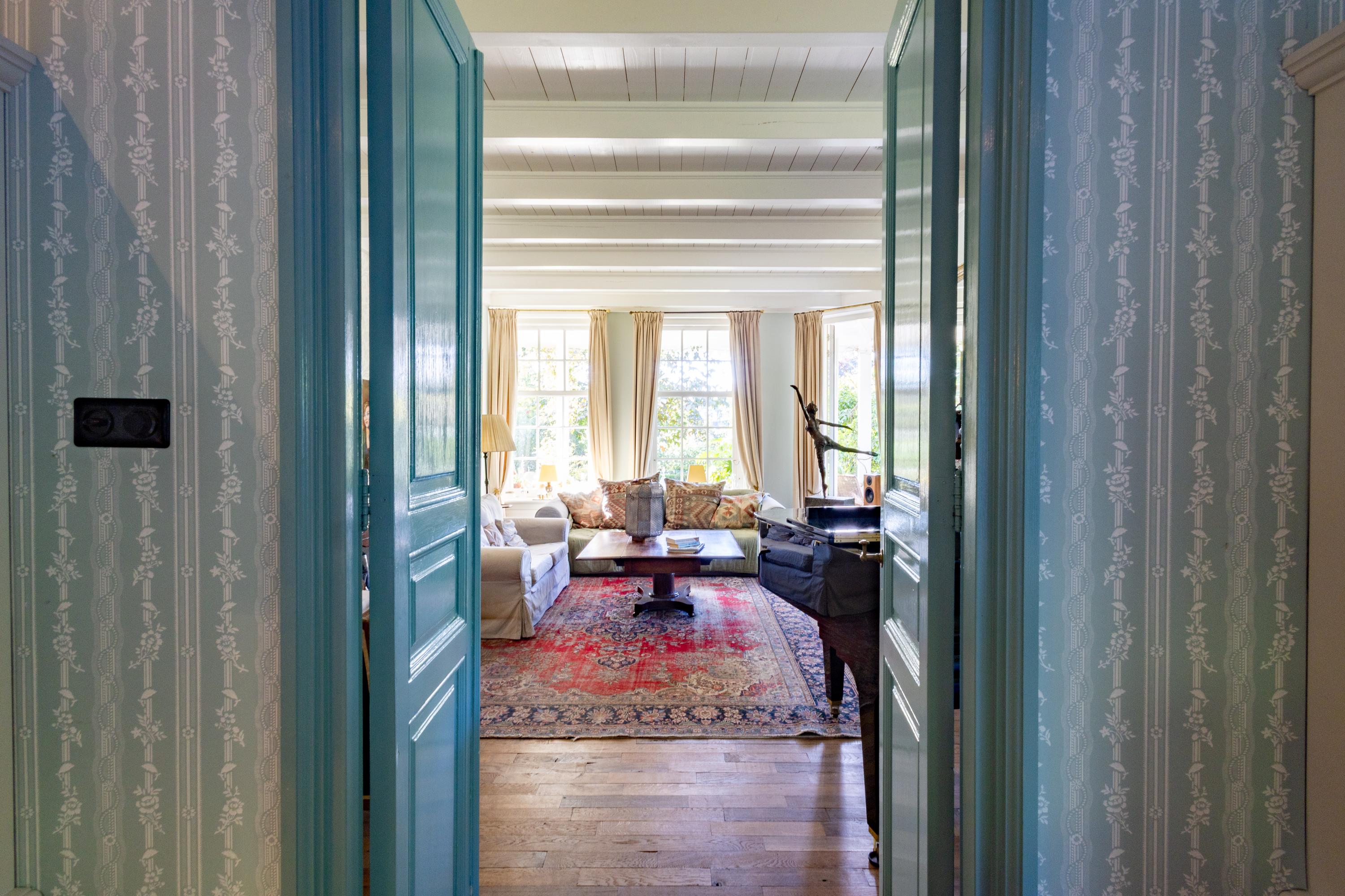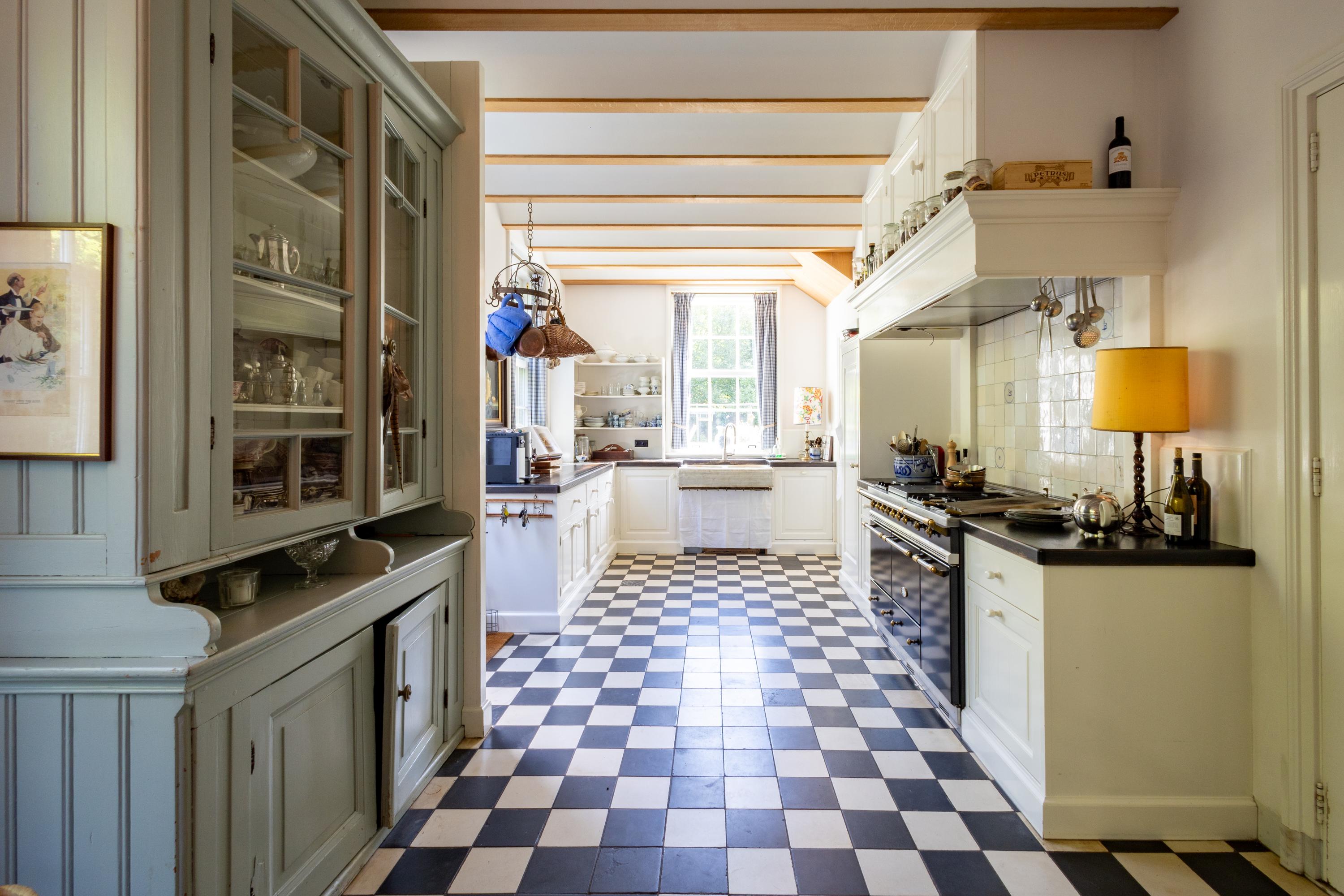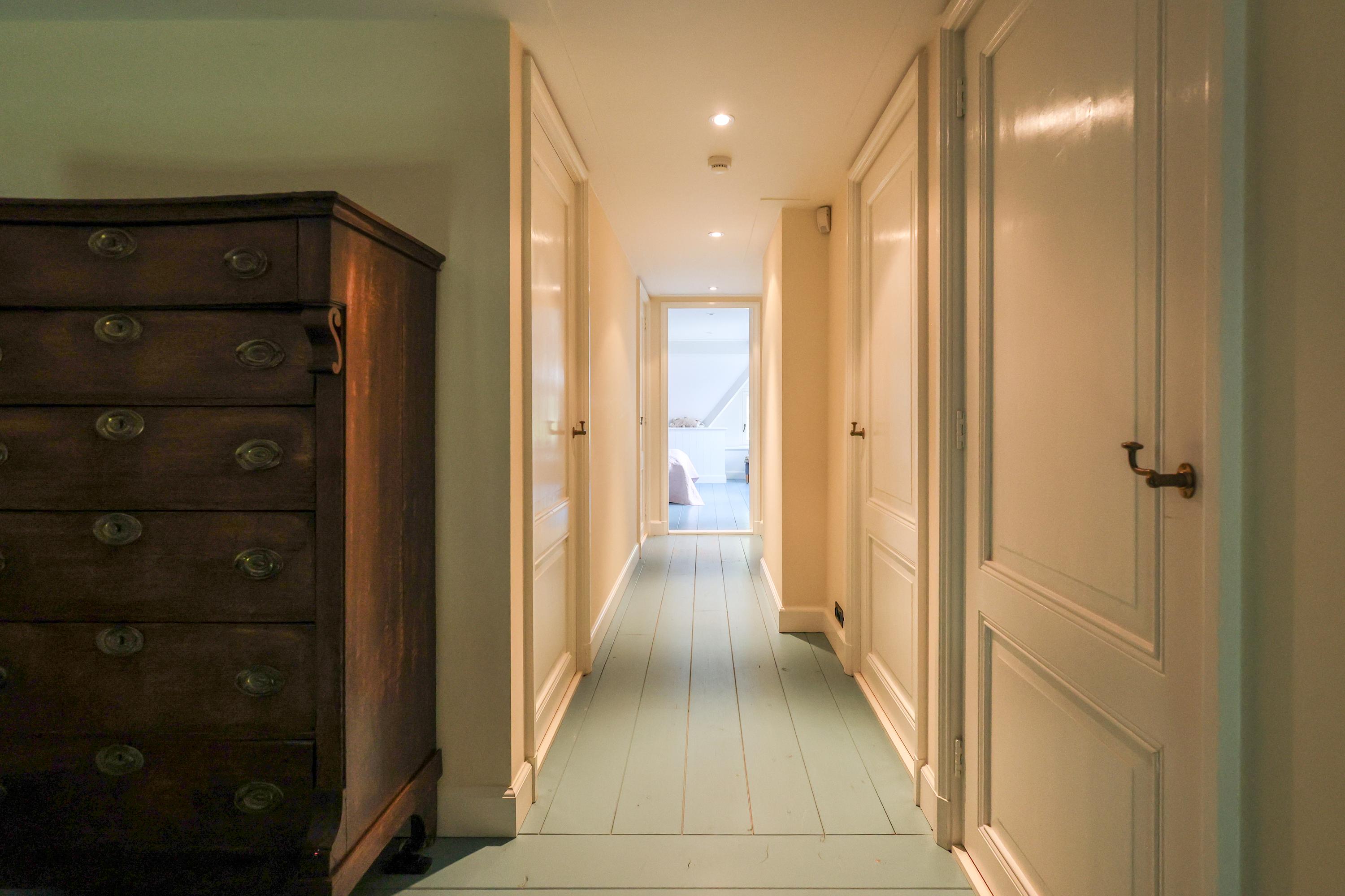 Designed by architect Van Asbeck in 2012, the villa was conceived with an uncommon attention to heritage. Reclaimed parquet, centuries-old Dutch tiles, storied doors, and roof tiles from a historic Utrecht barracks intermingle with contemporary craftsmanship. An Amsterdam canal house cabinet serves as a centrepiece in the kitchen-diner, lending soul and provenance to the heart of the home. Tall ground-floor ceilings approximate three metres, introducing exceptional light and generosity. The stately entrance reveals a fireplace and intricate staircase, surrounded by living areas including a study, atelier, and fireplace-warmed lounge.