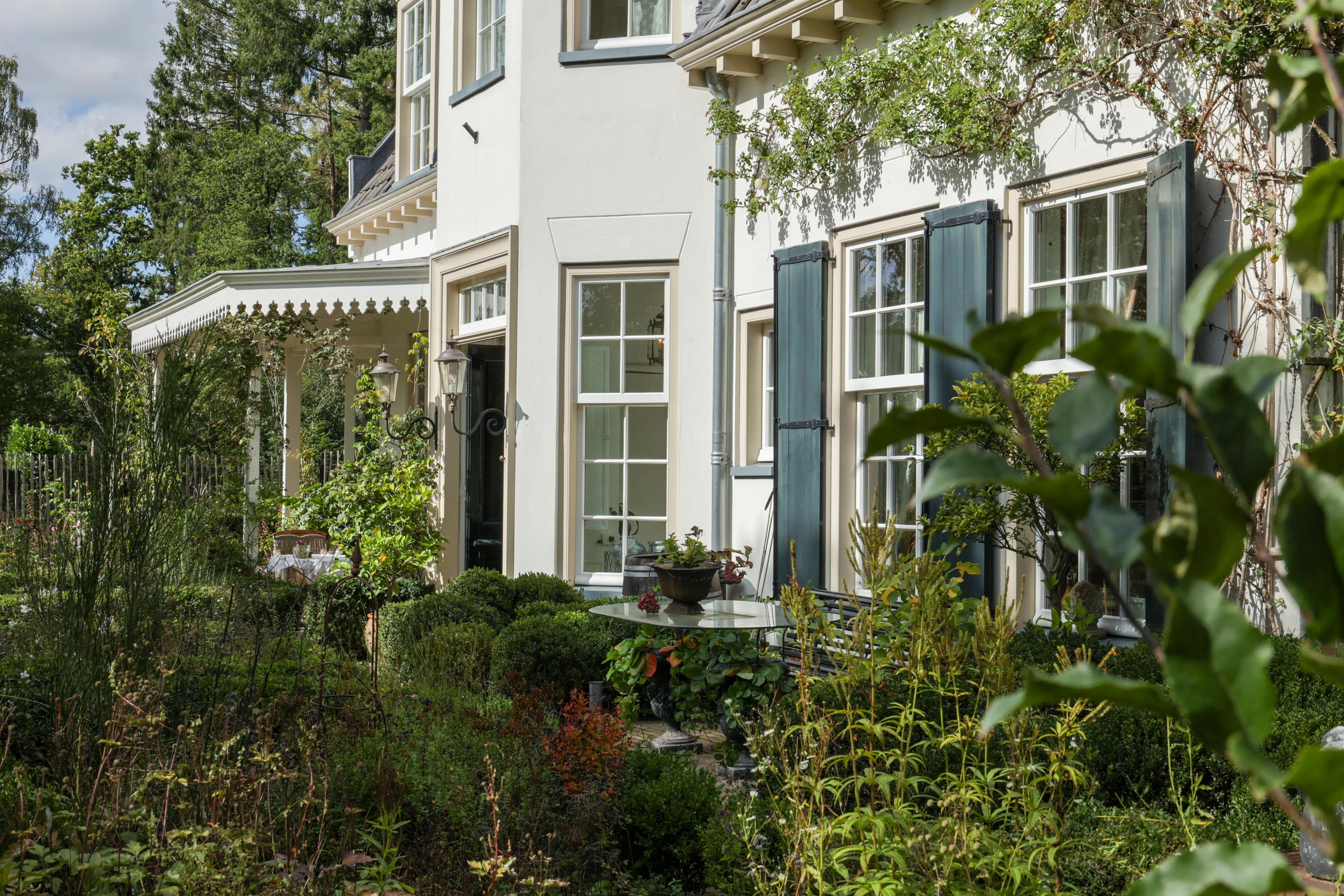 Villa Lage Vuursche is an address that balances history and comfort in a rare and tranquil woodland setting. This villa, set amidst 2,095 m² of private gardens in Lage Vuursche, offers approximately 350 m² of living area and an additional 150 m² basement, creating a sense of spacious calm intrinsic to the property and to this storied hamlet. Enter through a private gate to find fruit trees and a herb garden framing the home, where understated charm is present in every architectural detail.