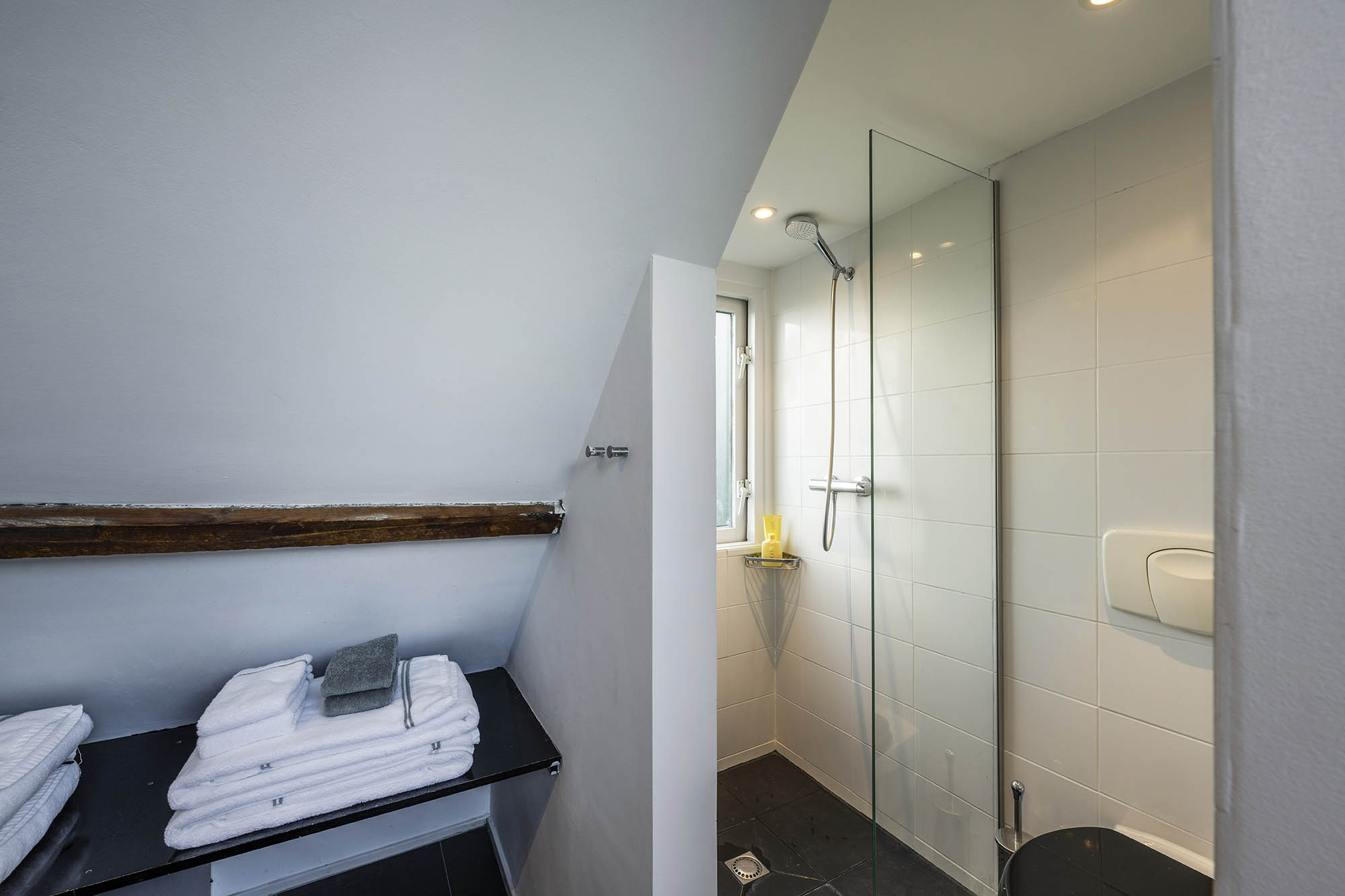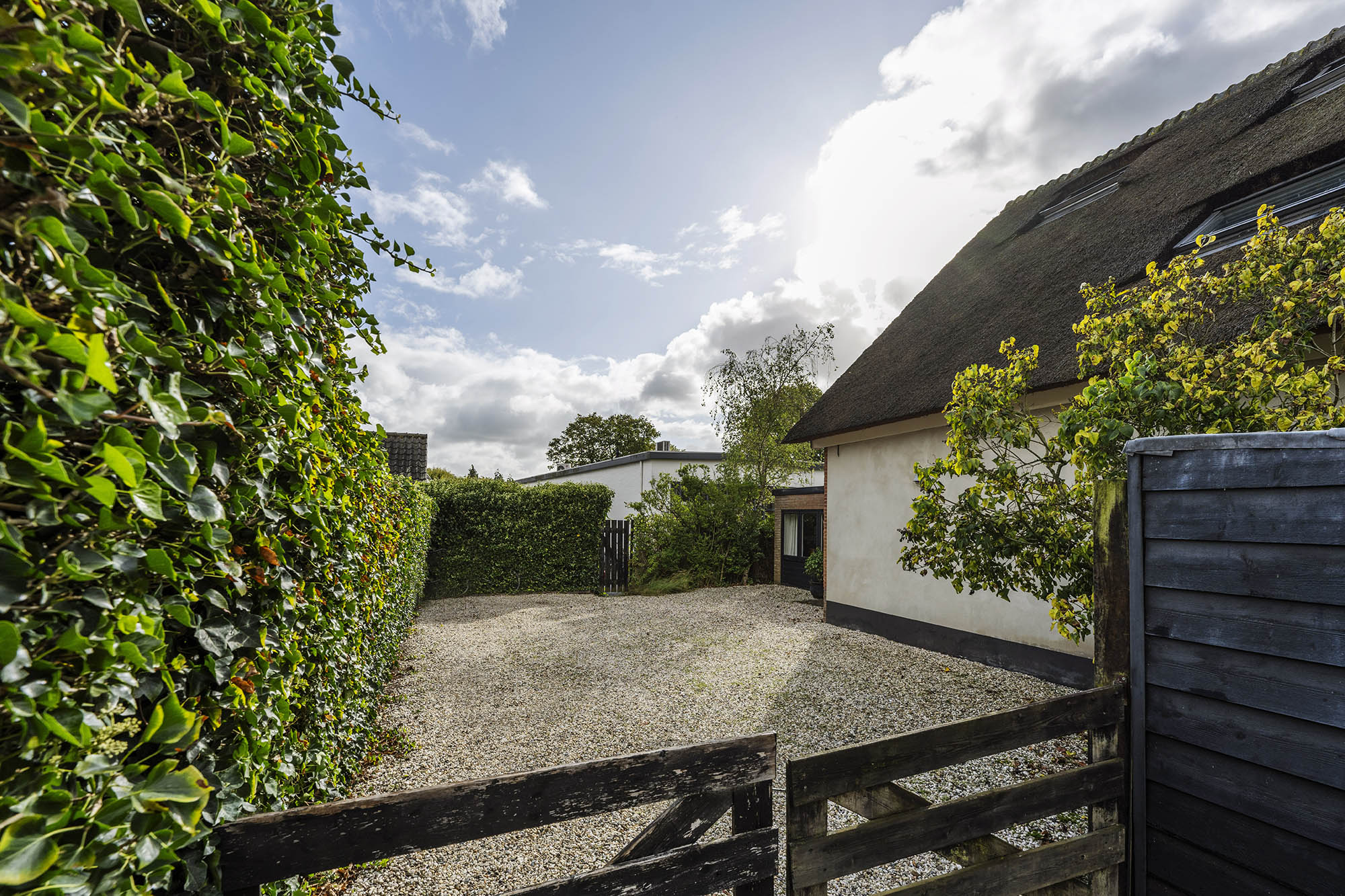 At Klaaskampen 19a you’ll find the secluded part at the back of a characteristic thatched farmhouse – a true surprise: from the road you can’t see it, but a gravel path leads you to this peaceful spot right in the middle of the village, where you’ll enjoy both privacy and convenience, with parking space for several cars on your own property.