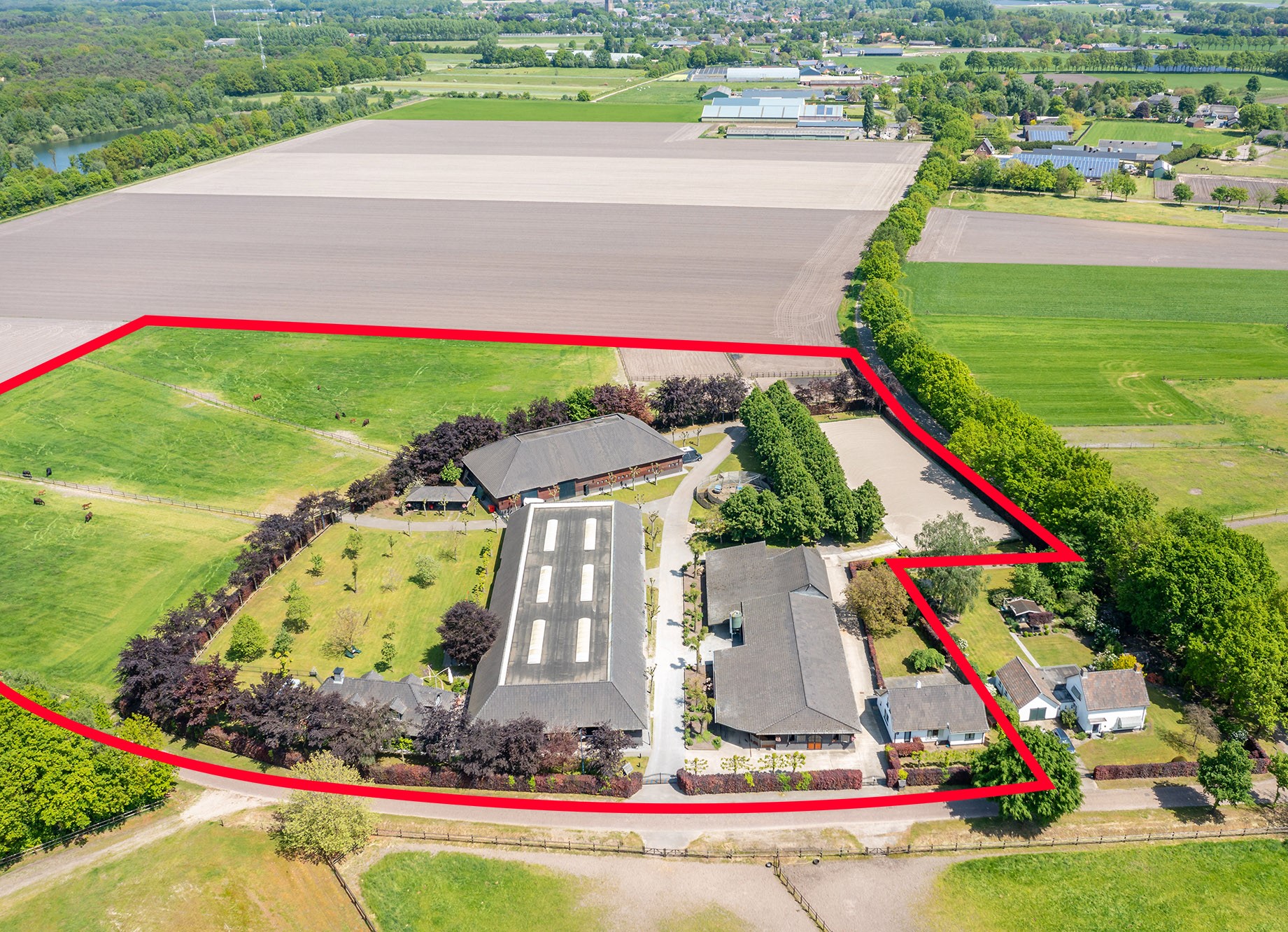 This beautiful, complete equestrian accommodation offers plenty of possibilities thanks to the presence of a detached house and living areas, a total of 33 horse stalls divided over various units, a spacious indoor and outdoor arena (approx. 22x62 metres), a storage shed with rearing stalls and large pastures. In addition, the property is situated in a beautiful location with plenty of privacy and on the edge of the Leenderbos forest with excellent riding opportunities!