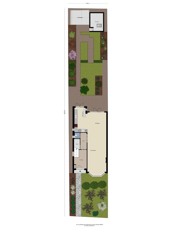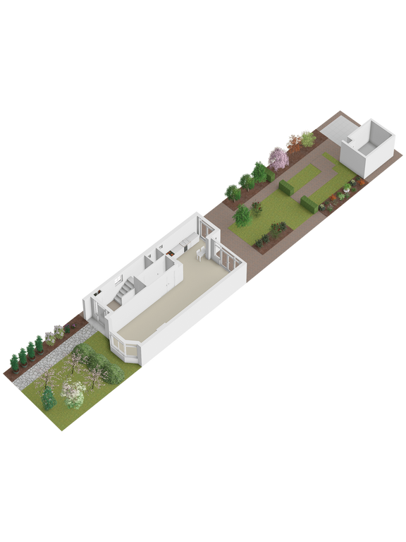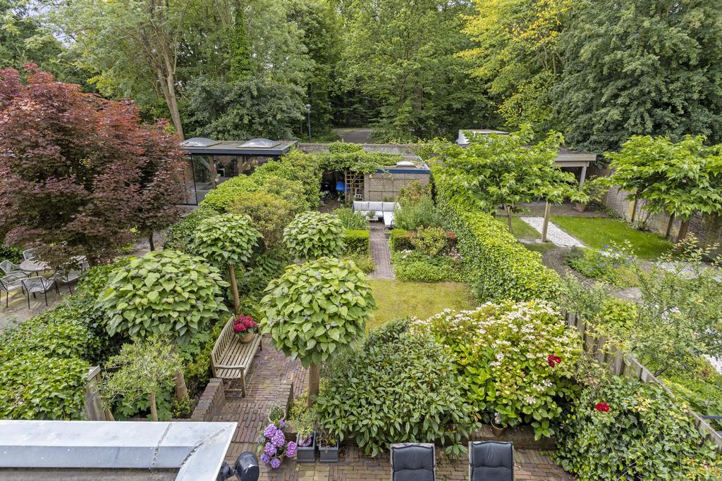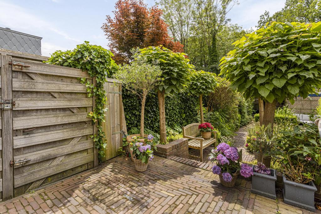 The south-west facing garden is very beautifully landscaped and has several seating areas. At the back of the garden there is a stone shed with electricity and a separate shelter (for bicycles, among other things). The wonderfully unobstructed location of the back garden is truly striking.