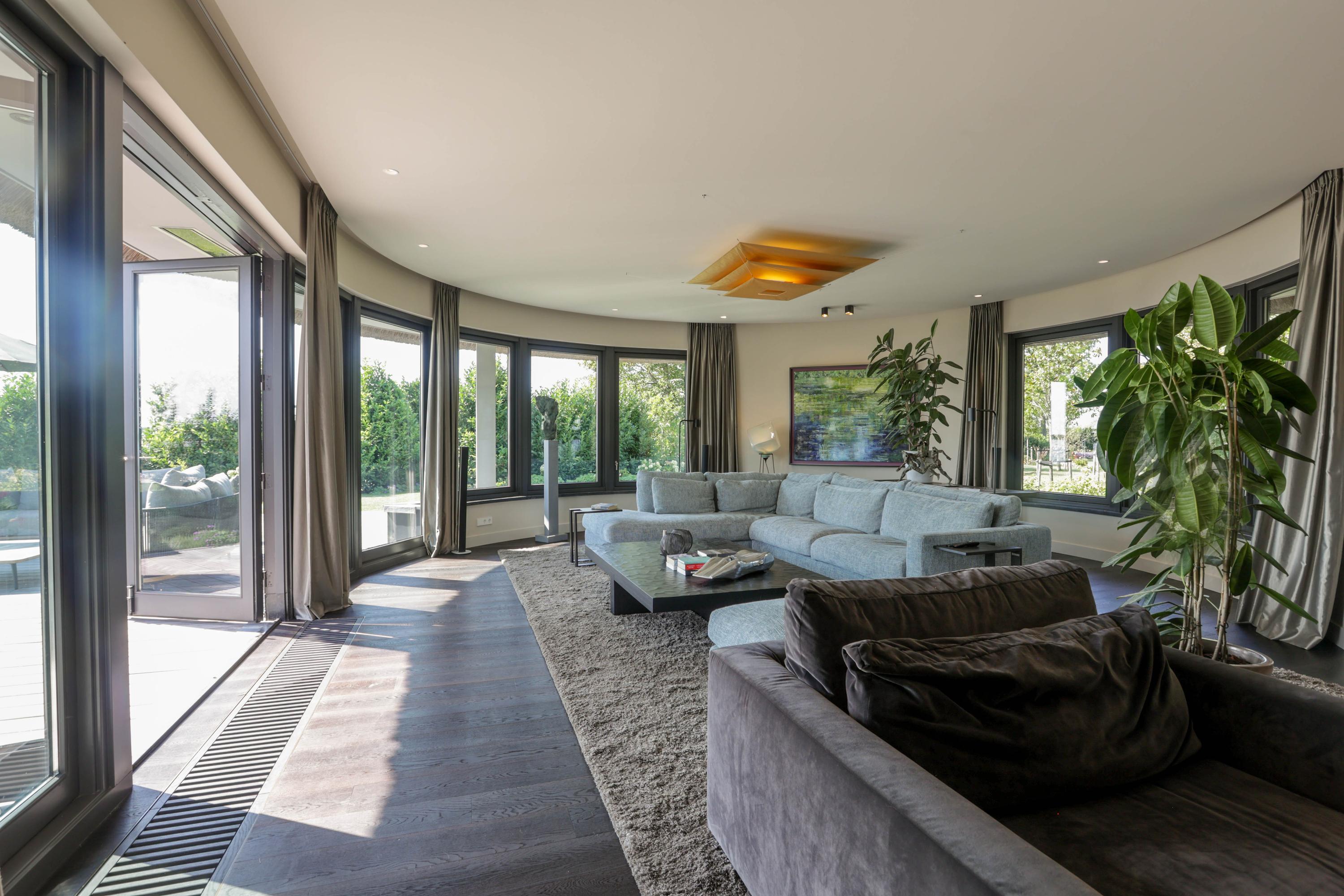 Back on the ground floor, you have access from all sides of the villa to the commanding garden, which is completely oriented to the south. Directly adjacent to the kitchen/lounge is a beautiful terrace, ideal for the first cappuccino of the day in the morning sun. Prefer a more active start to the day? Then you can begin your day in the front yard on the fully illuminated tennis court. Drinks can be enjoyed on the stunning terrace overlooking the outdoor pool or right by the water on the panoramic jetty with a jacuzzi.