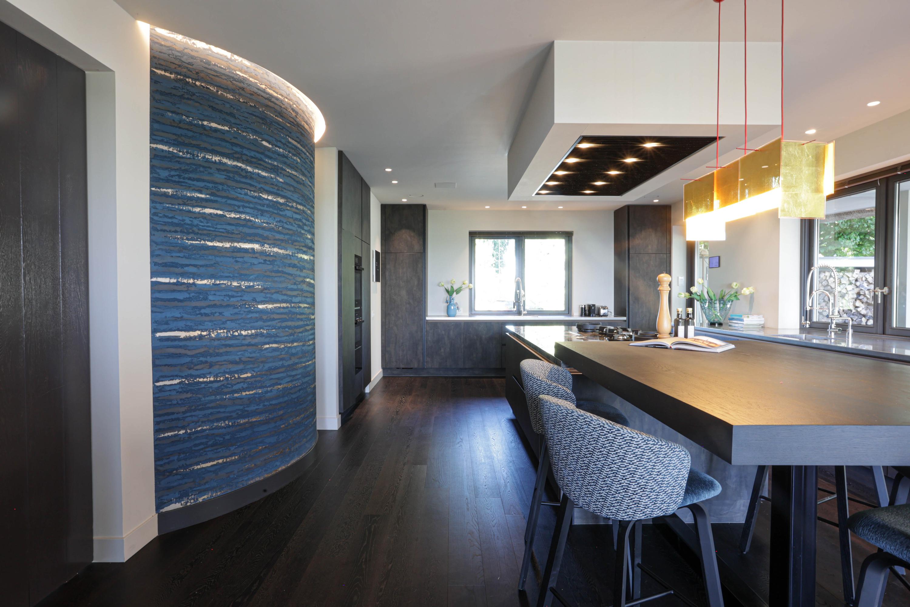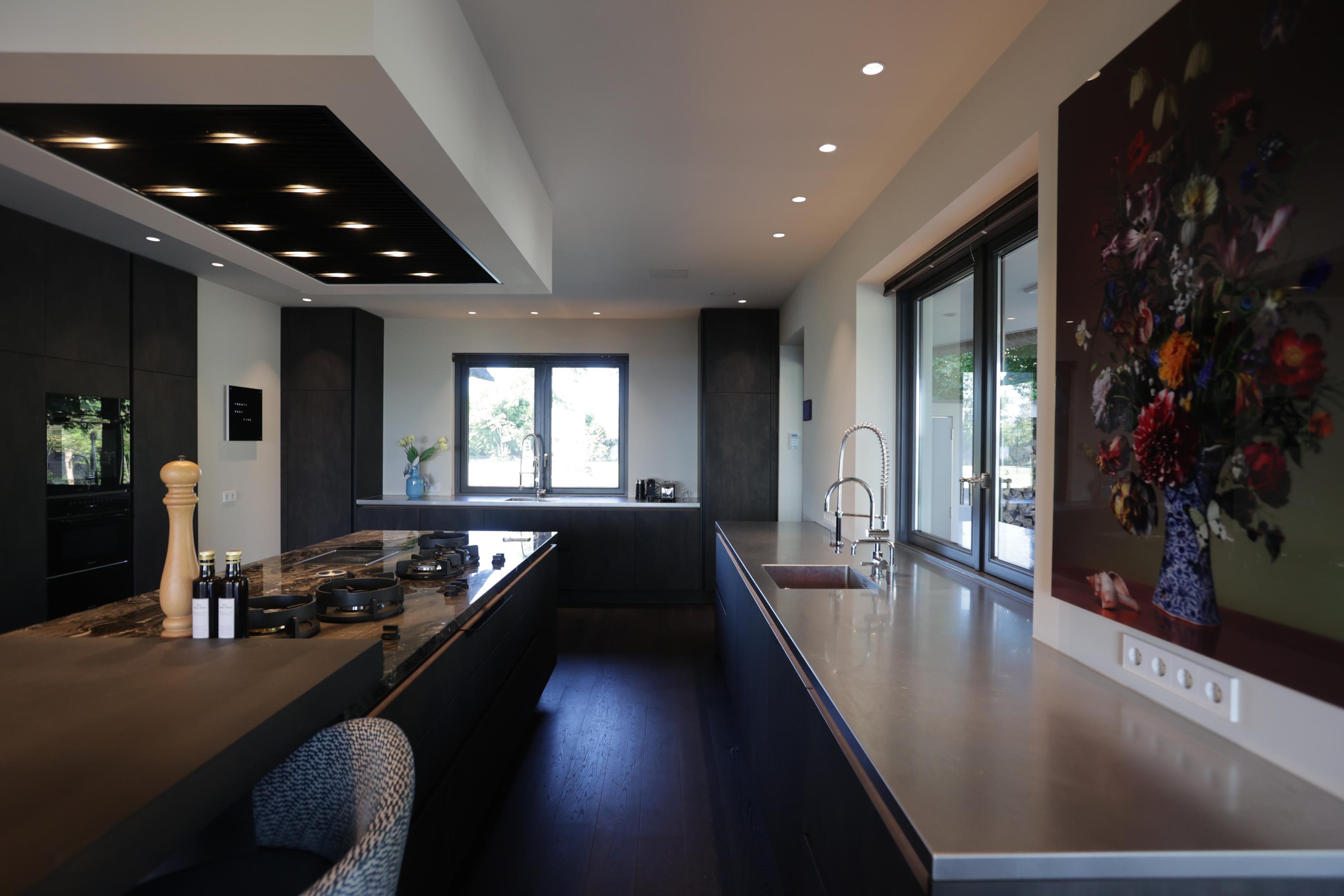 The living kitchen checks every box. Even the most discerning chef will feel right at home here. The heart of the kitchen is formed by the impressive island with a marble worktop with pit cookers and teppanyaki plate. All built-in appliances are by Miele.