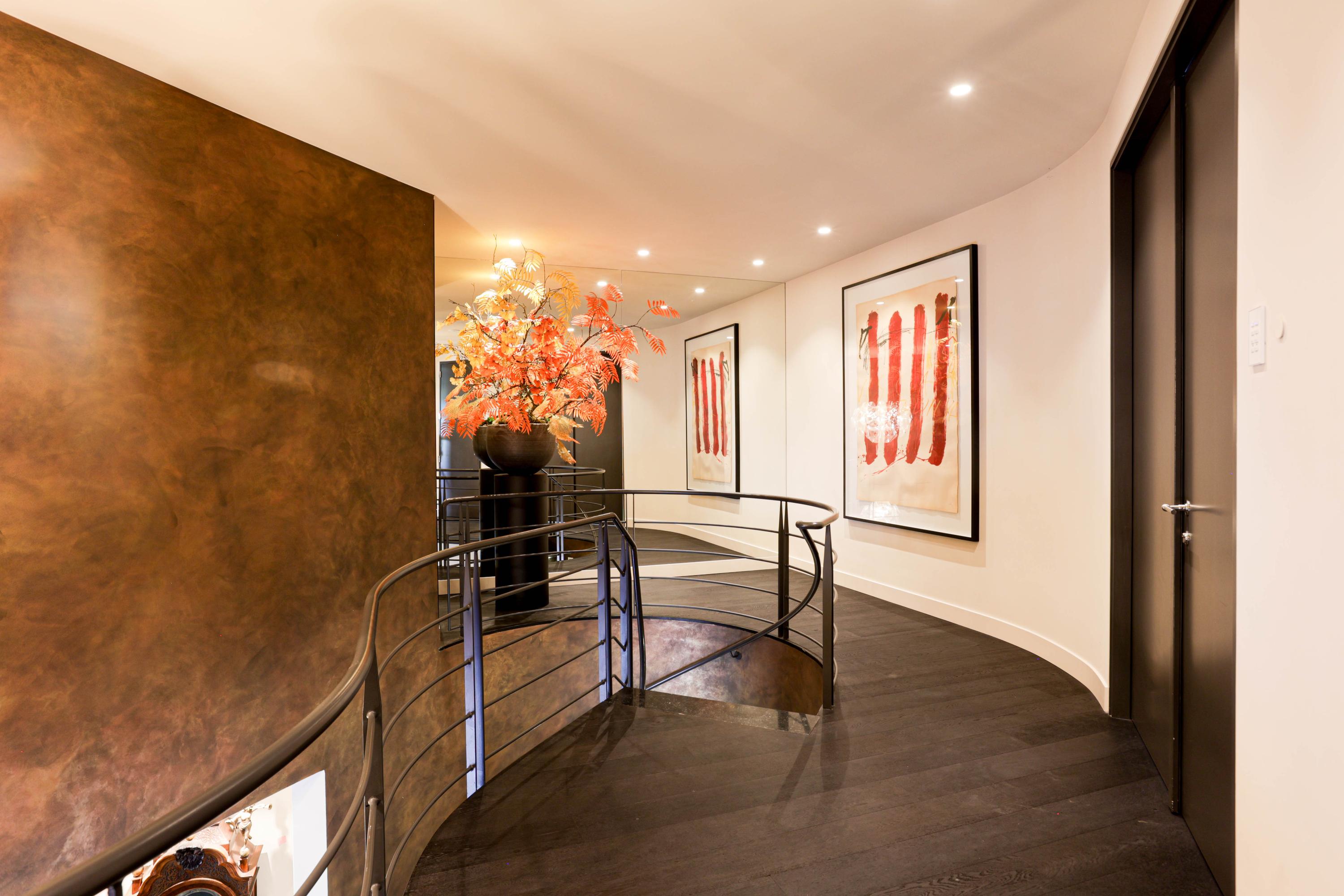 Take a dip in the generous pool or take advantage of the many five-star spa facilities including a shower room with tanning light, steam room, sauna with infrared, ice bath with a waterfall, cryotherapy room, foot baths, Jacuzzi or tanning beds. The spa also features a pantry with a refrigerator and Quooker. The spa offers views of and direct access to the truly beautifully designed outdoor infinity pool with unique glass front. Because the outdoor pool is lower relative to the garden, the outdoor pool offers optimum privacy. The spa with the indoor pool accesses a large separate storage room on the second basement floor.