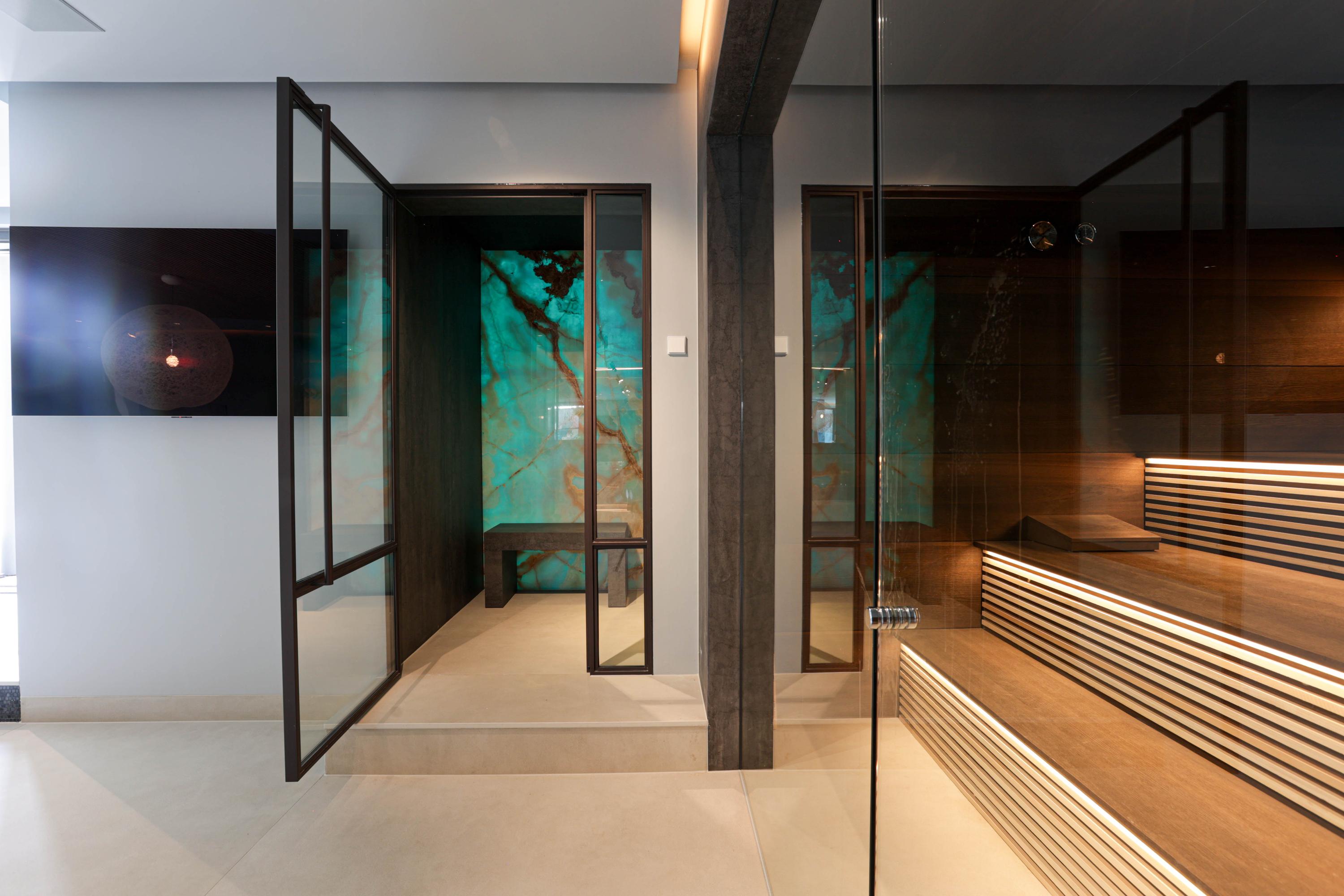 Follow the stairs down to the first basement floor, where a world of opulence unfolds that reveals itself only to you and your guests. This first basement floor is entirely dedicated to the balance between exercise and relaxation in ultimate luxury.
