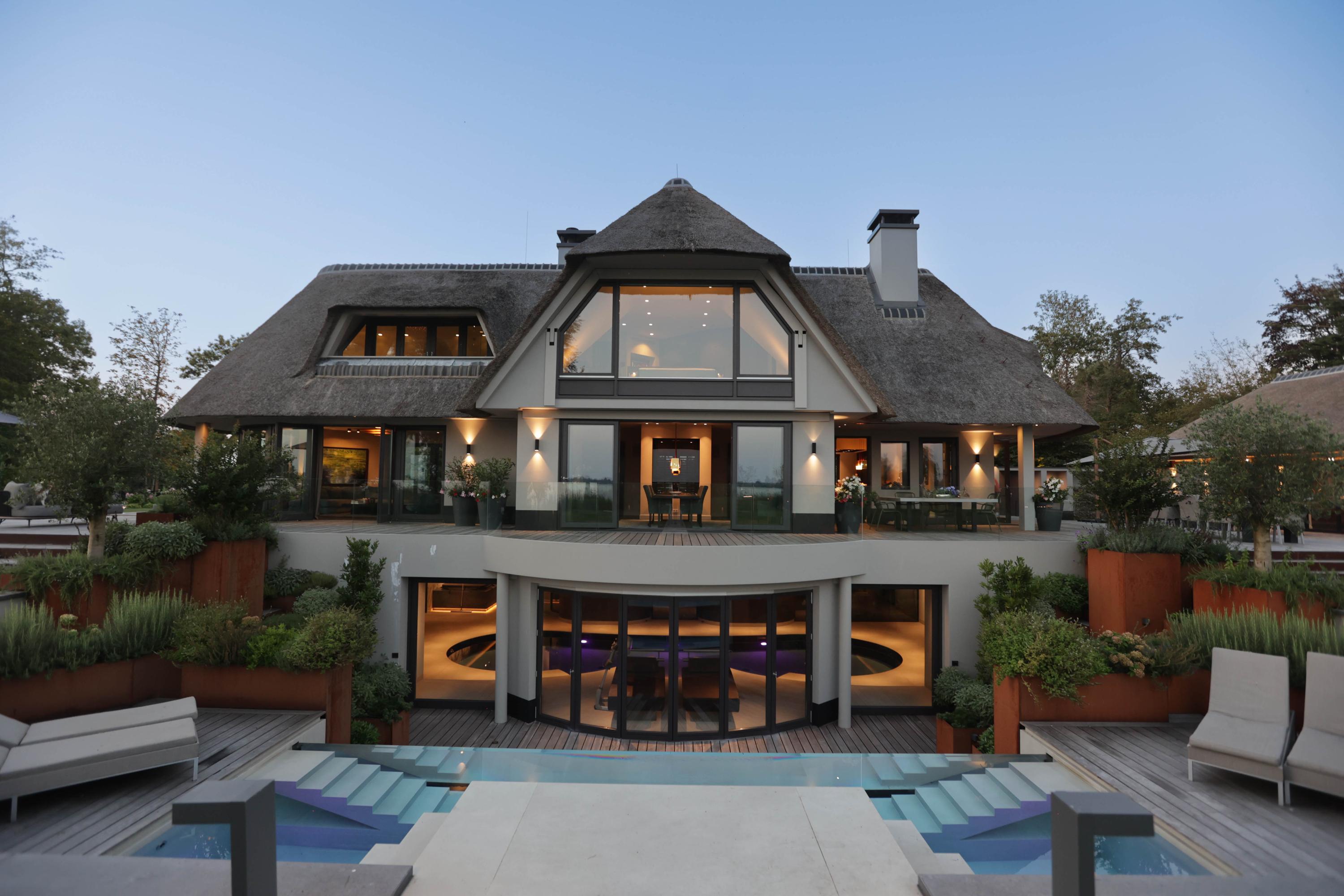 Discreetly hidden behind mature vegetation and understated entrance gates is your own private paradise. The driveway leads you, via the beautifully landscaped garden and past the tennis court, to the impressive porched entrance. The double front door open to the welcoming, organically designed reception hall. As soon as you walk into this home, it's crystal clear, living here is golden.