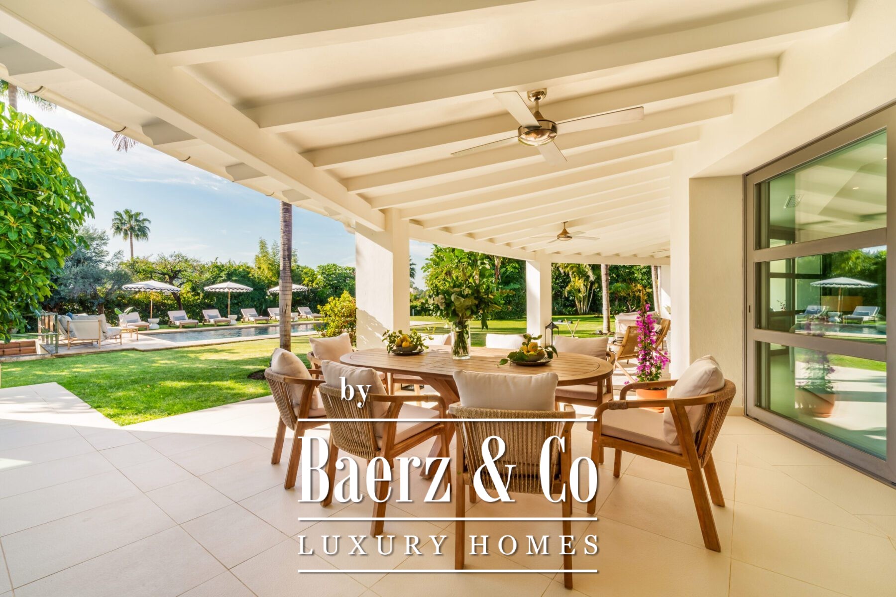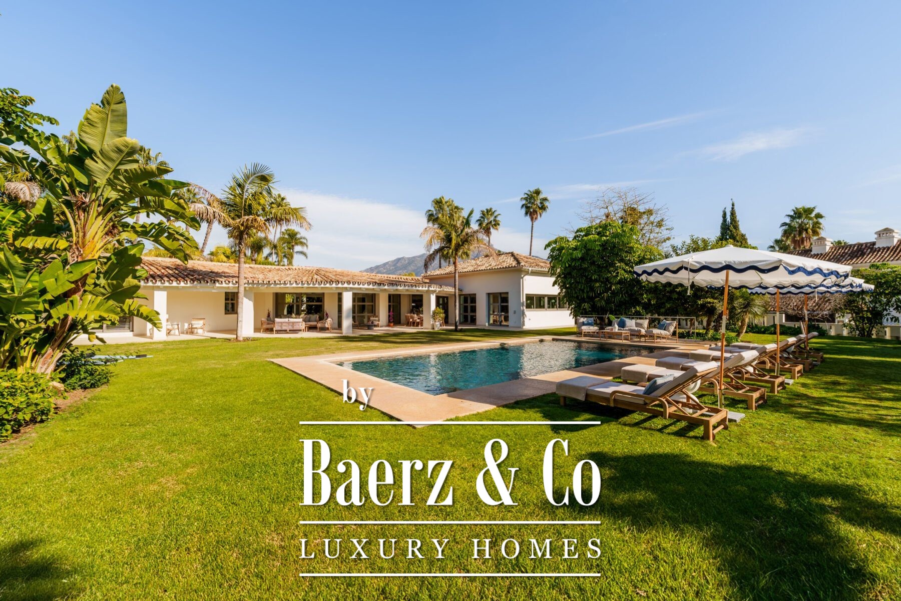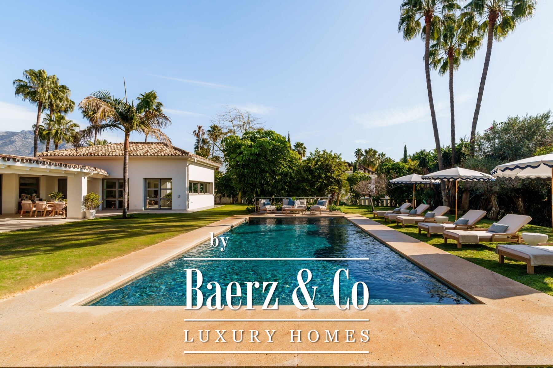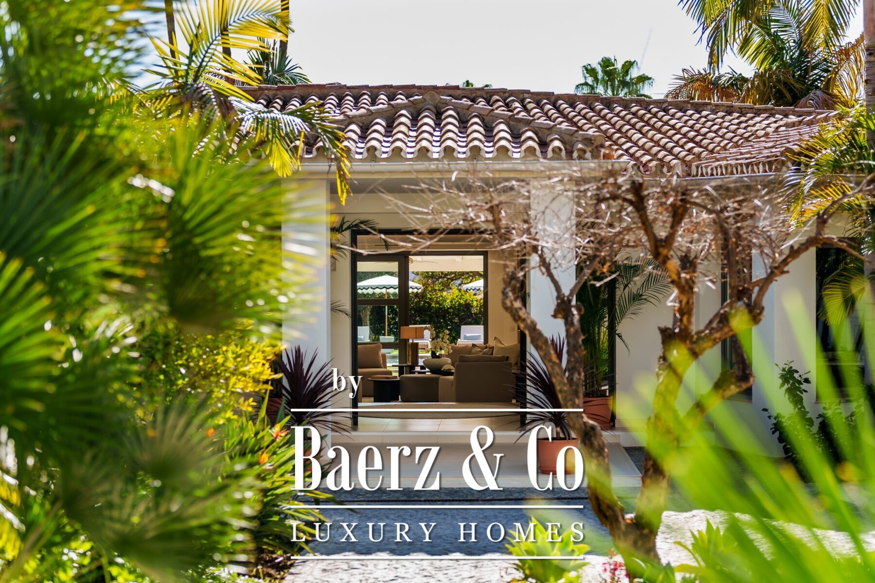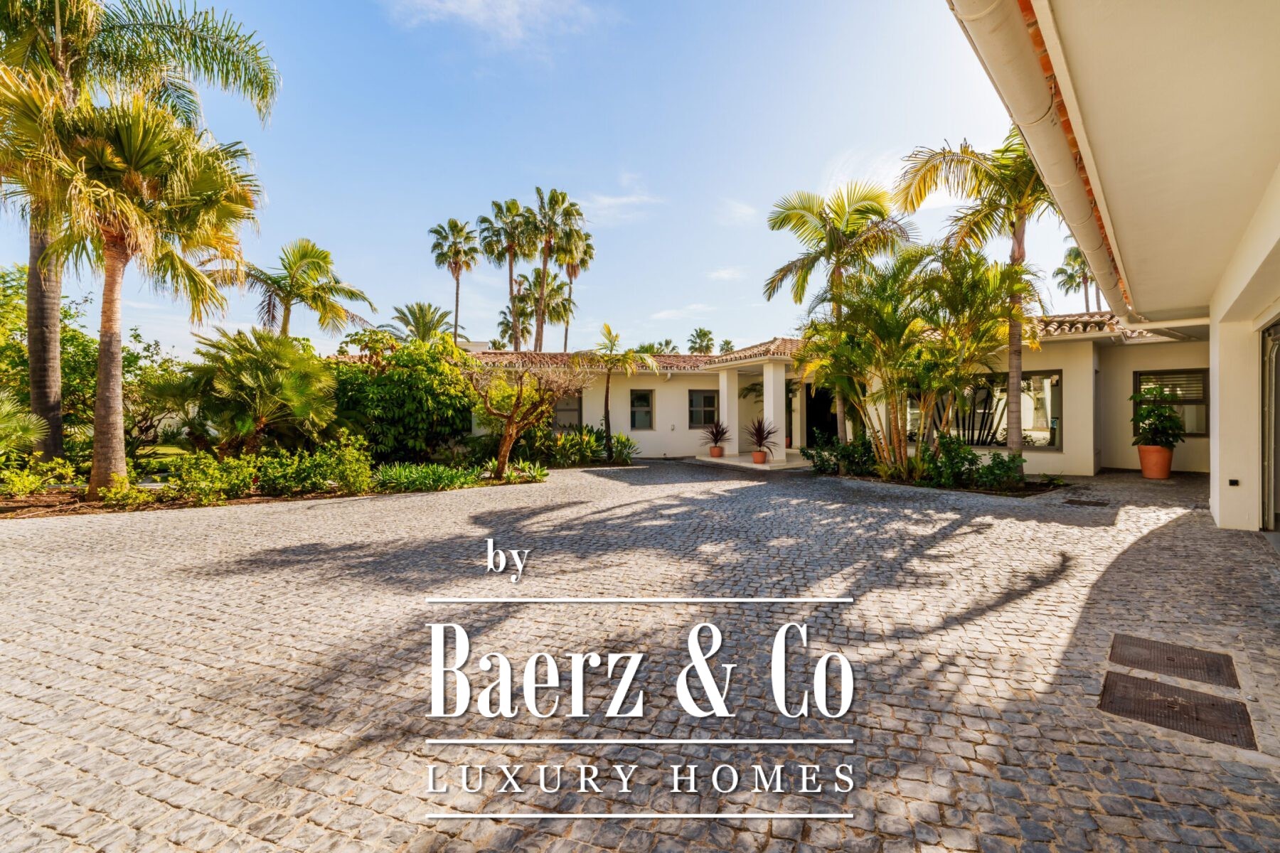 Villa Marbella with Mature Botanical Gardens and Golf Views unfolds across 722m² on a single level, set within a 3,081m² south-facing plot in La Cerquilla, Nueva Andalucía. This villa Marbella property has evolved through thoughtful renovations, with a landmark update in 2013 by Bonifacio Solis and attentive upgrades as recently as 2024. The result is a residence that balances architectural clarity and botanical splendor with discretion and enduring quality.
