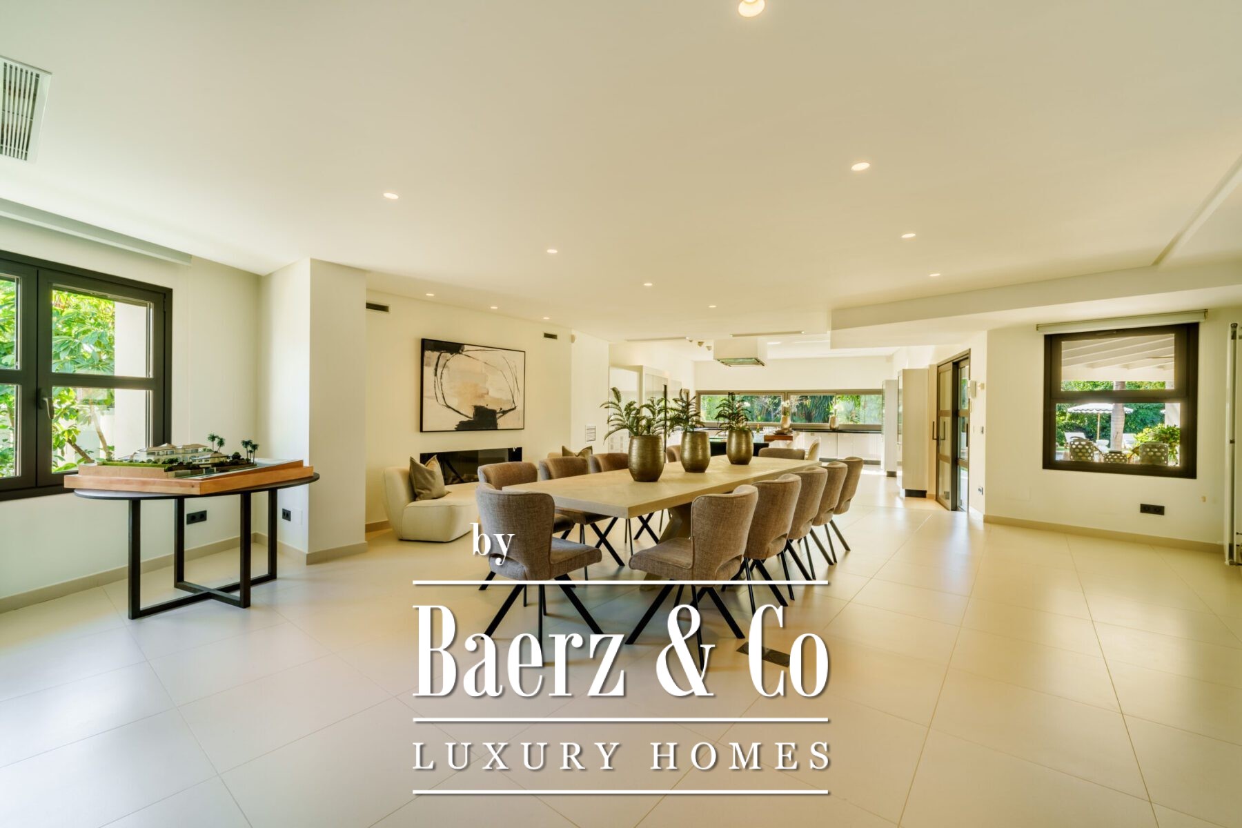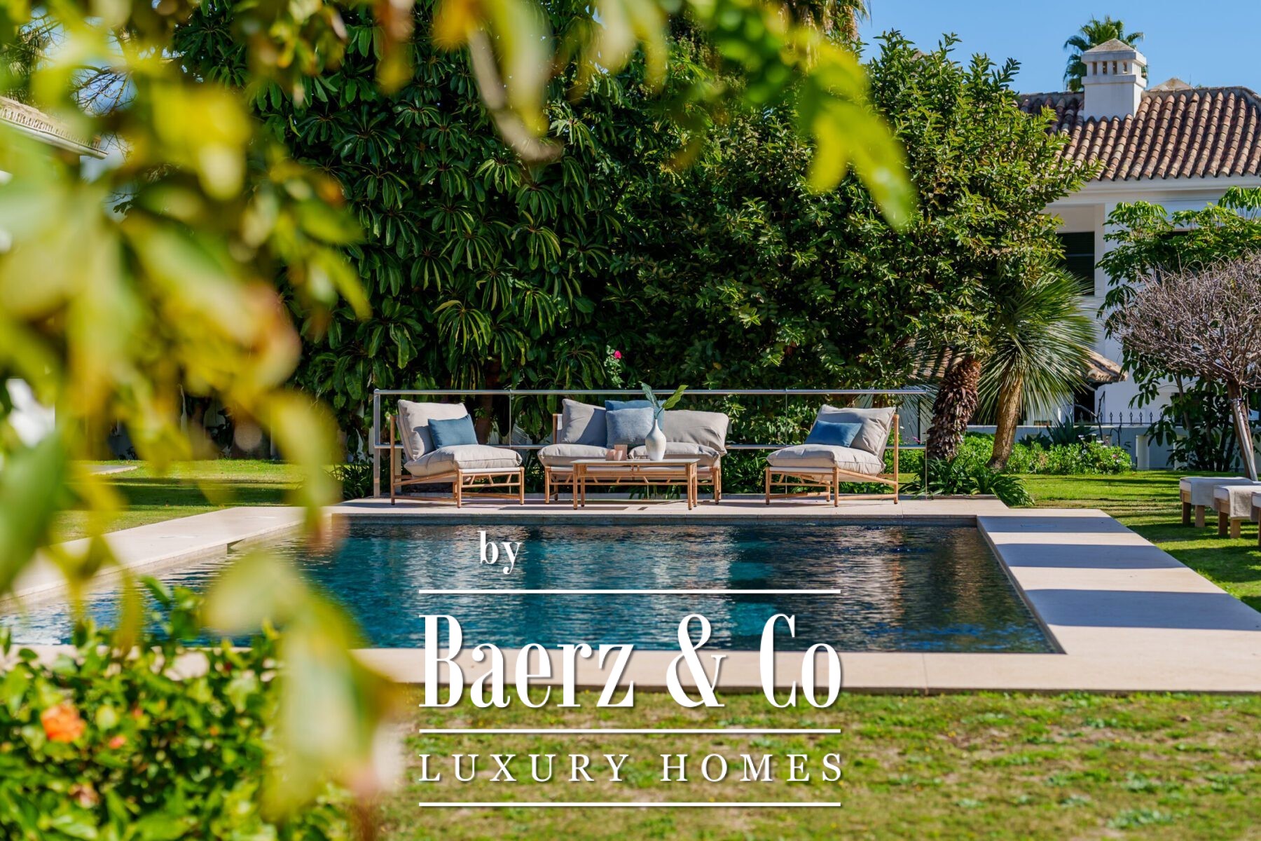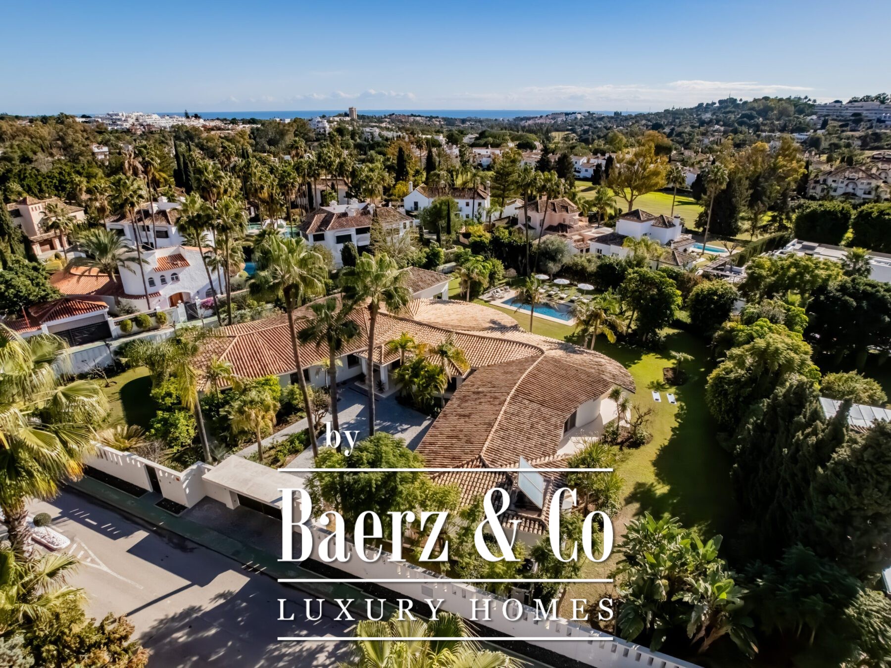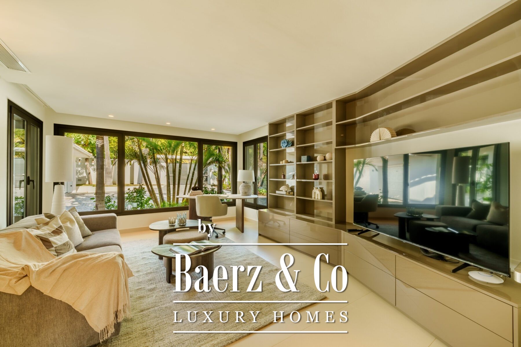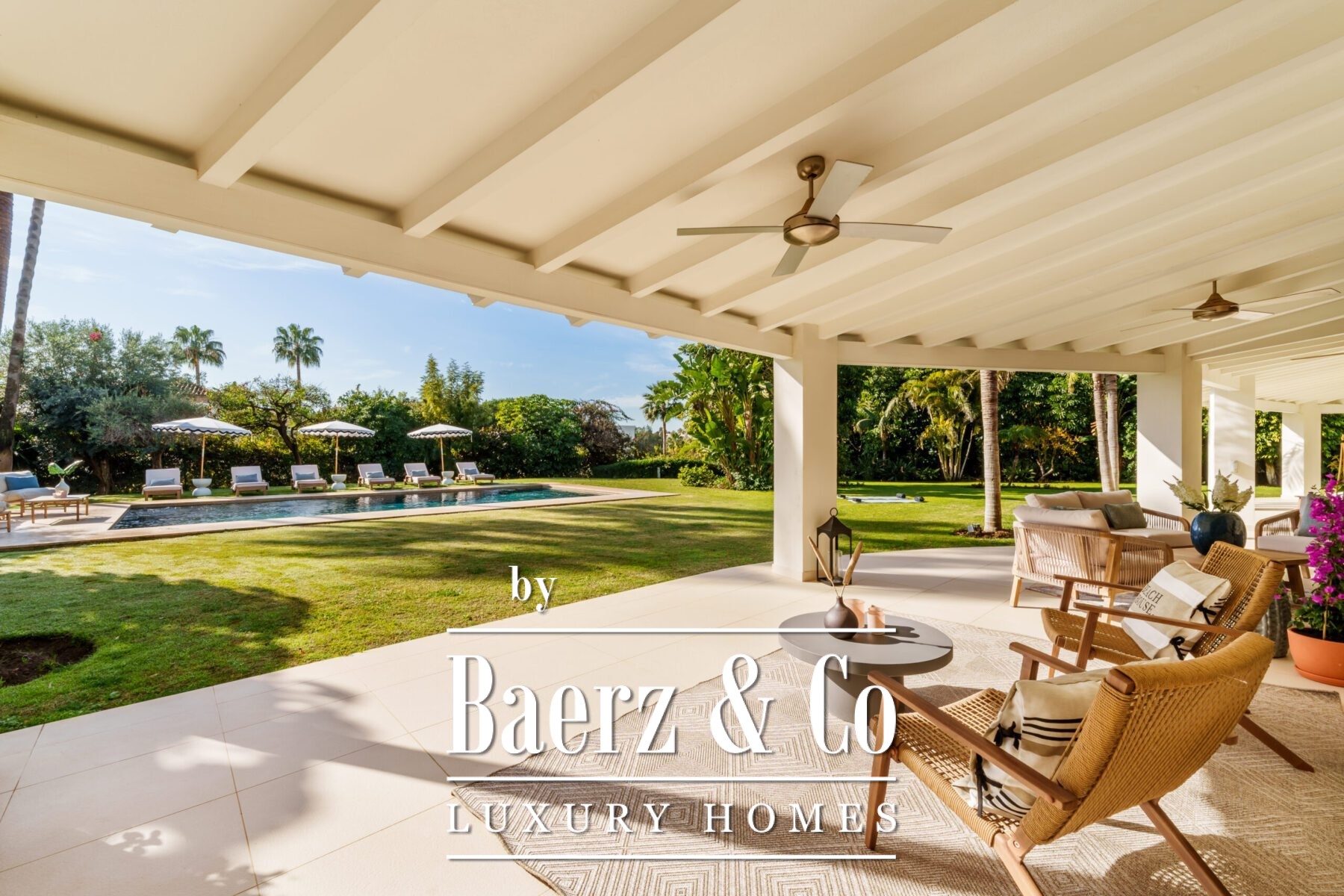 Villa Marbella with Mature Botanical Gardens and Golf Views unfolds across 722m² on a single level, set within a 3,081m² south-facing plot in La Cerquilla, Nueva Andalucía. This villa Marbella property has evolved through thoughtful renovations, with a landmark update in 2013 by Bonifacio Solis and attentive upgrades as recently as 2024. The result is a residence that balances architectural clarity and botanical splendor with discretion and enduring quality.