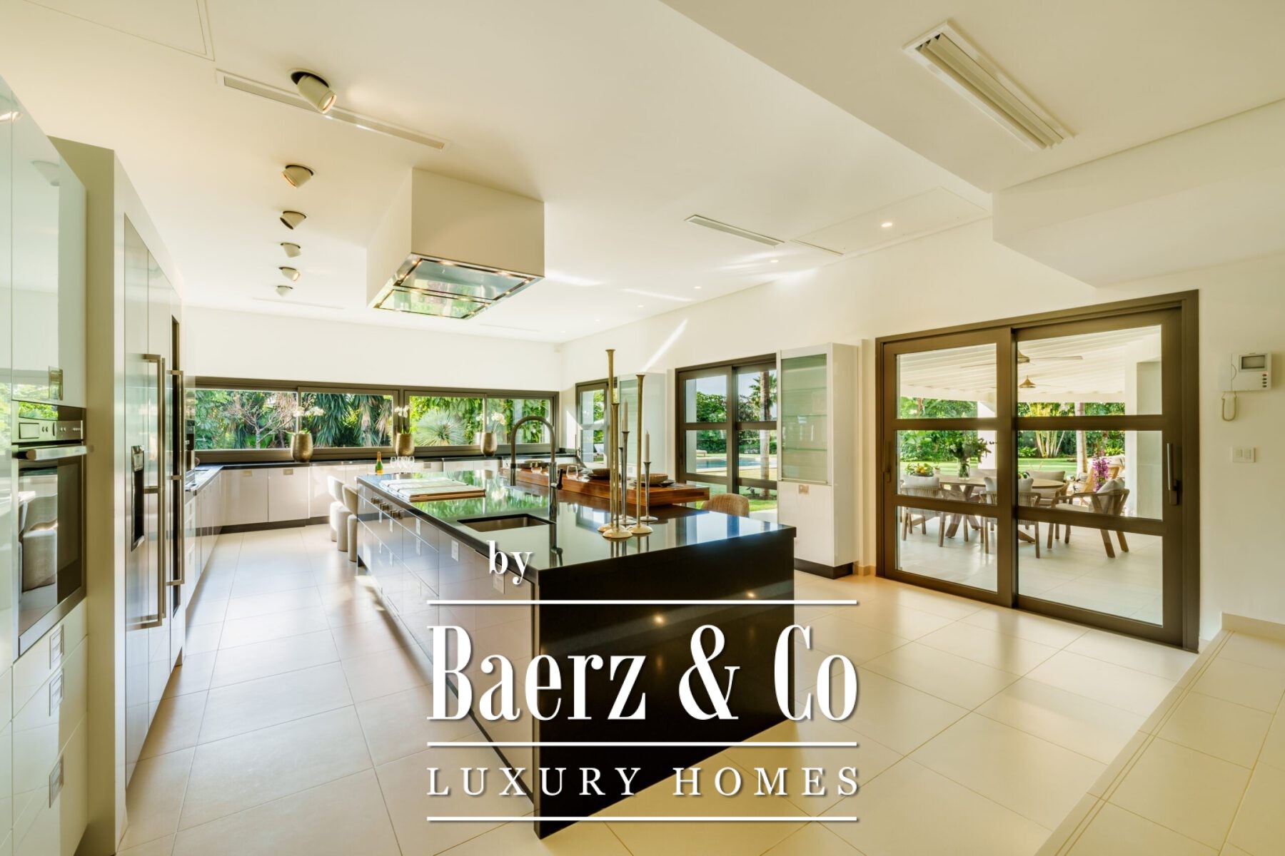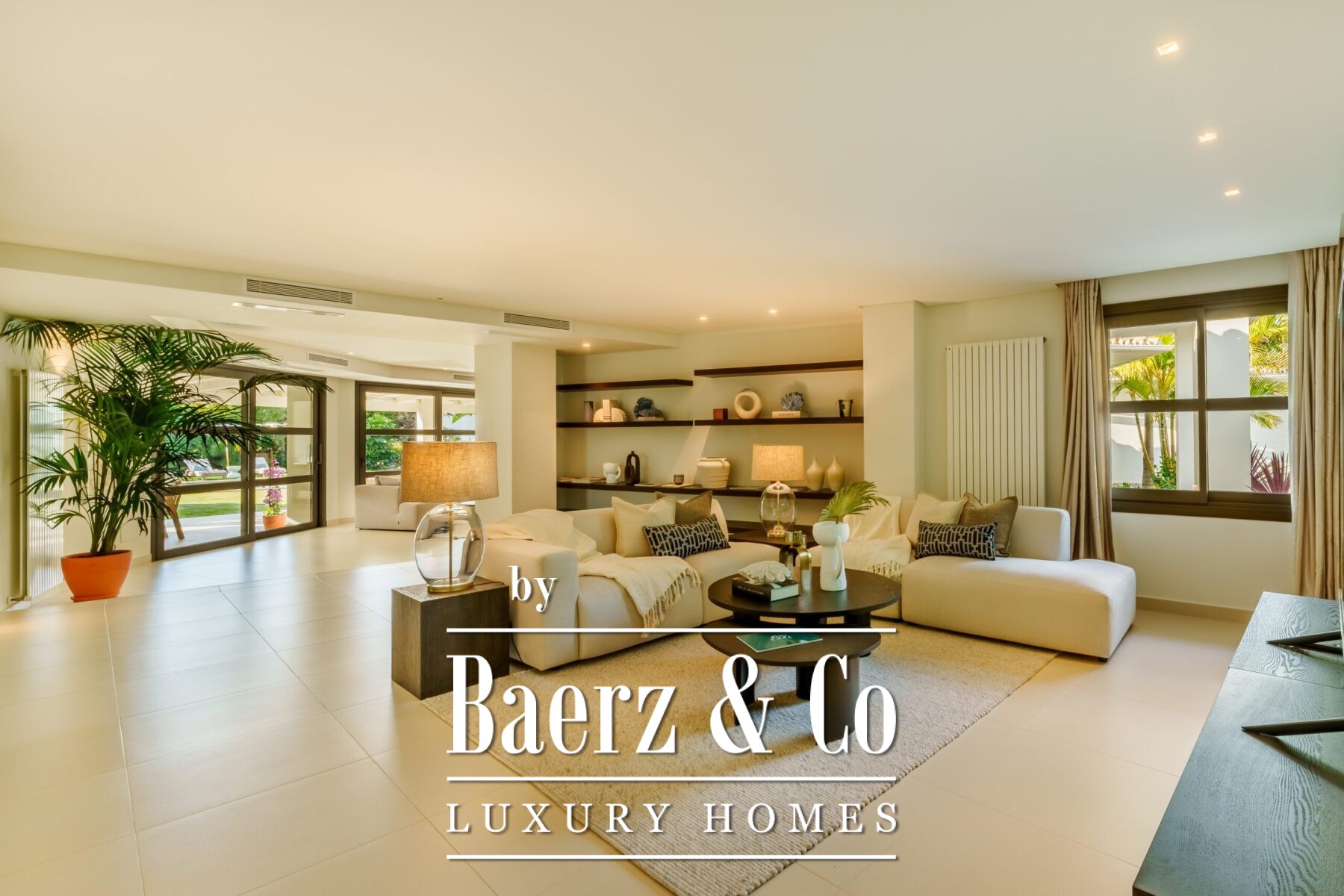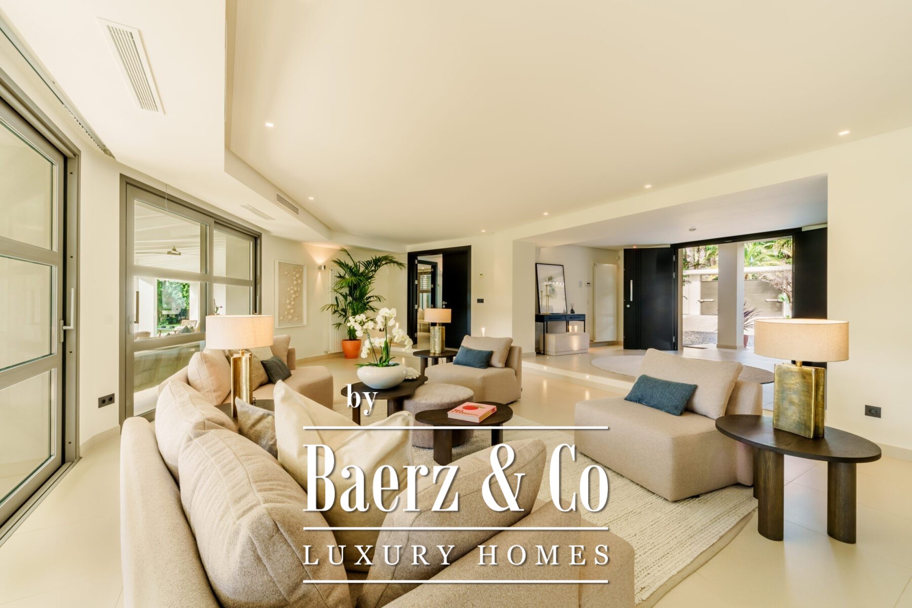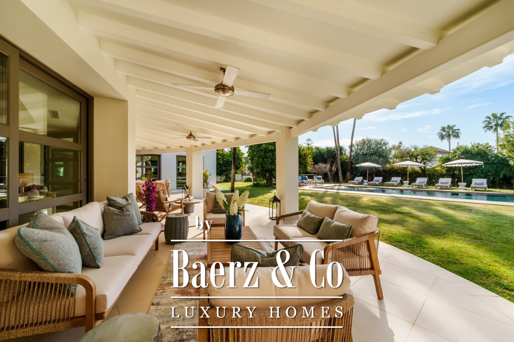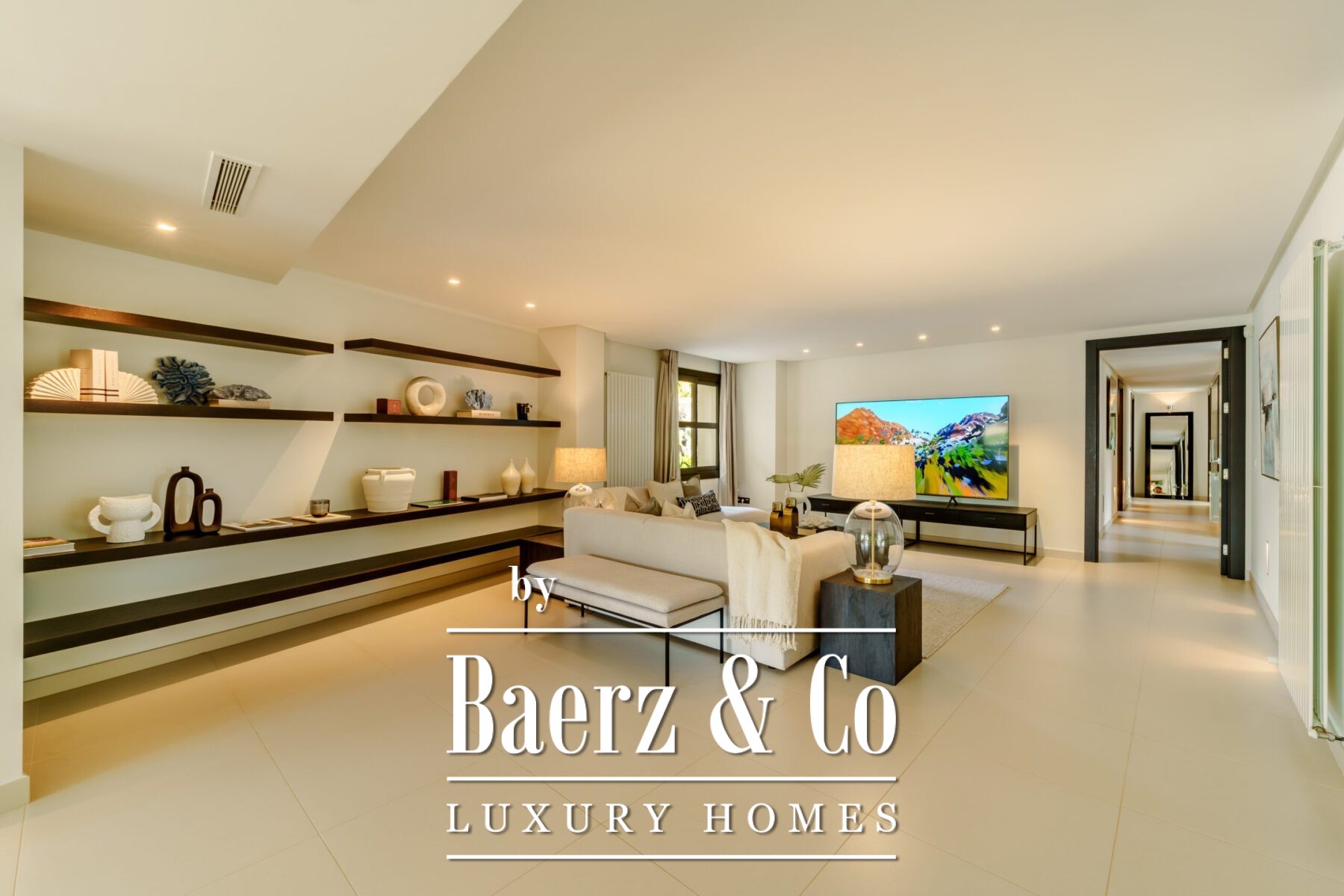 Villa Marbella with Mature Botanical Gardens and Golf Views unfolds across 722m² on a single level, set within a 3,081m² south-facing plot in La Cerquilla, Nueva Andalucía. This villa Marbella property has evolved through thoughtful renovations, with a landmark update in 2013 by Bonifacio Solis and attentive upgrades as recently as 2024. The result is a residence that balances architectural clarity and botanical splendor with discretion and enduring quality.