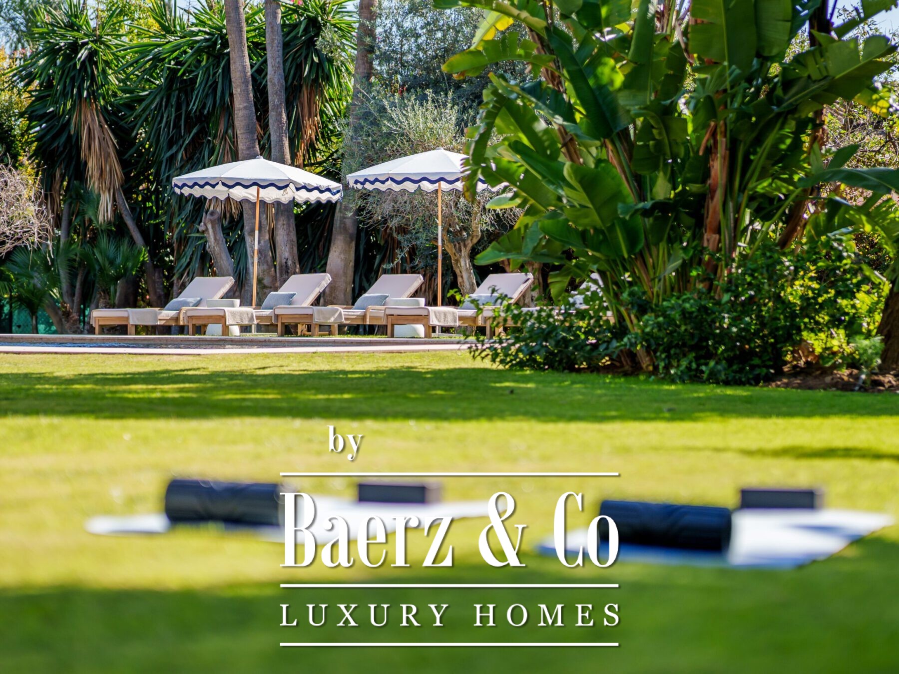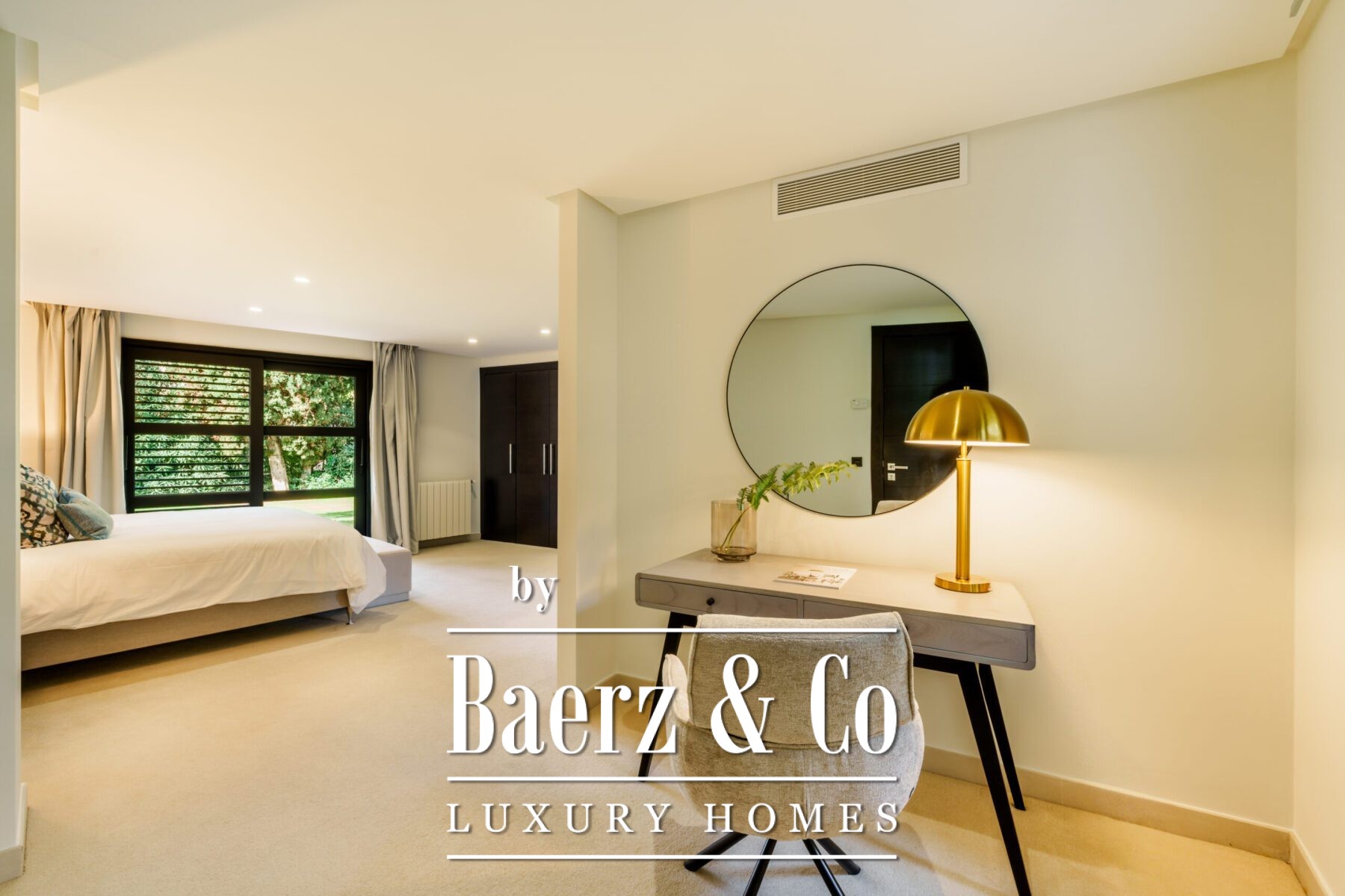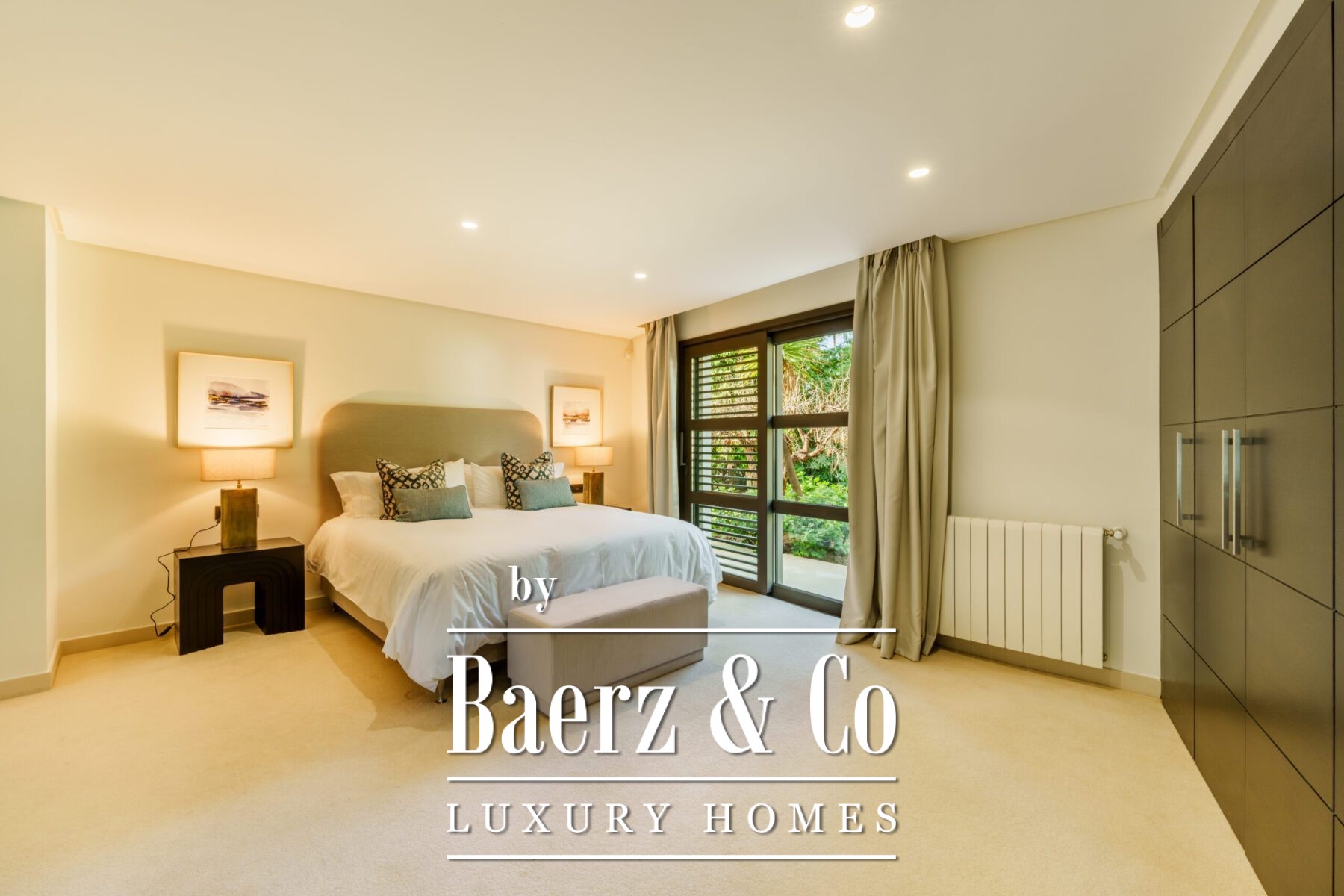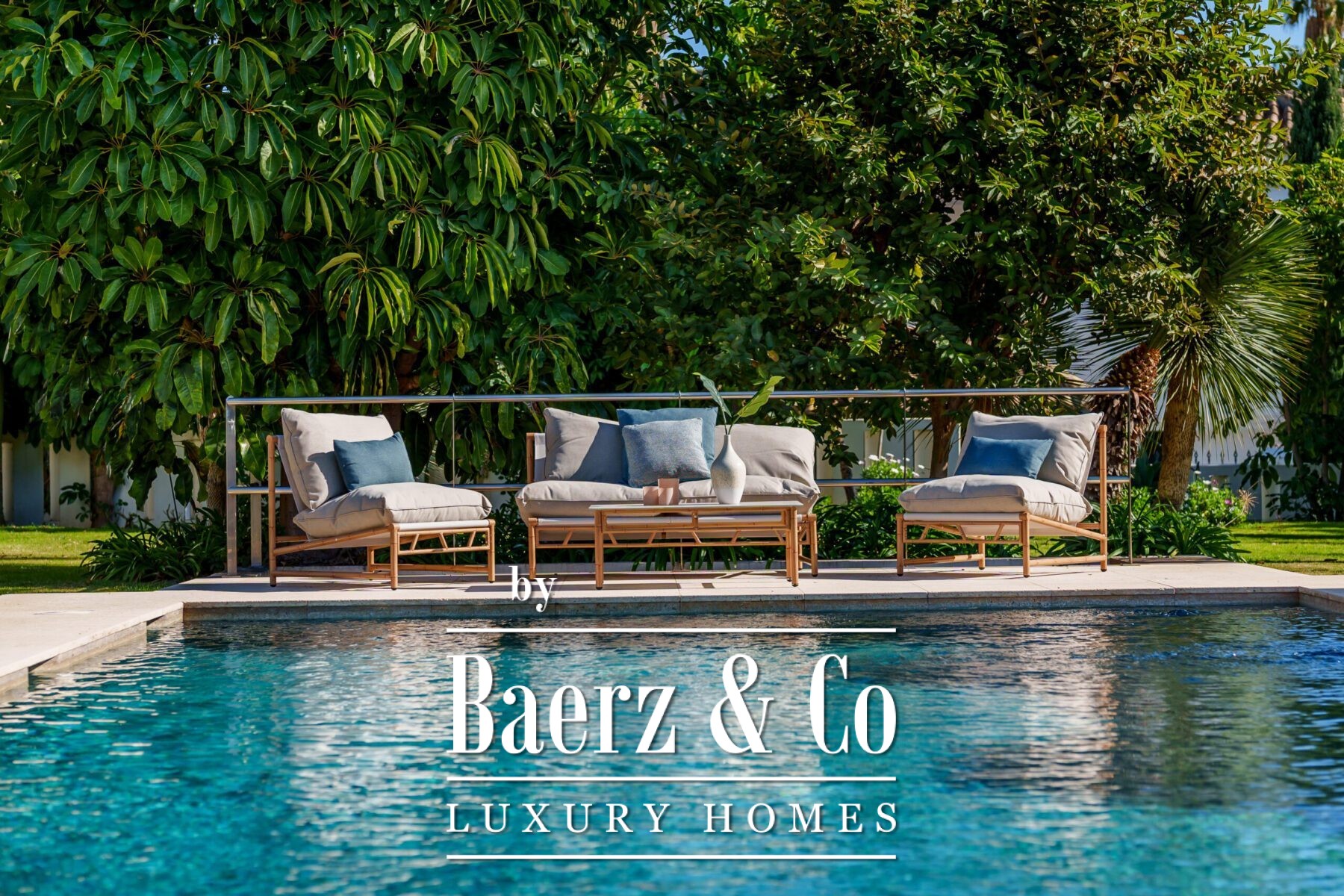 Lush landscaping by a renowned firm creates a sense of privacy and place, with century-old ficus trees, Washingtonia robusta palms, jacarandas in bloom, agave, hibiscus, and other sculptural plantings creating a private sanctuary. Discreet security and comfort details include Technal windows, Lutron lighting, air conditioning, alarm, water tank, and a four-car garage. Proximity to championship golf courses, the Mediterranean coastline, and Marbella’s upscale amenities combine to situate this luxury villa for sale in Marbella as a quiet axis of natural beauty and refined living.
