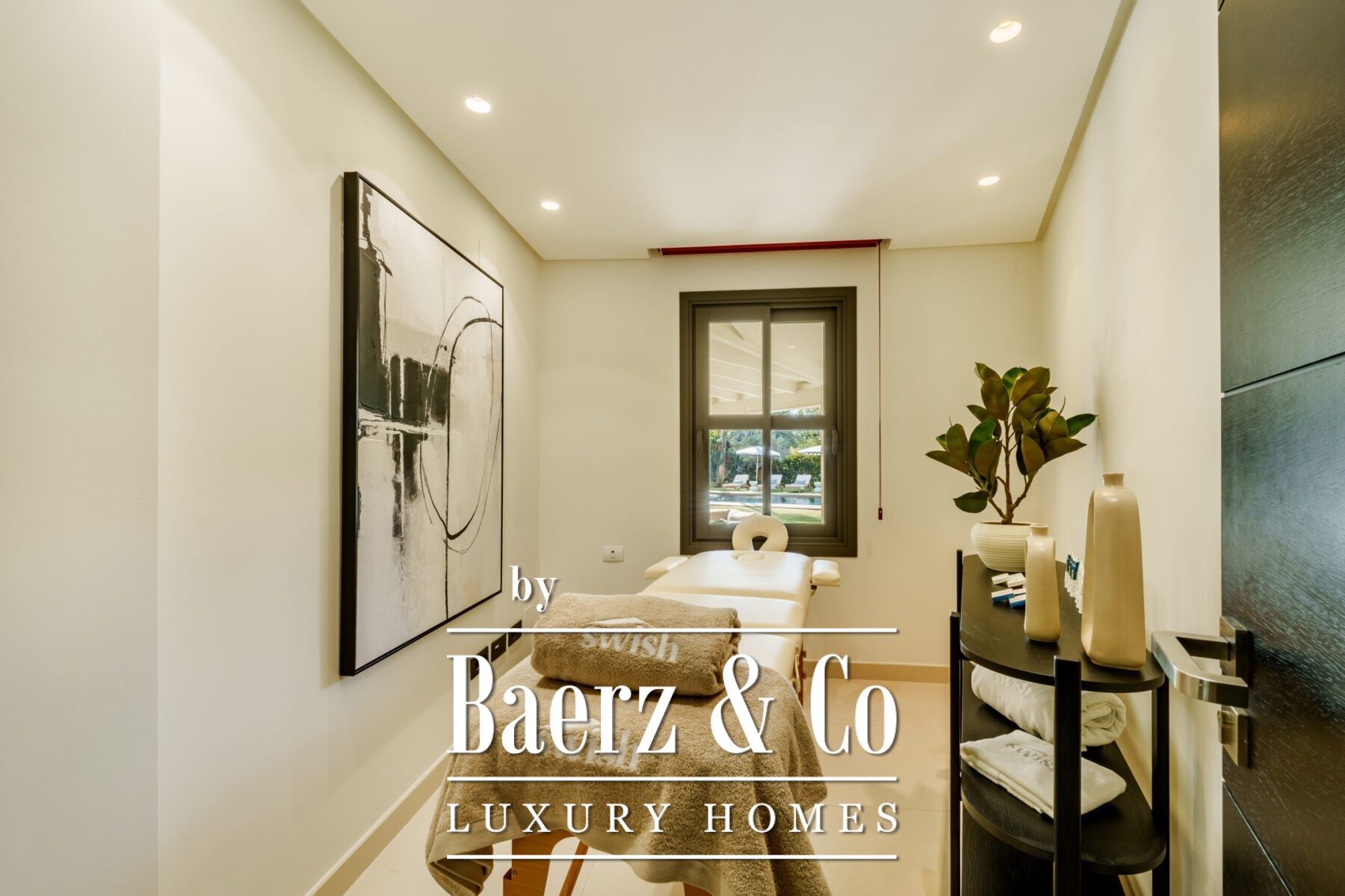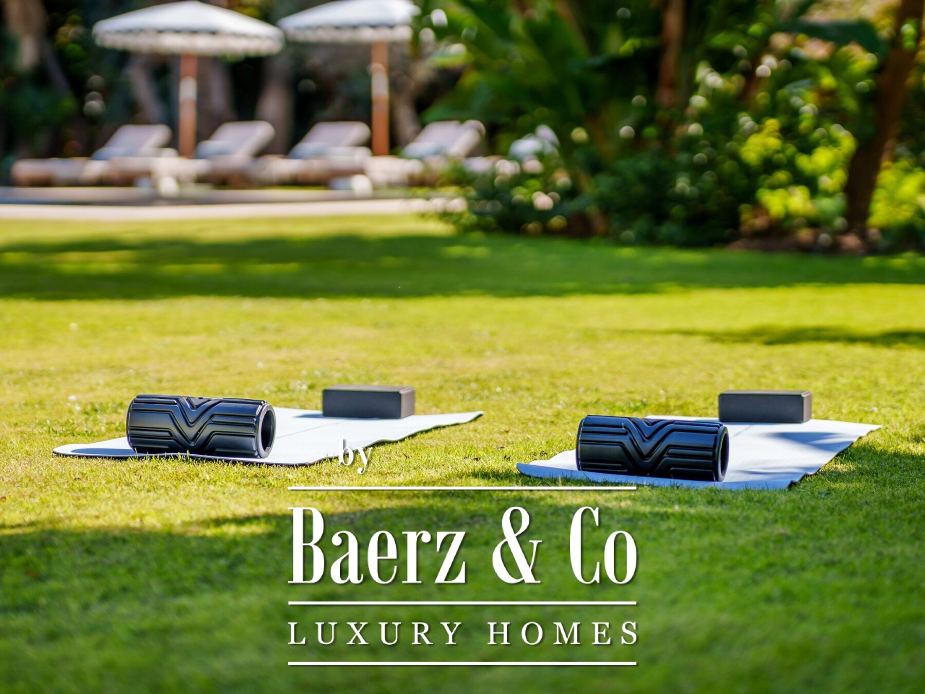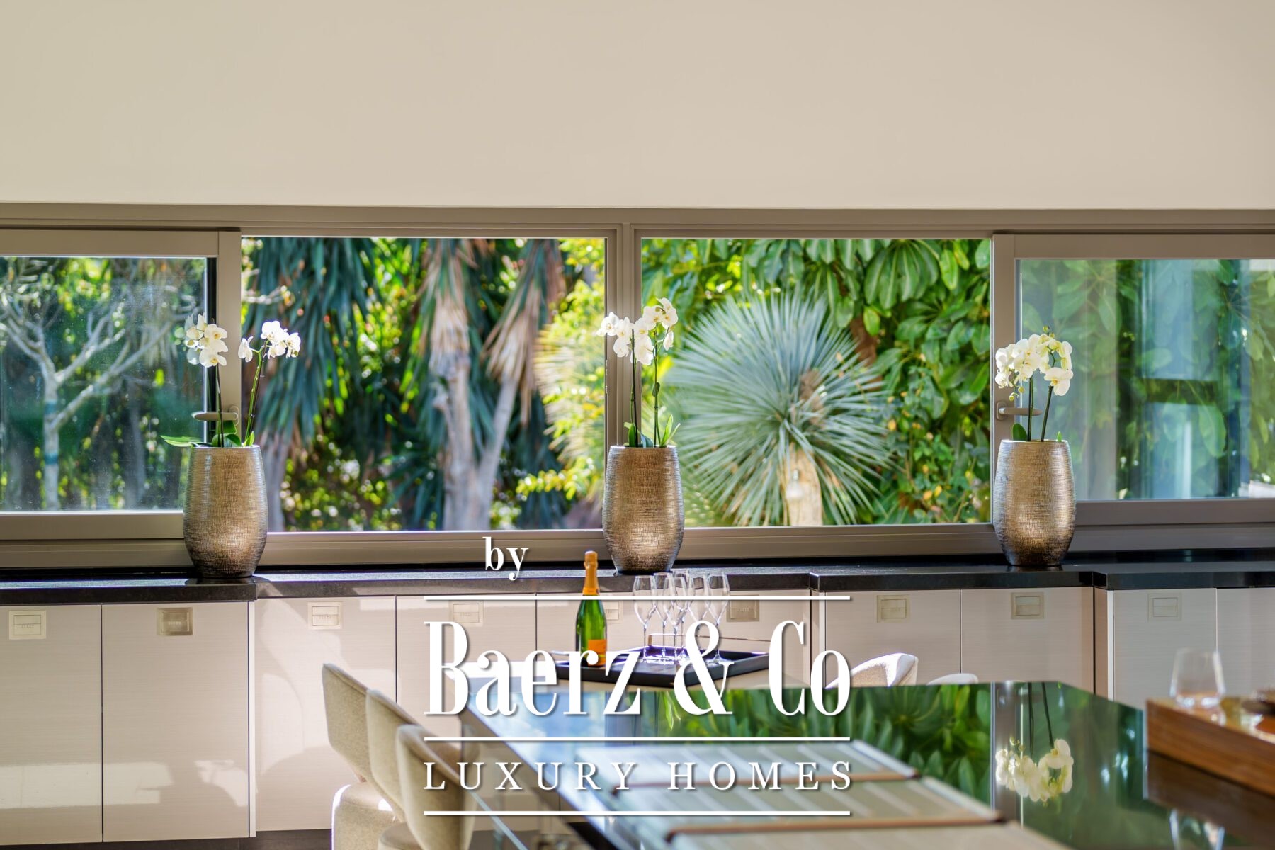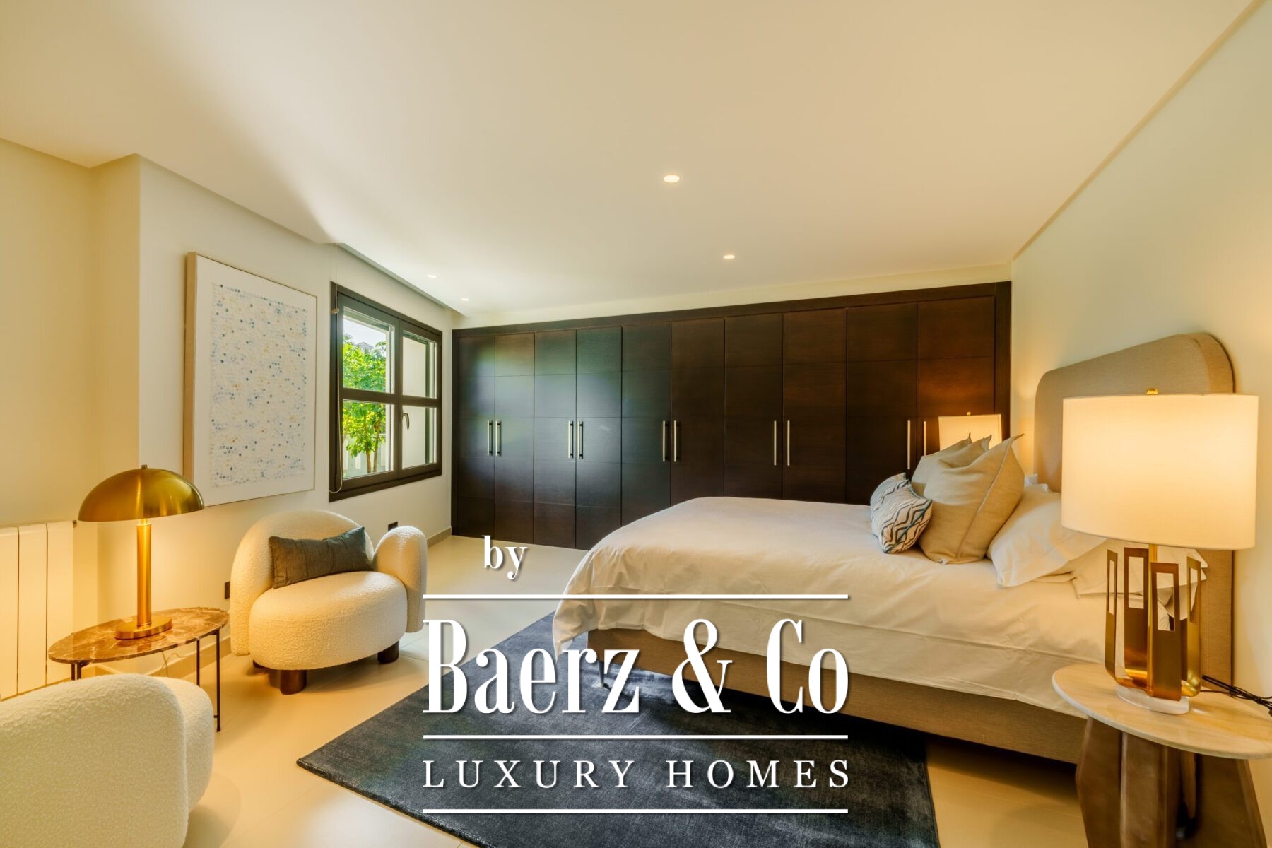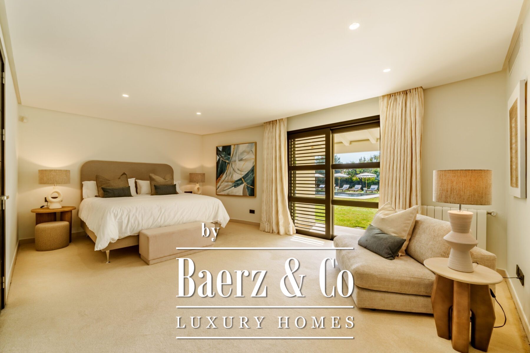 Lush landscaping by a renowned firm creates a sense of privacy and place, with century-old ficus trees, Washingtonia robusta palms, jacarandas in bloom, agave, hibiscus, and other sculptural plantings creating a private sanctuary. Discreet security and comfort details include Technal windows, Lutron lighting, air conditioning, alarm, water tank, and a four-car garage. Proximity to championship golf courses, the Mediterranean coastline, and Marbella’s upscale amenities combine to situate this luxury villa for sale in Marbella as a quiet axis of natural beauty and refined living.