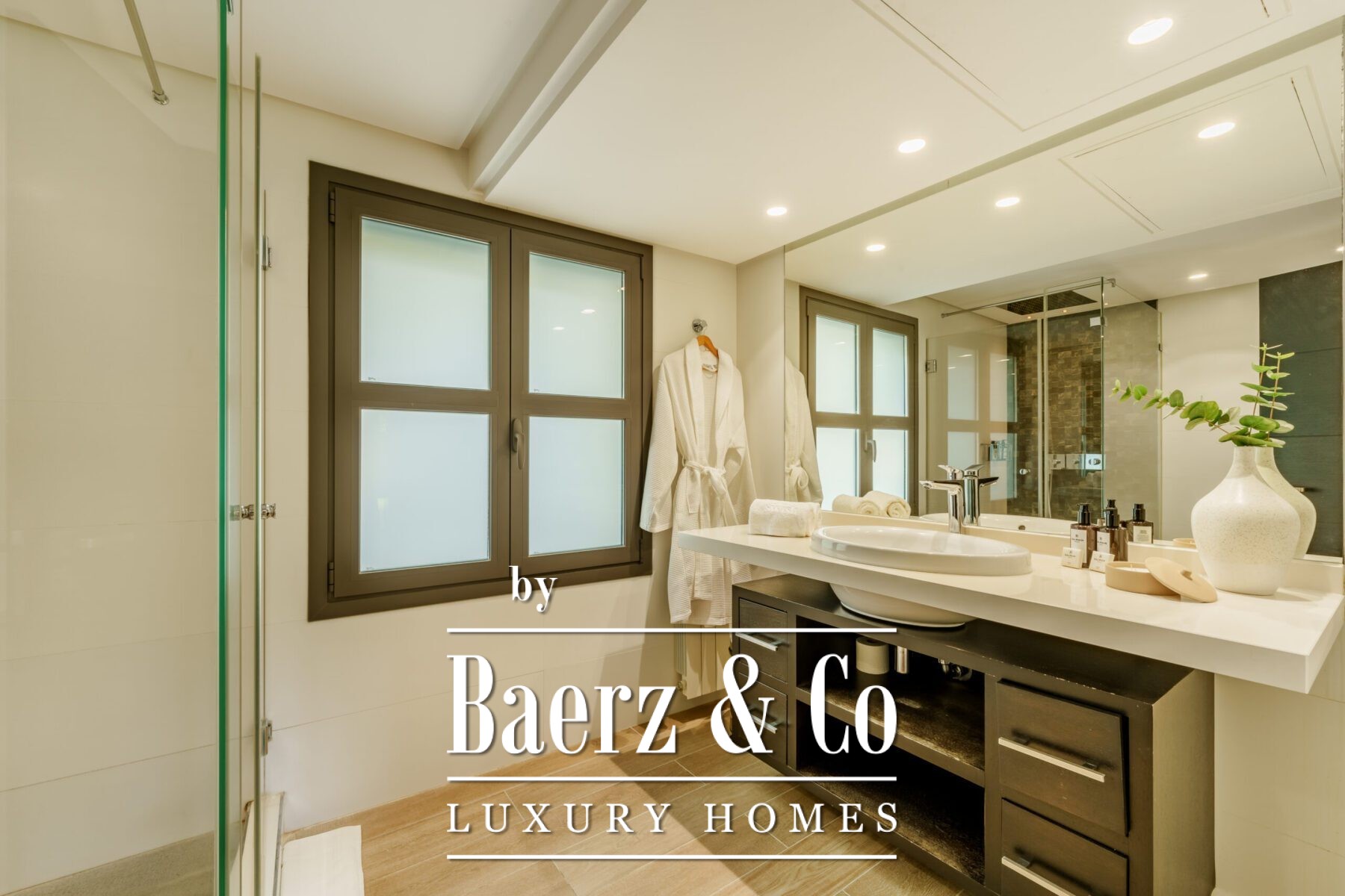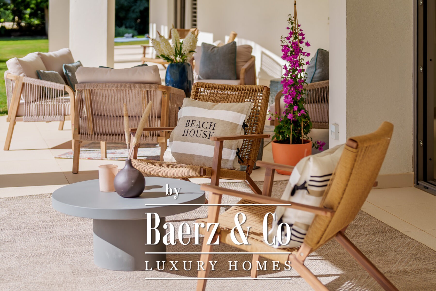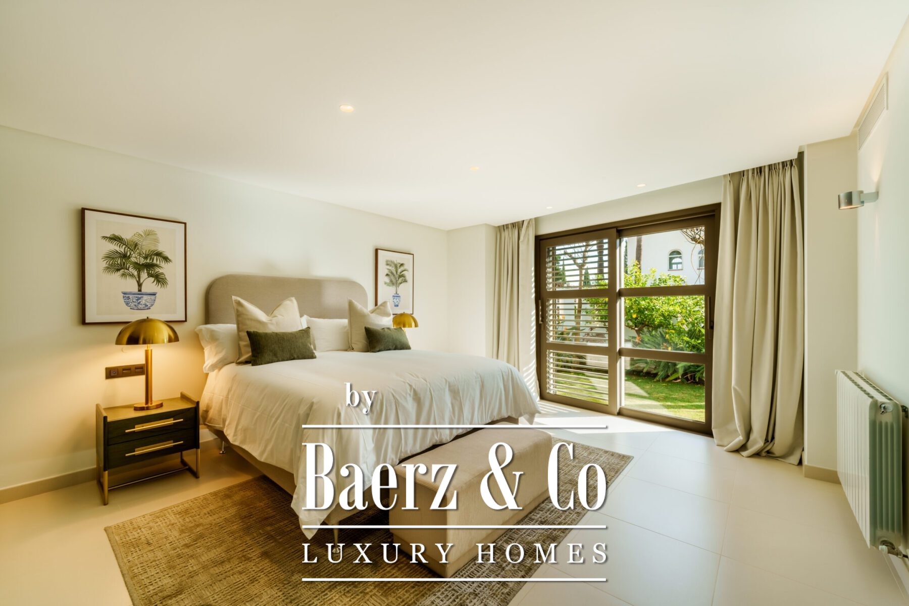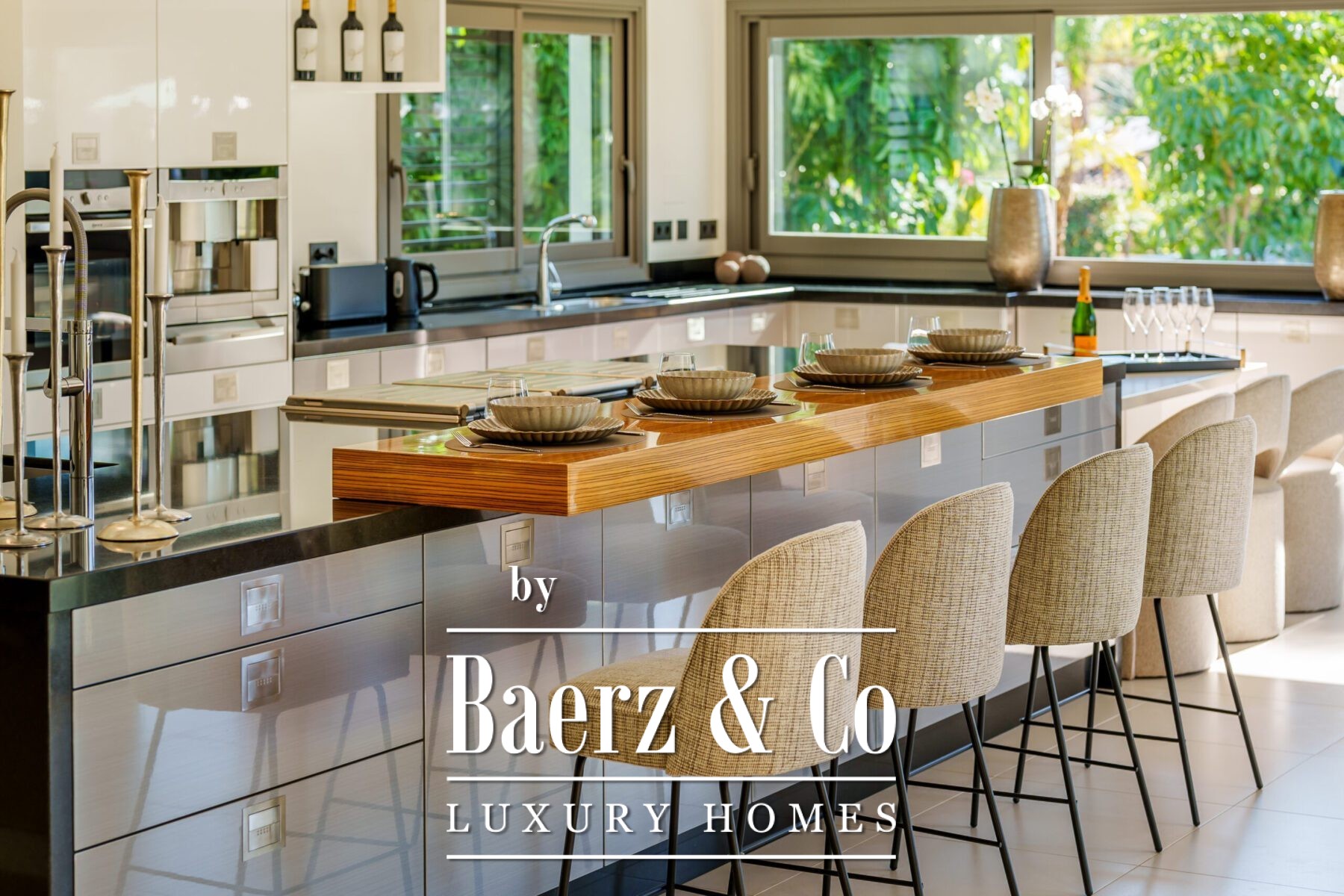 Lush landscaping by a renowned firm creates a sense of privacy and place, with century-old ficus trees, Washingtonia robusta palms, jacarandas in bloom, agave, hibiscus, and other sculptural plantings creating a private sanctuary. Discreet security and comfort details include Technal windows, Lutron lighting, air conditioning, alarm, water tank, and a four-car garage. Proximity to championship golf courses, the Mediterranean coastline, and Marbella’s upscale amenities combine to situate this luxury villa for sale in Marbella as a quiet axis of natural beauty and refined living.