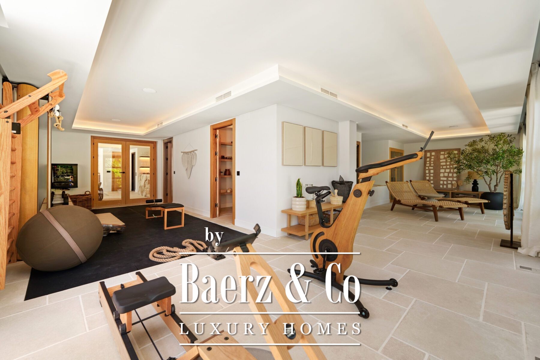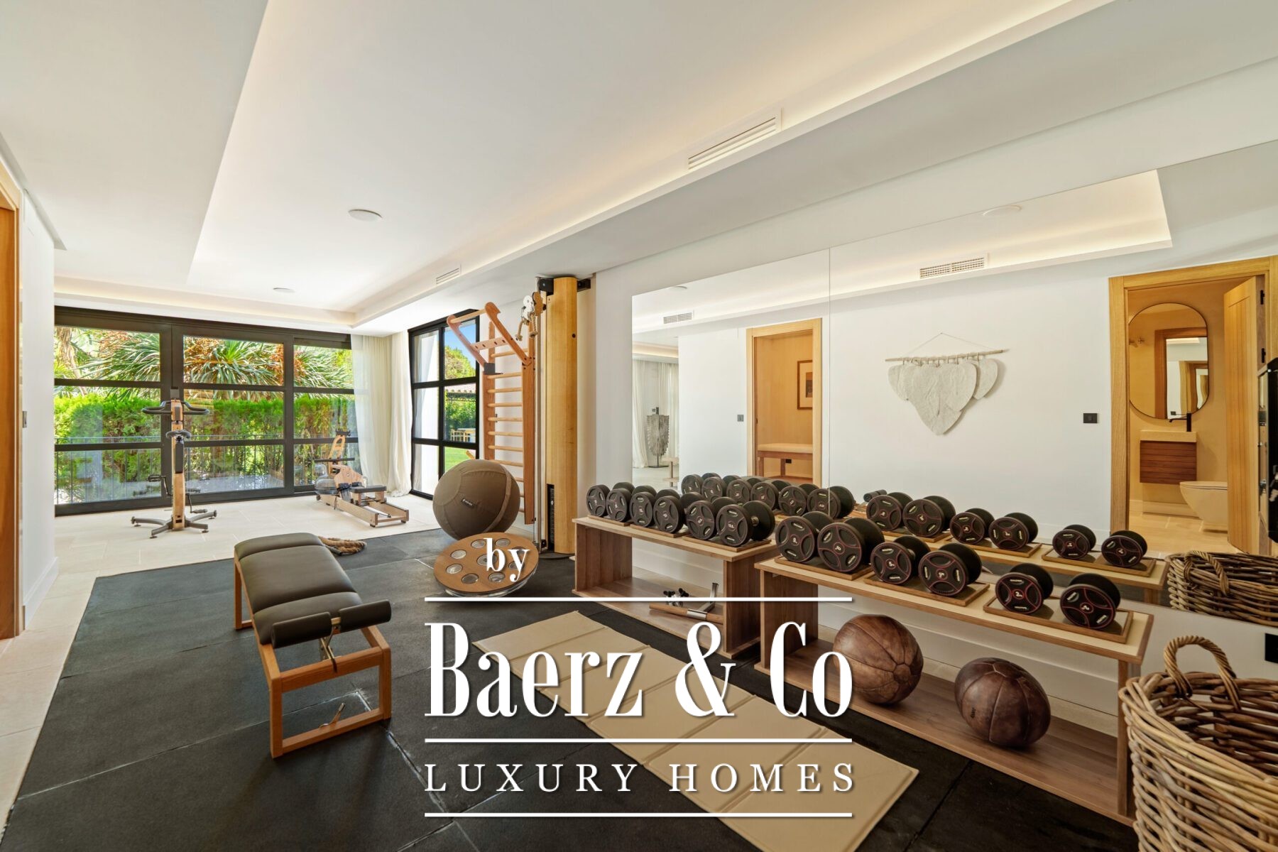 The heart of the home is a state-of-the-art gourmet kitchen, illuminated by natural light and designed for both convivial gatherings and private family moments. Dedicated spaces for wellness and entertainment unfold across the villa, including a private gym, indulgent spa, home cinema, wine bodega, and an additional leisure room for family or guests.