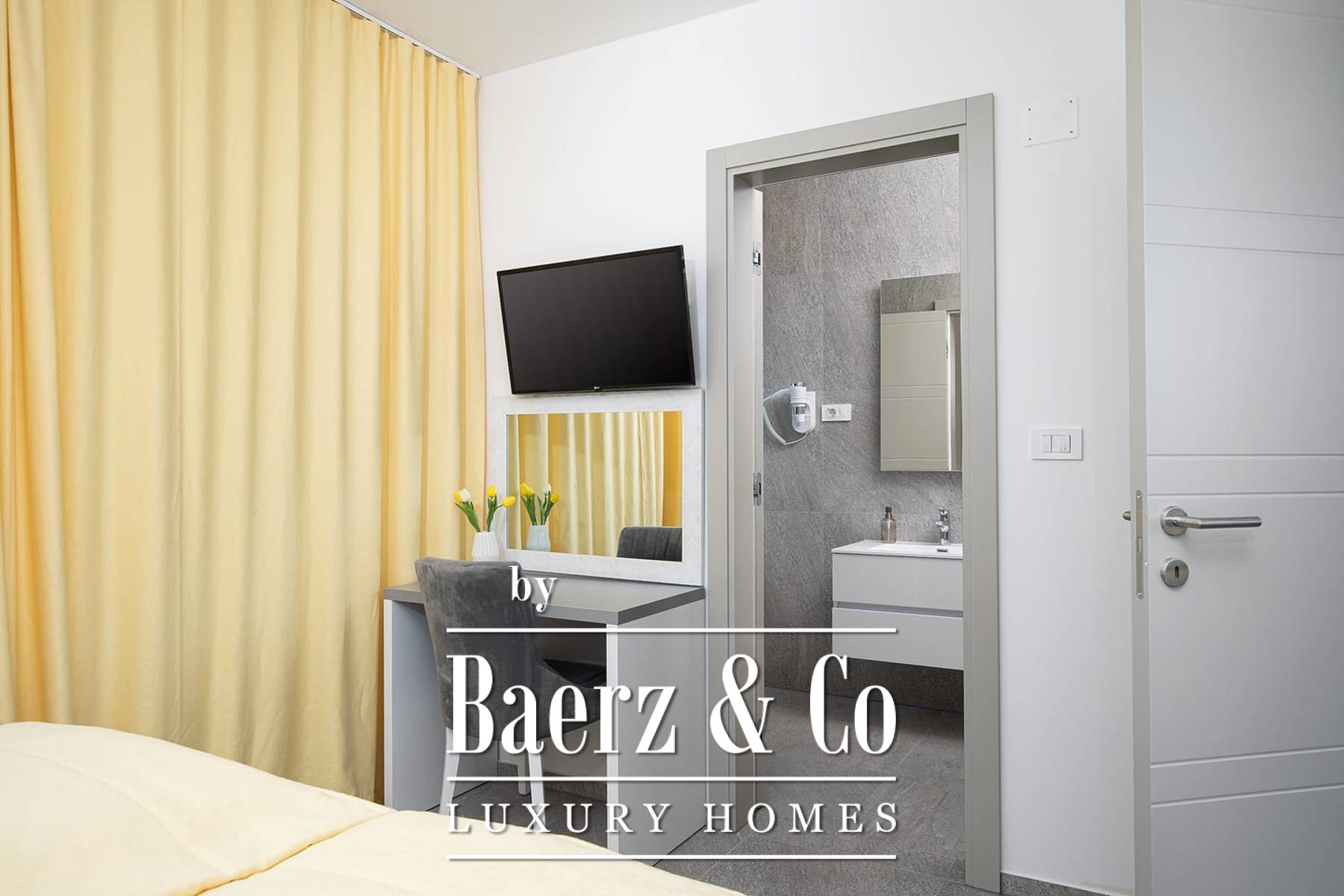 floor, stairs lead to a corridor through which there are 5 bedrooms, 5 bathrooms, a laundry room and two covered terraces. One terrace connects two bedrooms, while the second terrace is accessed from the hallway. Underfloor electric heating throughout the villa. Air conditioned too. ALU PVC joinery with mosquito nets. Video surveillance of the villa. First-class ceramics and furniture. It is sold in a fully furnished condition as shown in the pictures. The villa is ready for rent and is an excellent property for use for tourist purposes. We are at your disposal for more additional information.