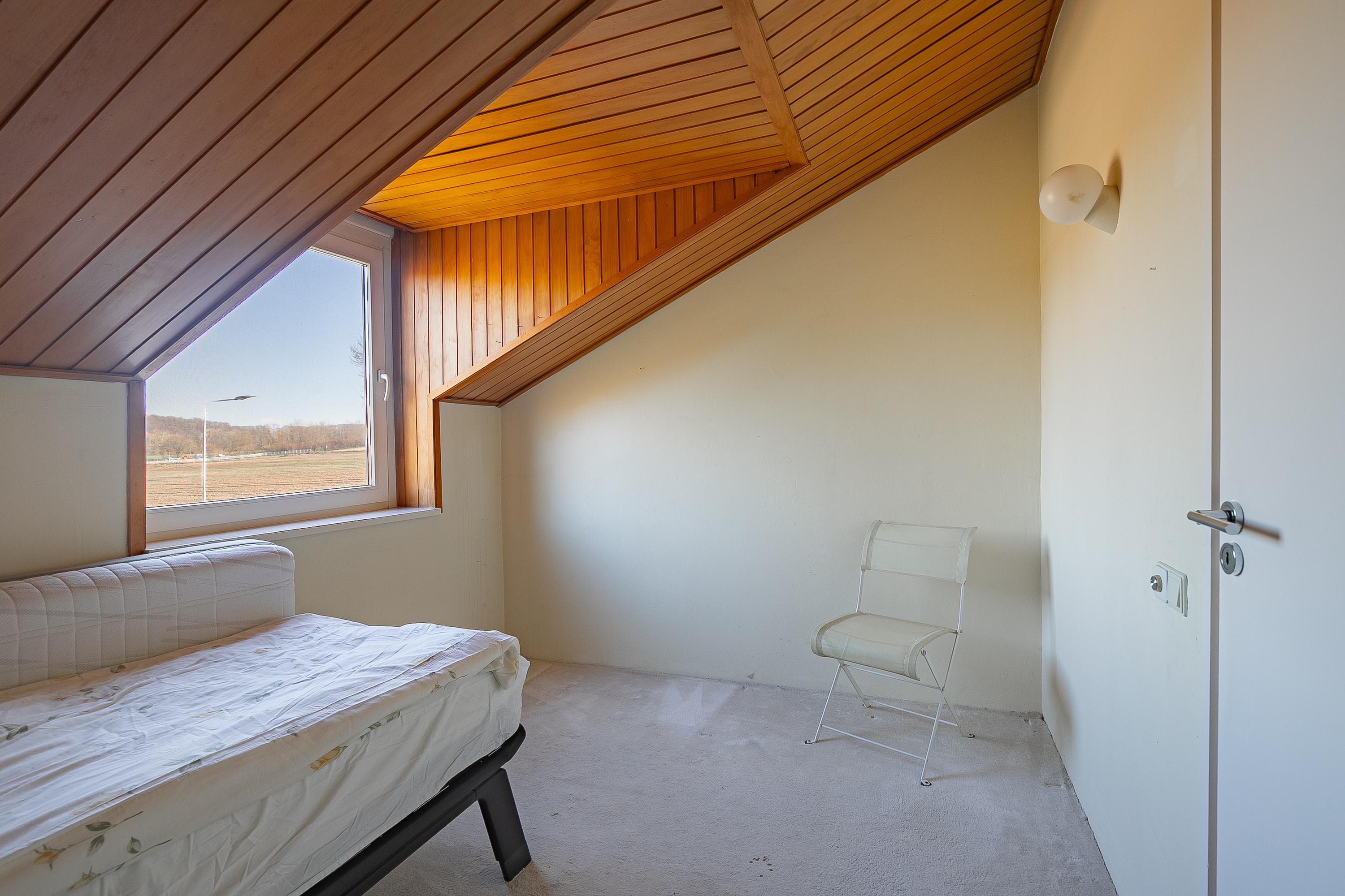 The beautiful semicircular staircase leads to the spacious landing with access to three bedrooms, a bathroom, separate toilet, and a hallway. The bedrooms at the front are approx. 7 and 9.5m² in size and offer beautiful views. The bathroom is approx. 4m² and has a shower, sink, skylight, and access to a storage room. The master bedroom is located at the rear (approx. 17m²) and has an en-suite bathroom. This bathroom (approx. 6m²) has a bath/shower combination, sink, and a dormer window. The porch of approx. 8m² overlooks the living room but can easily be transformed into an extra bedroom.