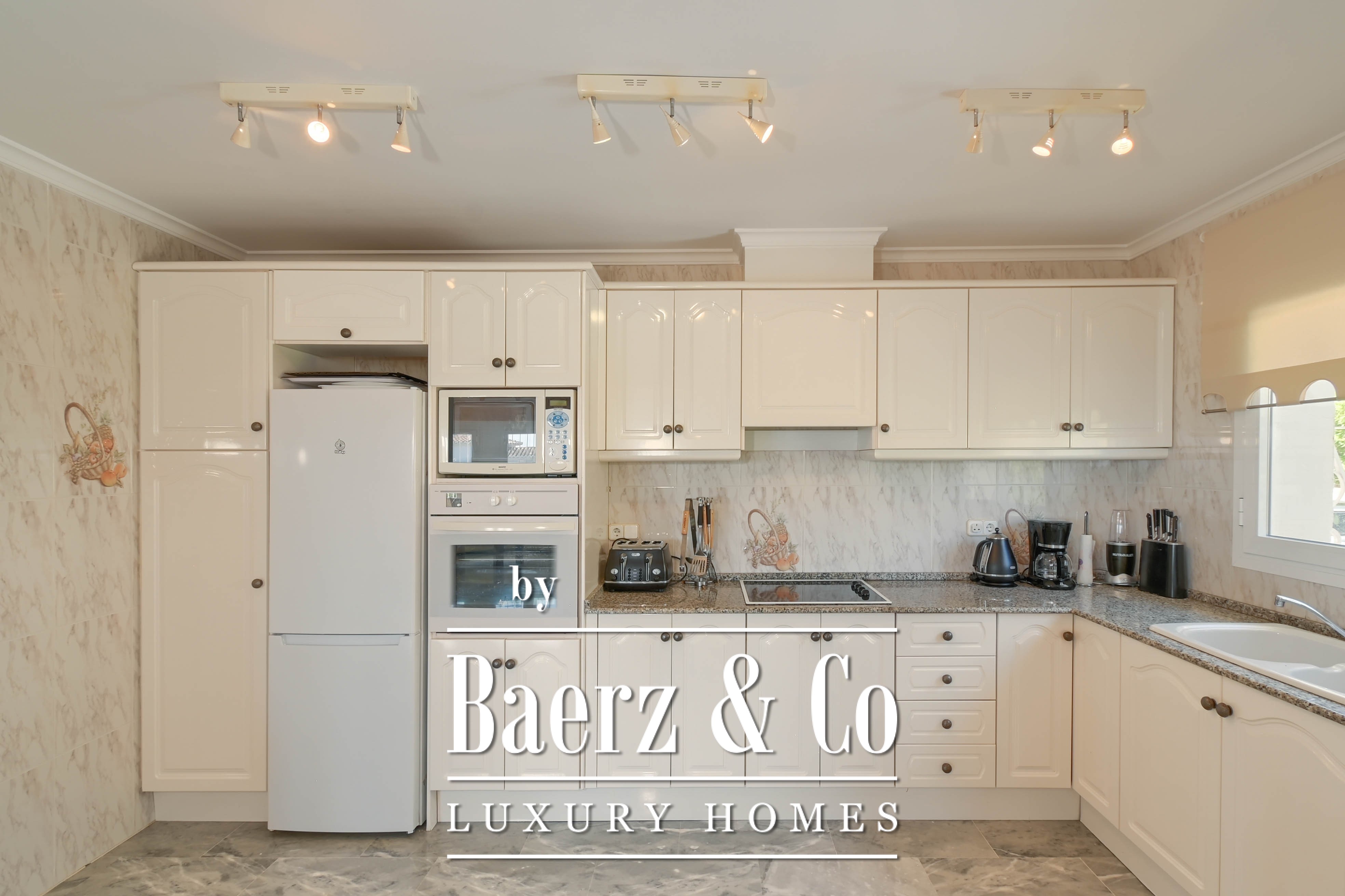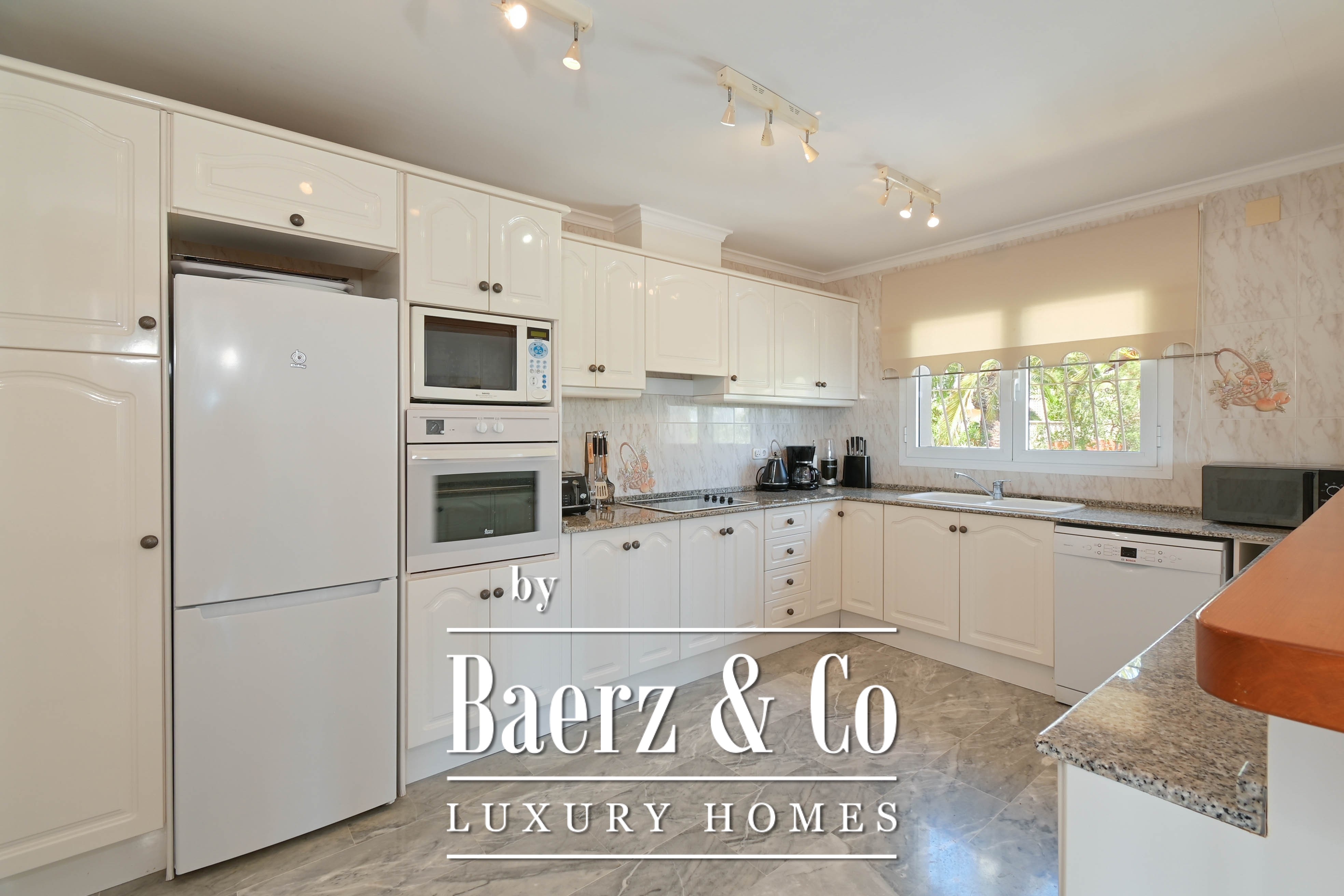 Villa Moraira offers a unique renovation project with sweeping sea views and the rare amenity of a double plot measuring 1,973 m². From its terrace, the vistas of the Mediterranean set a calm rhythm, while the proximity to Moraira’s centre and attractive beaches invites an easy, walkable lifestyle. The current structure consists of 284 m², featuring five bedrooms and three bathrooms. Spacious living areas flow towards the outdoors, creating a foundation ripe for thoughtful transformation. A private tennis court sits quietly on the second plot, while the existing garage and generous grounds allow for creative expansion—potential for a second residence, a guesthouse, or a pool house, tailored to personal vision. The Mediterranean character endures, ready to be reimagined by a discerning owner seeking substance and potential. Here, architecture, location, and land combine to form a canvas for lasting value in one of Costa Blanca’s most sought-after enclaves. This villa for sale in Moraira blends privacy, opportunity, and the timeless pull of the sea.