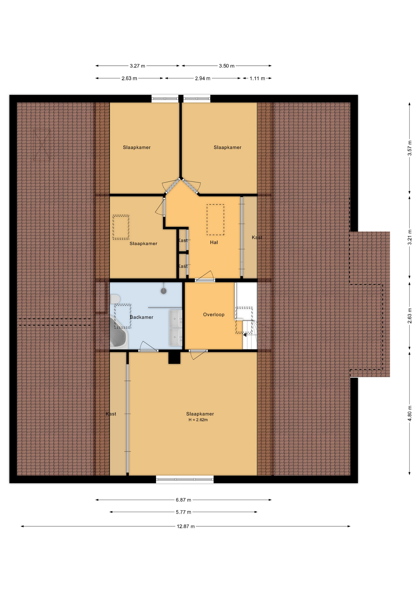 The landing provides access to a room with built?in wardrobes. The spacious master bedroom features a built?in wardrobe and a private bathroom with bathtub, shower, double washbasin and toilet. In addition, there are three more generously sized bedrooms — ideal for family, guests or hobbies.