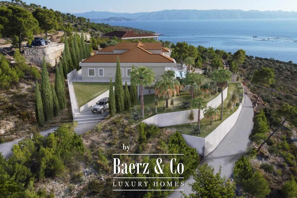 Luxury villa Brač Island anchors itself along the coveted Adriatic coast, presenting 1,200 m² of refined living space on a 32,046 m² plot. The villa stands first row to the sea, with 150 m of direct coastline and enveloped by a mature olive grove of 250 trees. The result is an atmosphere defined by olive-scented breezes and Mediterranean light, where privacy and peace are paramount.