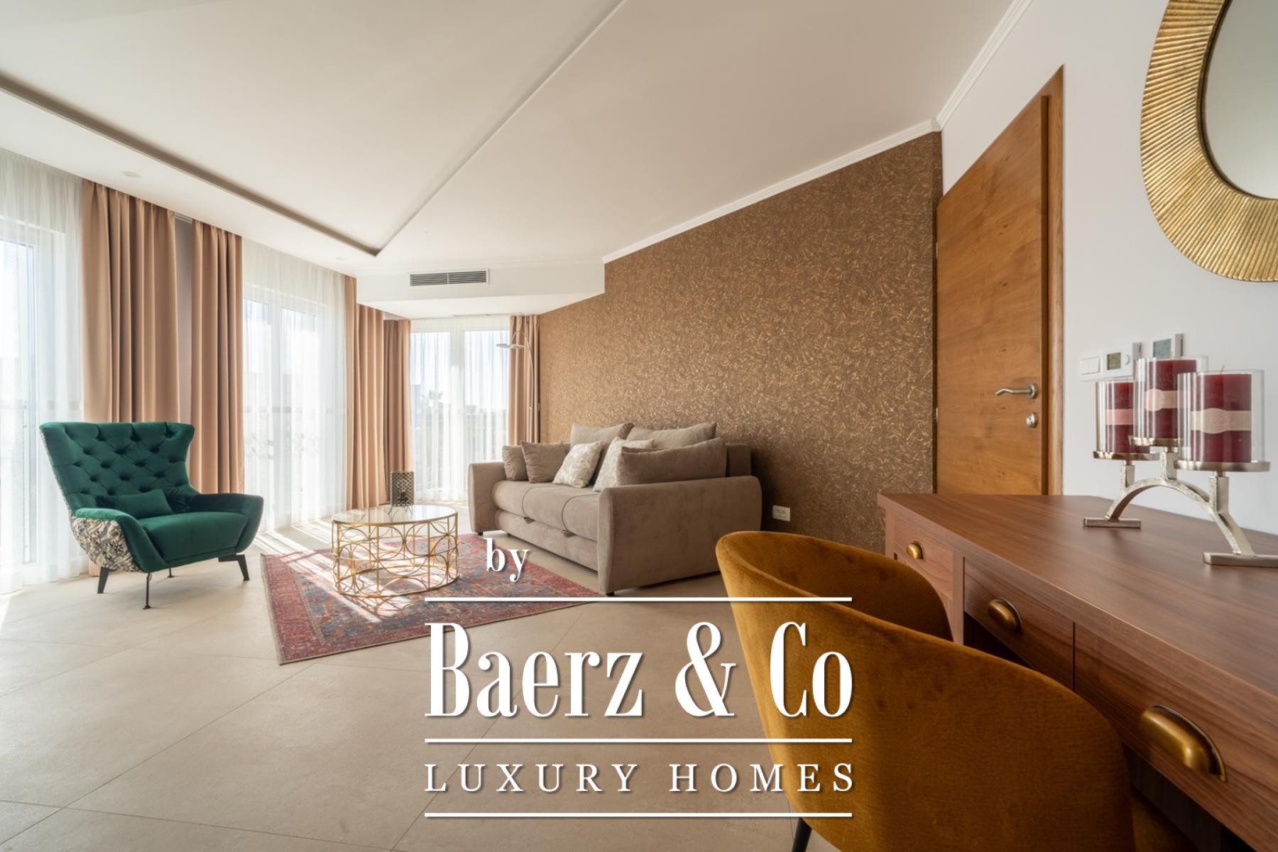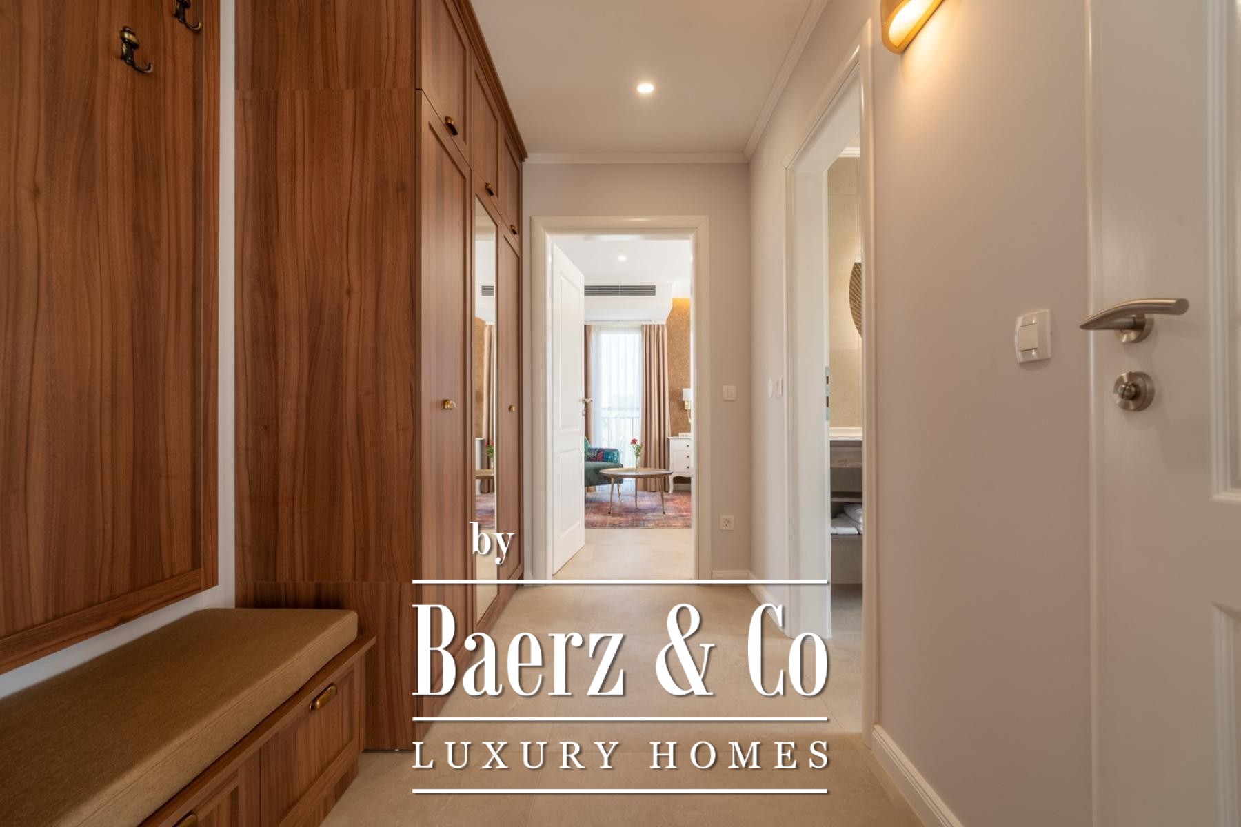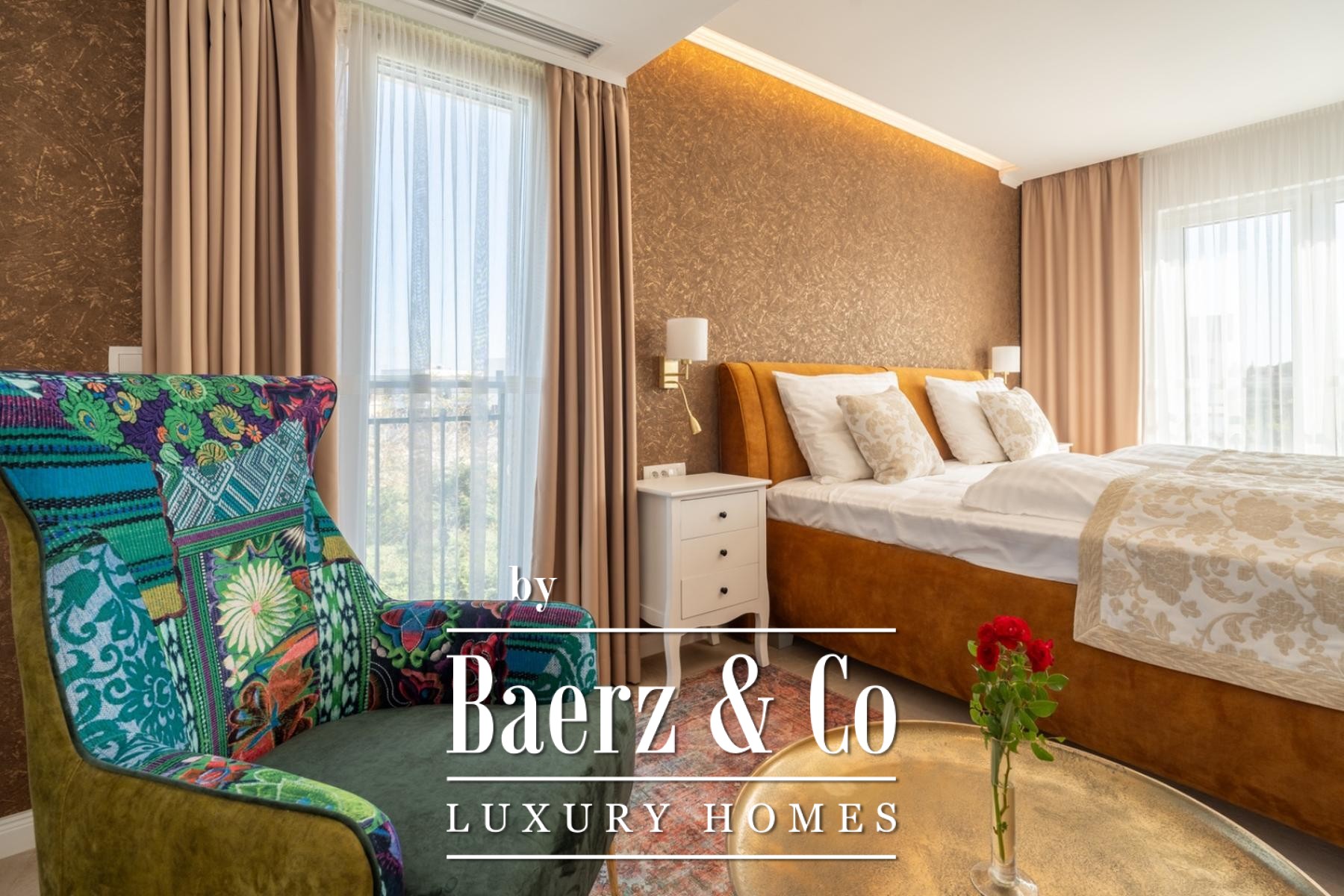 Upstairs, a flexible layout accommodates a two-bedroom apartment, two suites and a studio apartment, each with luxurious bathrooms, dressing rooms, and access to a sunlit terrace. Every element, from materials to bespoke furniture, reflects careful curation.