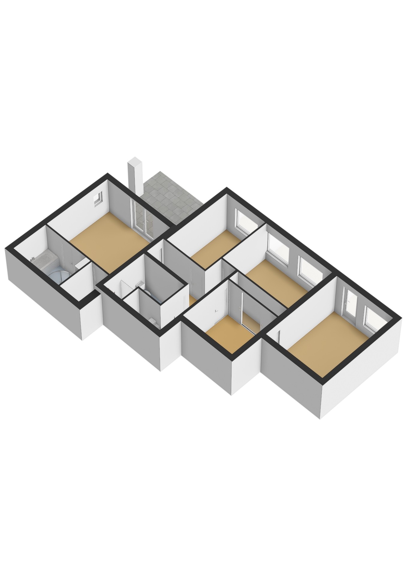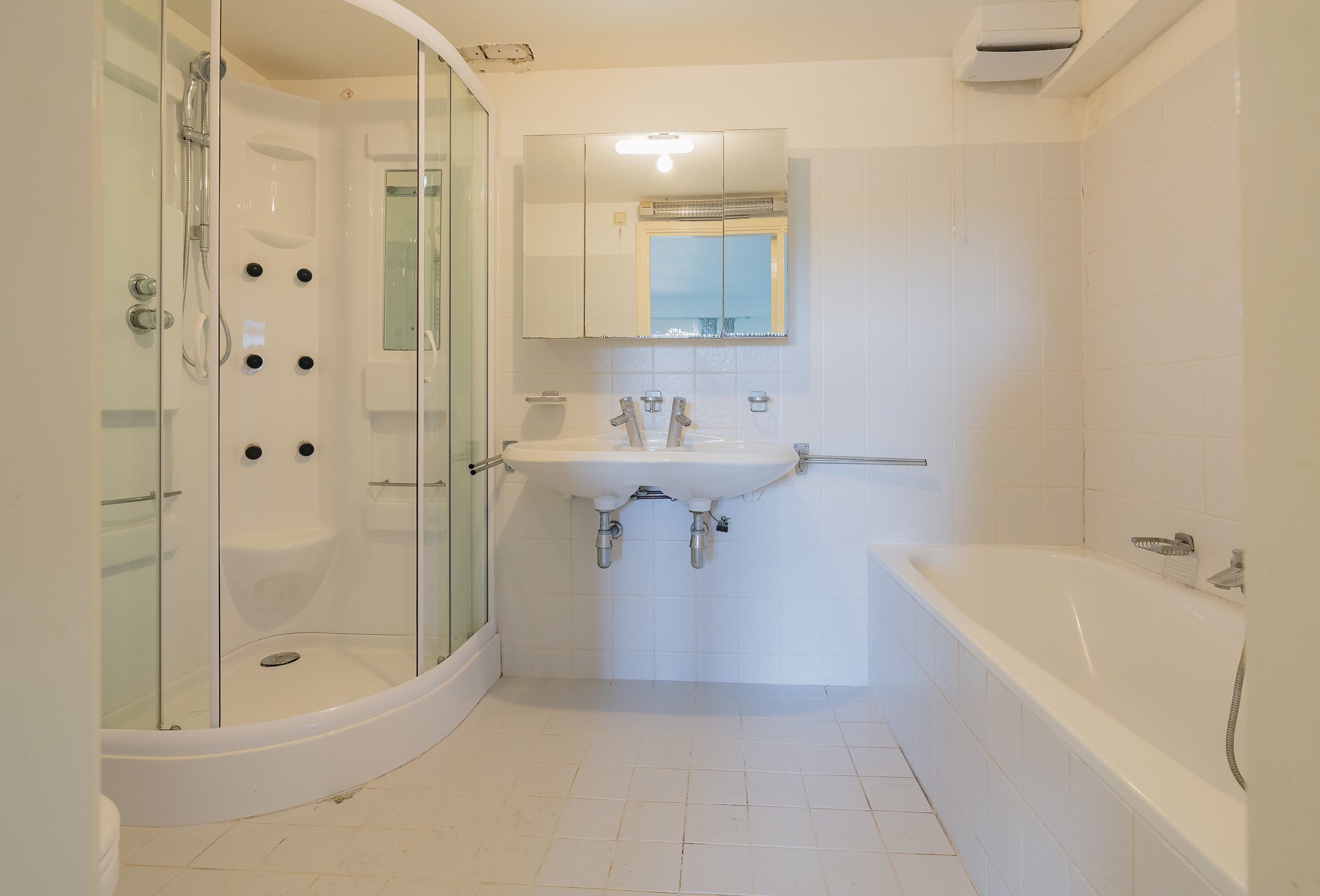 The villa offers a spacious living room with large windows, allowing natural light to flood in abundantly. From the living and dining room you have direct access to a large and sunny terrace, complete with an attractive outdoor fireplace - perfect for long summer evenings or cozy winter moments outside.