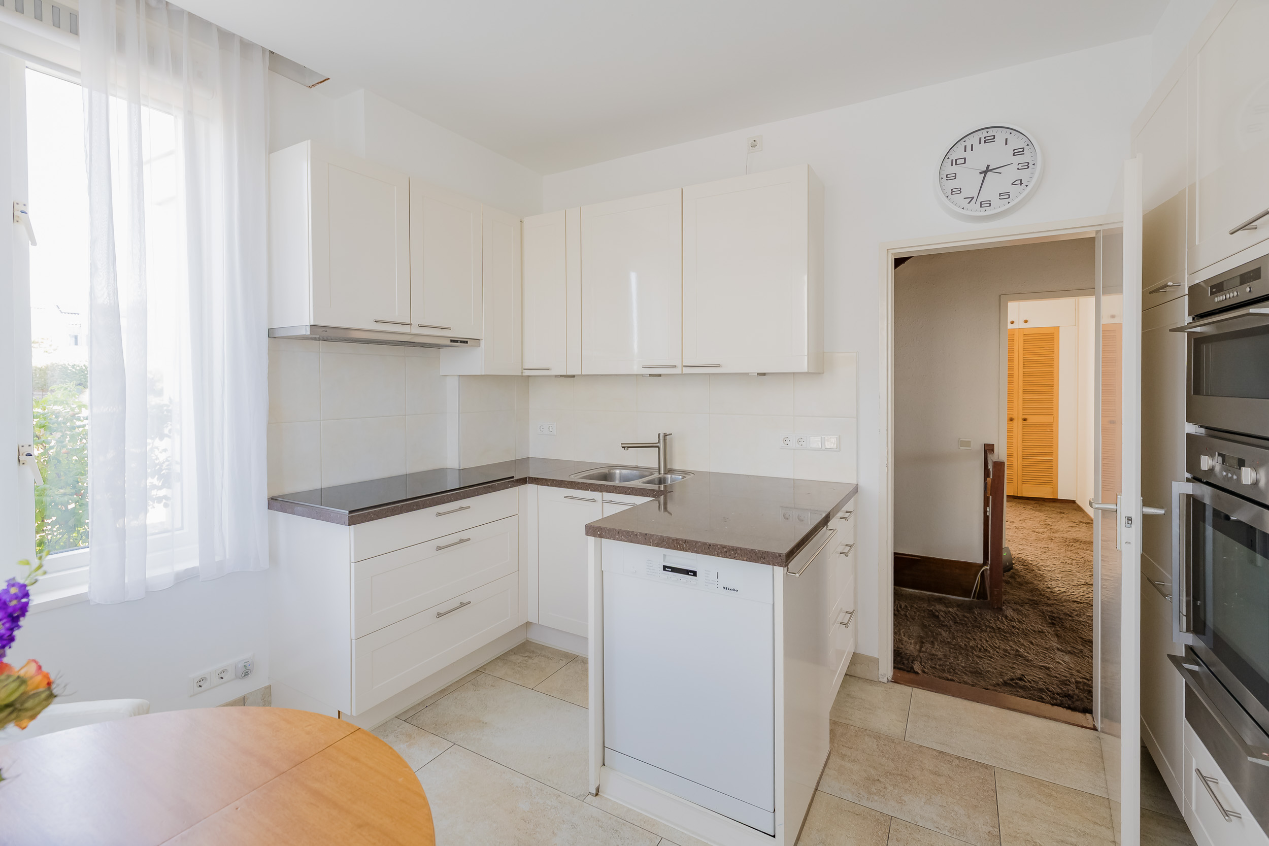 The kitchen, equipped with built-in appliances, is practically furnished with plenty of cupboard space. Furthermore, on the ground floor, you will find a bright second living room with a gas fireplace, ideal for relaxation or as a spacious study. In addition, the ground floor has a comfortable bedroom with a built-in wardrobe. The spacious, sunny south-facing terrace is accessible from both living rooms. The bathroom in the hall is ideal for rinsing off the sand after a day at the beach.