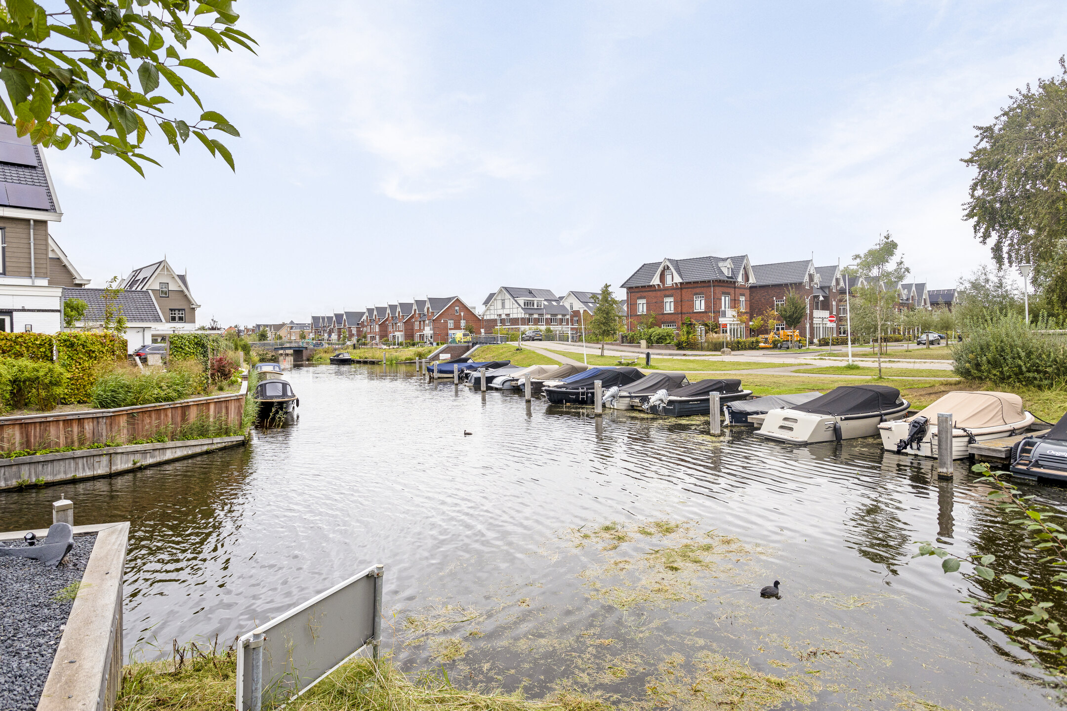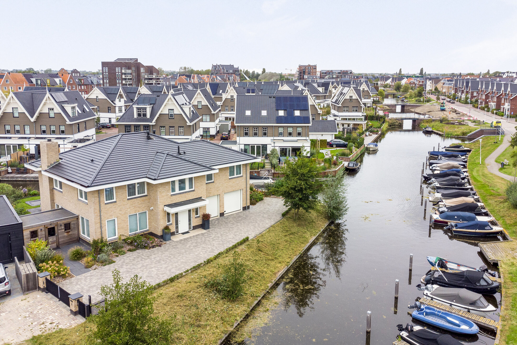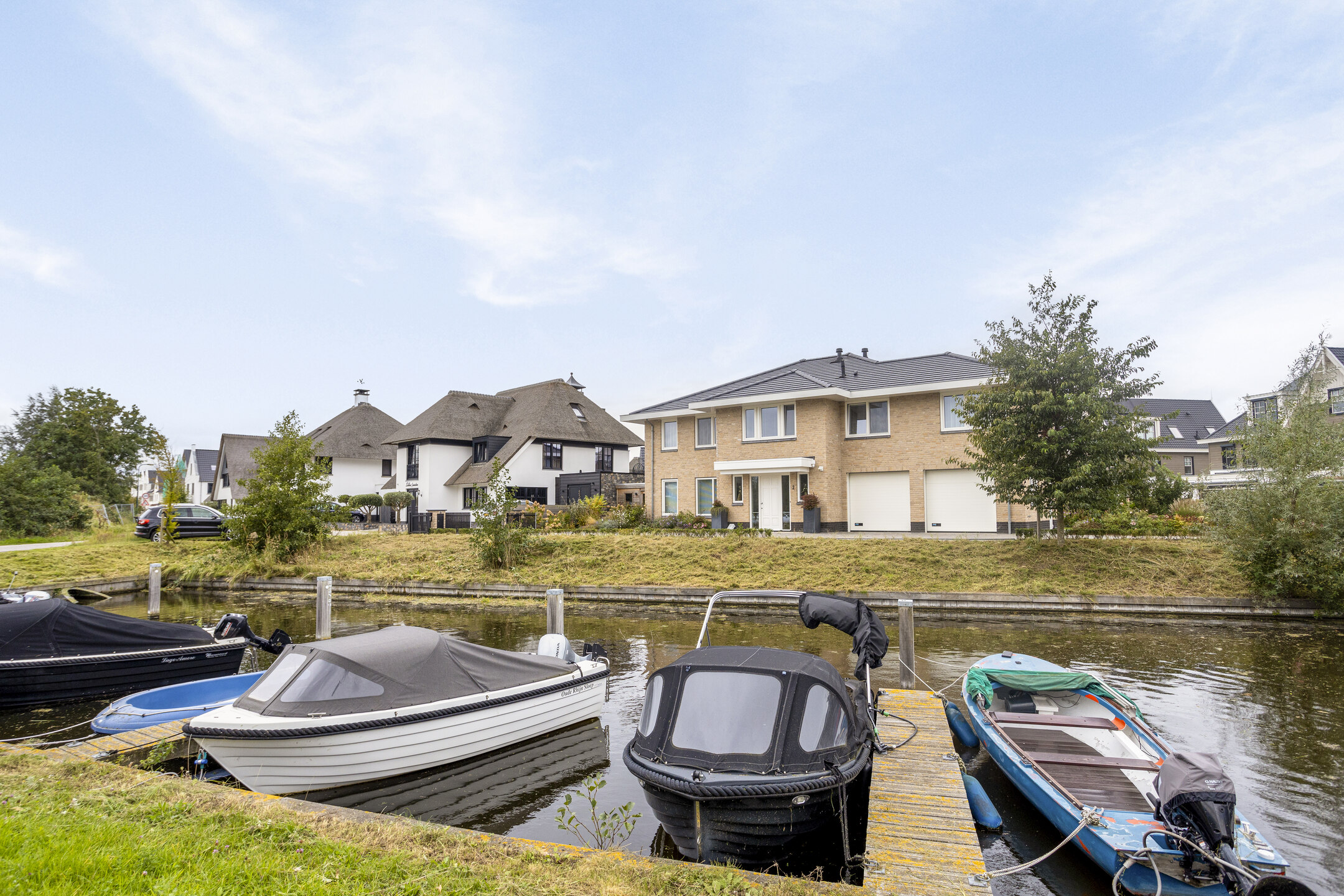 Detached villa Oegstgeest presents a sheltered world where contemporary design meets the tranquility of waterside living. This modern home, completed in 2019, anchors itself on a 762 m² plot bordered by water on three sides, offering unobstructed views and mooring for several boats, one fitted with a boat lift. The 311 m² residence is a study in sustainability, with A energy class, triple glazing, full insulation, and solar panels that balance comfort with responsibility.