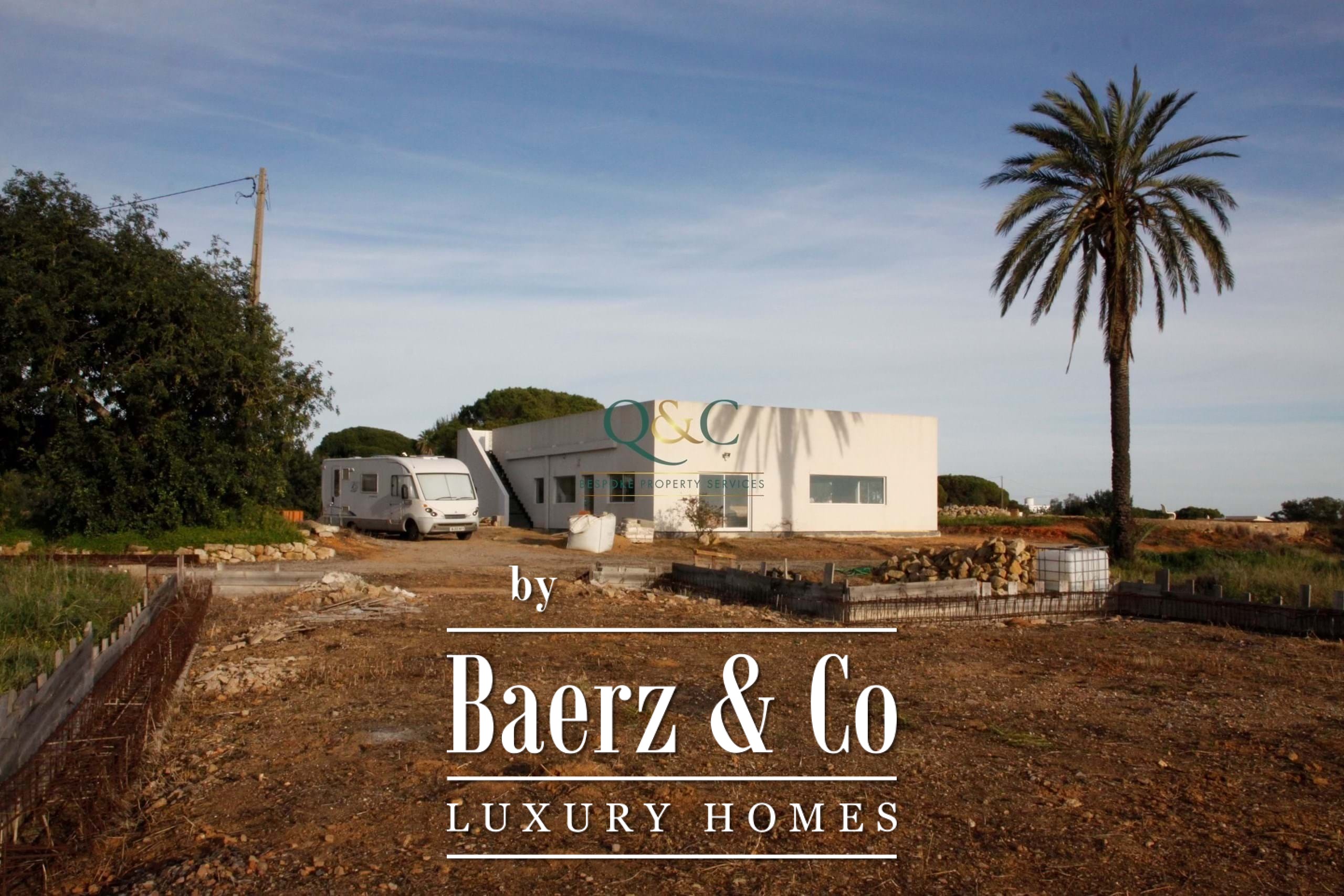 Spread over a 20,400 m² plot, the estate comprises a new 198 m² house under advanced construction, while a second 338 m² residence has its foundation laid and approved planning in place. These two villas, with a combined living area of 536 m², present rare flexibility for a primary residence, guest house, or future investment in the Algarve. Four bedrooms and three bathrooms are elegantly considered into the design, with outdoor spaces including a rooftop terrace to amplify the connection to sea and sky.