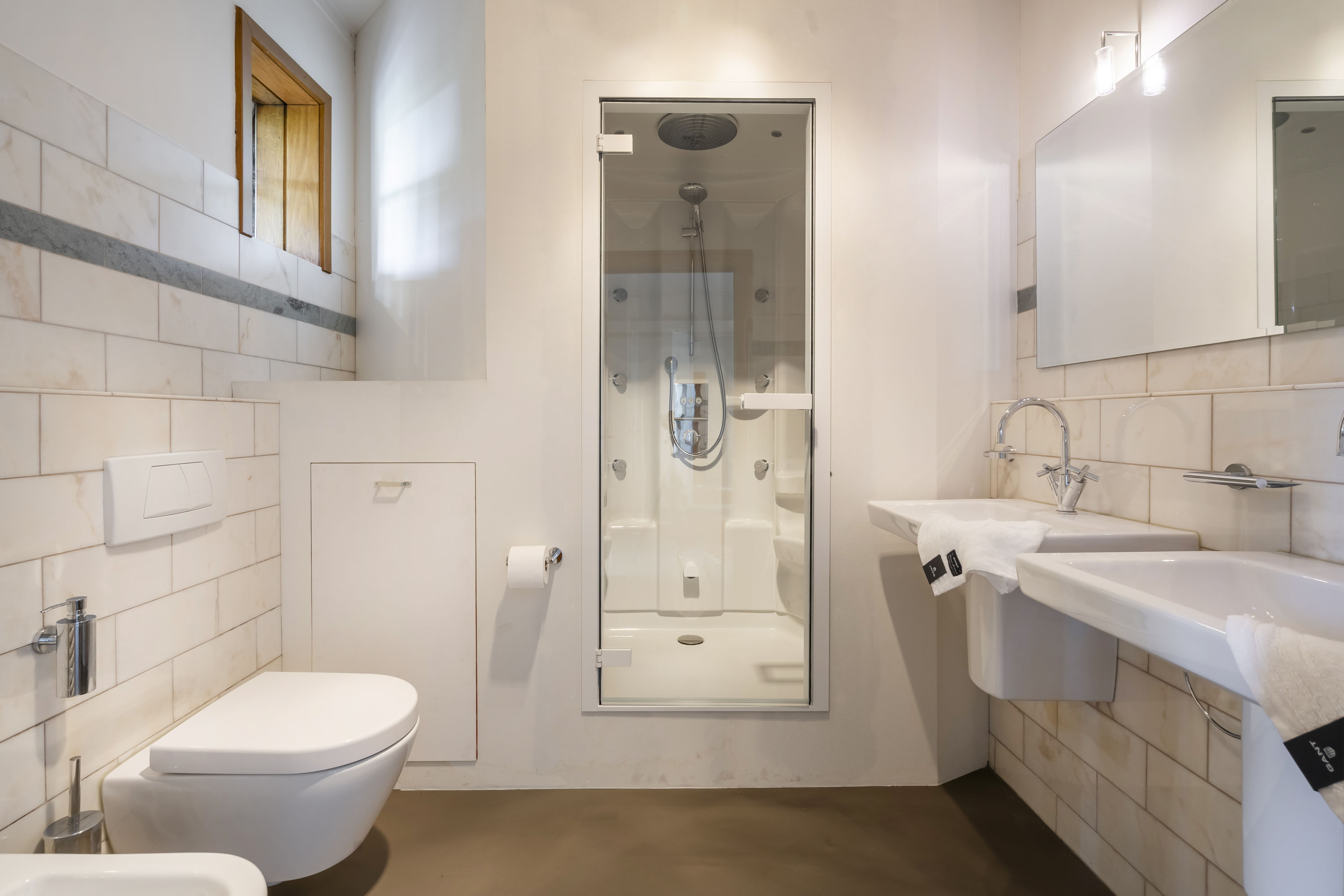 • Master bedroom with air conditioning, built-in wardrobes and an ensuite luxury bathroom featuring double washbasin, bidet, toilet and steam shower cabin