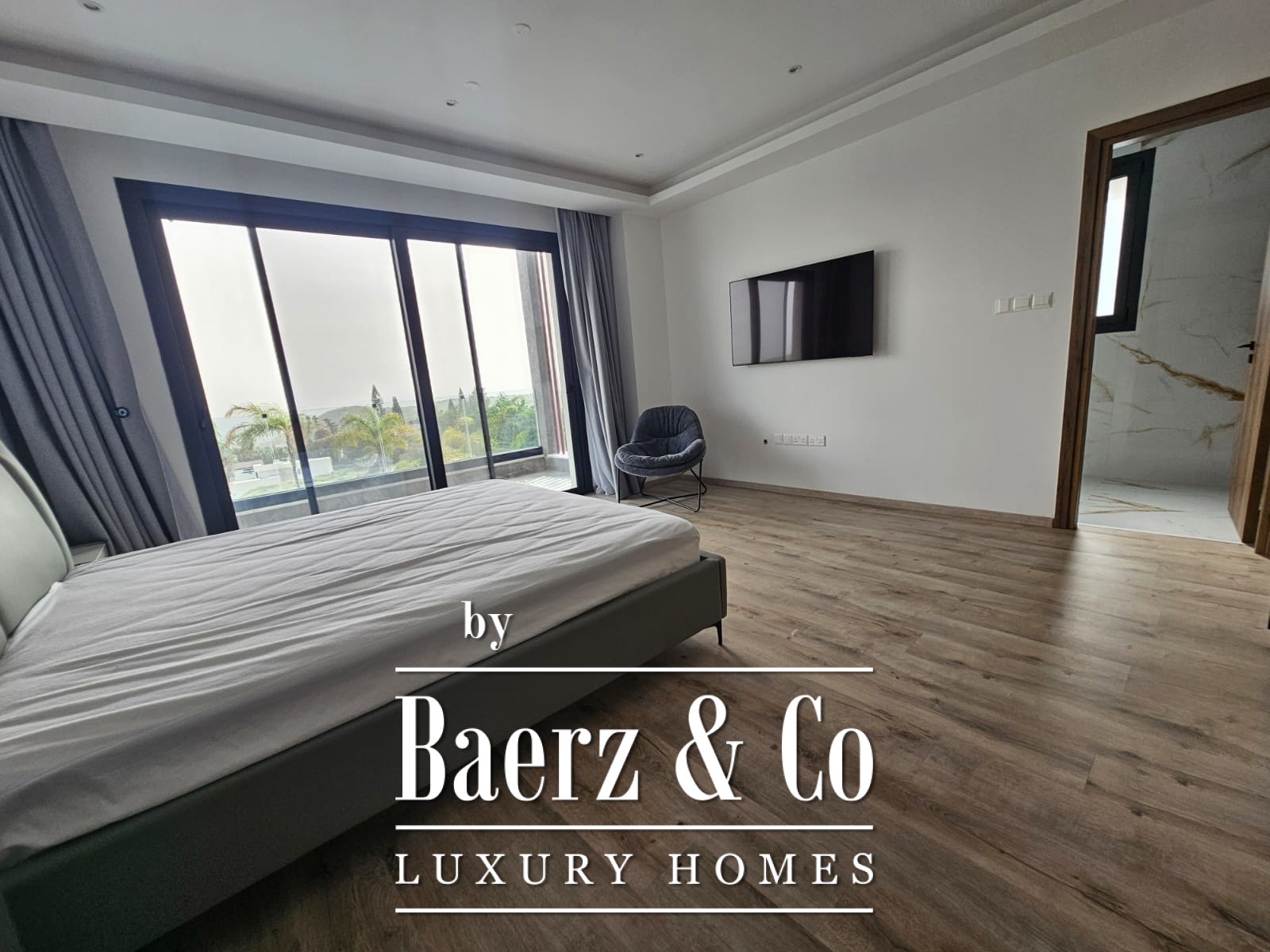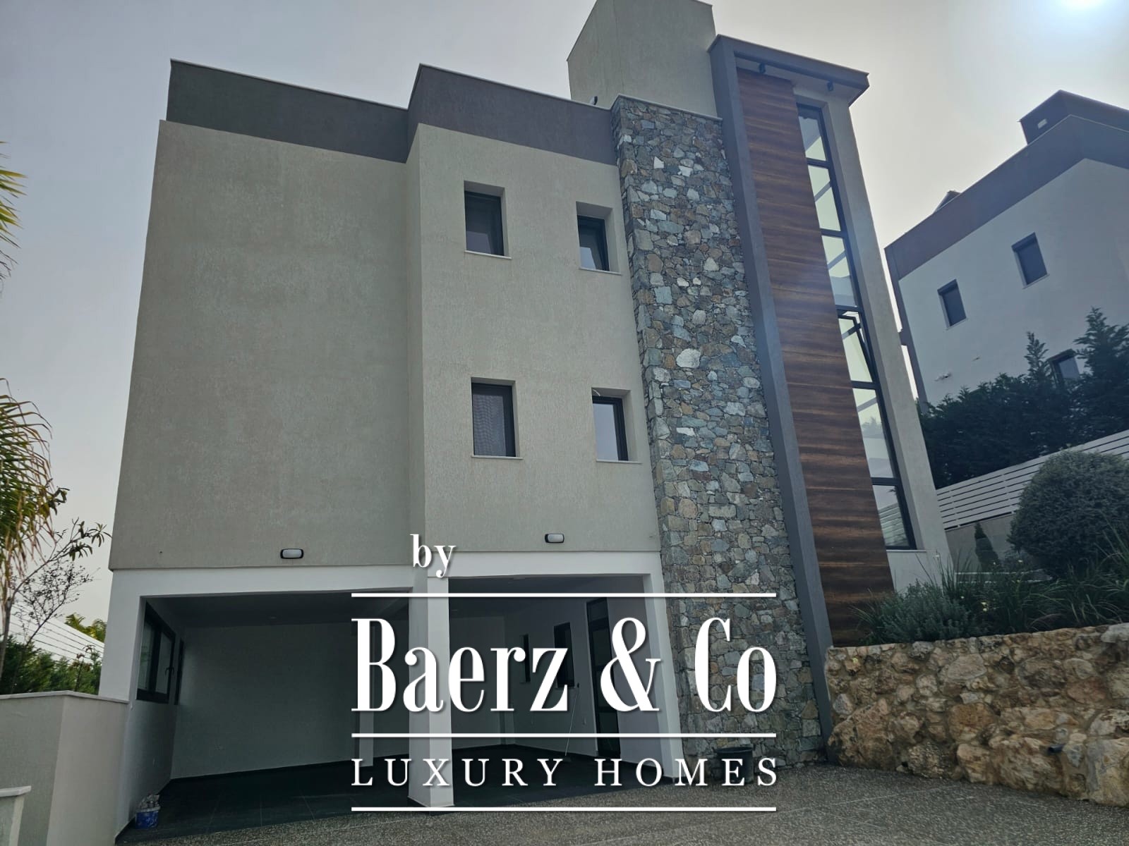 Set within a landscaped 888 sq.m. plot, the villa invites residents to savour quiet moments by the private swimming pool, host gatherings in the sunlit BBQ area, or simply relax in the exceptional living spaces. The layout includes four bedrooms, three bathrooms, and two guest WCs, while a service room adds further convenience. Interiors are finished to exacting standards, featuring large-format tiles, aluminium double-glazed windows for thermal and sound insulation, and a fully integrated underfloor heating and air conditioning system.