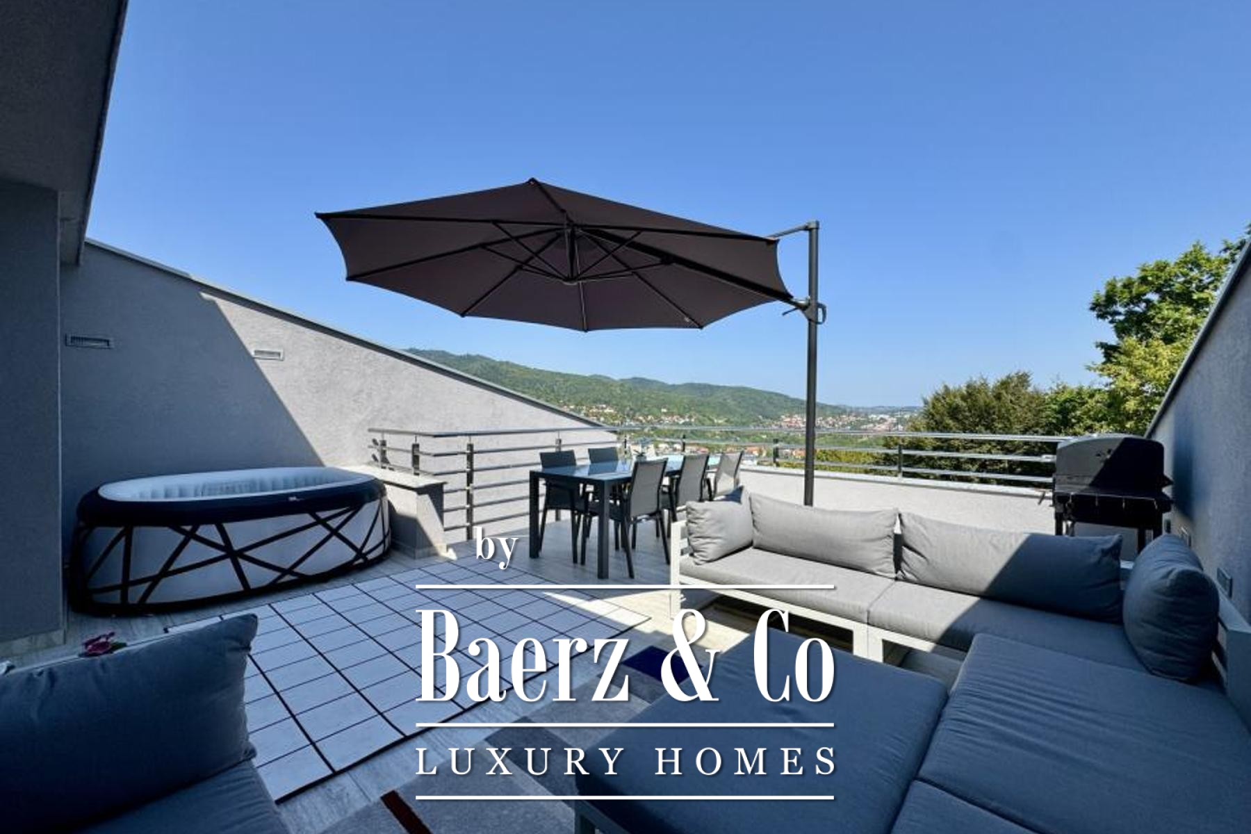 On the third level, the master bedroom extends to a covered terrace and en suite, culminating in a generous 40 m² rooftop terrace with jacuzzi, where the vista encompasses Sljeme and the city to the north and east. A garden, ample parking for up to five vehicles, and recent updates—including a new roof, facade, terraces with Italian ceramics, upgraded lighting, and Daikin air conditioning—underscore modernity and ease. This luxury apartment for sale in Podsljeme, discreetly positioned in a quiet cul-de-sac, offers an exceptional vantage point to experience sophisticated Zagreb living.