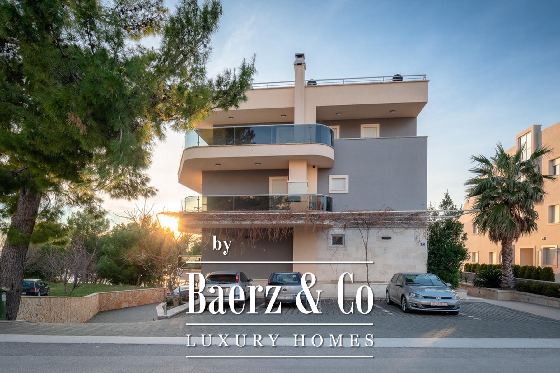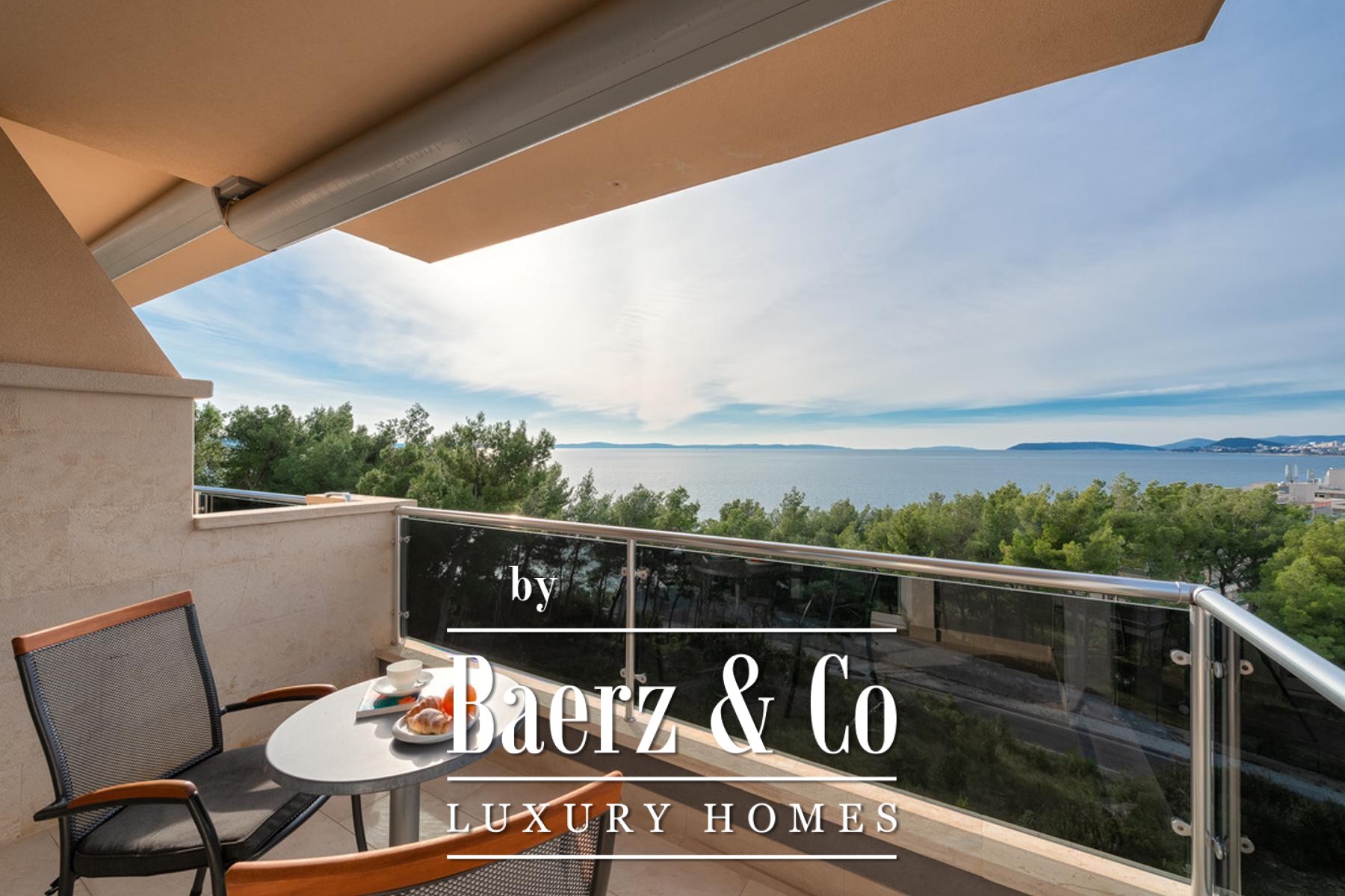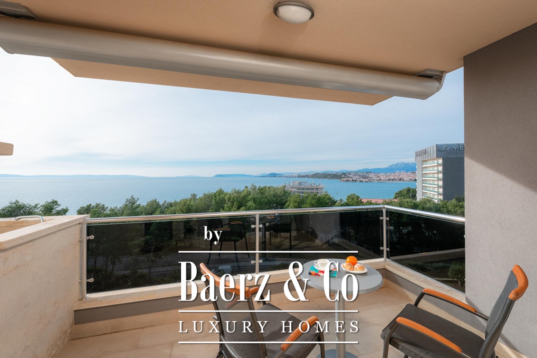 Apartment Podstrana stands as a testament to refined living on the Dalmatian coast. This 196 m² residence, situated in the immediate vicinity of Le Meridien hotel, offers a rare confluence of space, orientation, and uninterrupted sea views. The apartment’s configuration provides an inviting entrance hall leading to the main living room, each zone distinguished by light and deliberate spatial flow. The kitchen is fully equipped and pairs seamlessly with the dining area, while three bedrooms, two bathrooms, and a separate toilet are set apart, affording privacy and quiet.