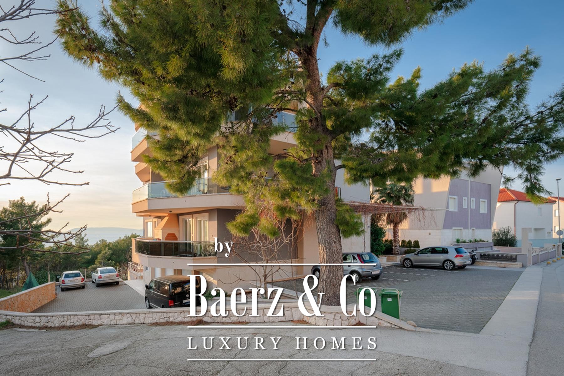 The apartment includes a private 34 m² closed garage for two cars, a 6 m² storage room, an outdoor parking space, and a versatile 28 m² area with natural light and ventilation—ideal for a gym or sauna—accessible by a private hallway. Seamlessly combining security, utility, and authenticity, this luxury apartment for sale in Podstrana preserves the rhythm of coastal life and grants discreet access to amenities and the timeless allure of the Adriatic.