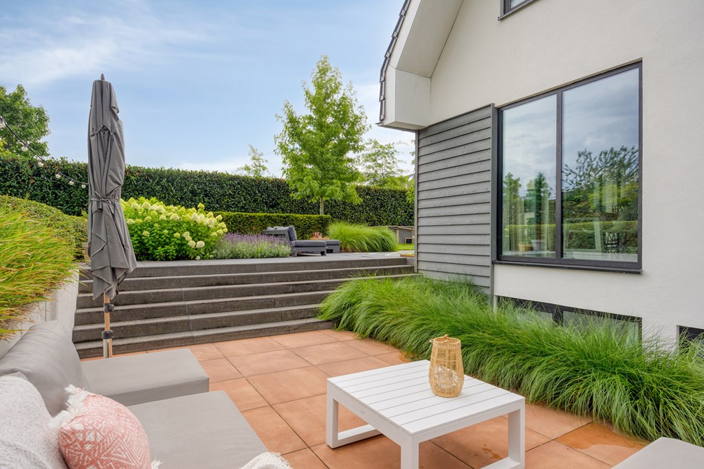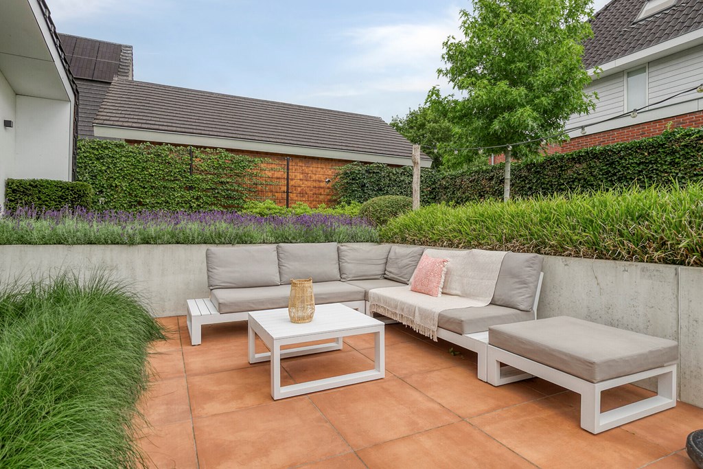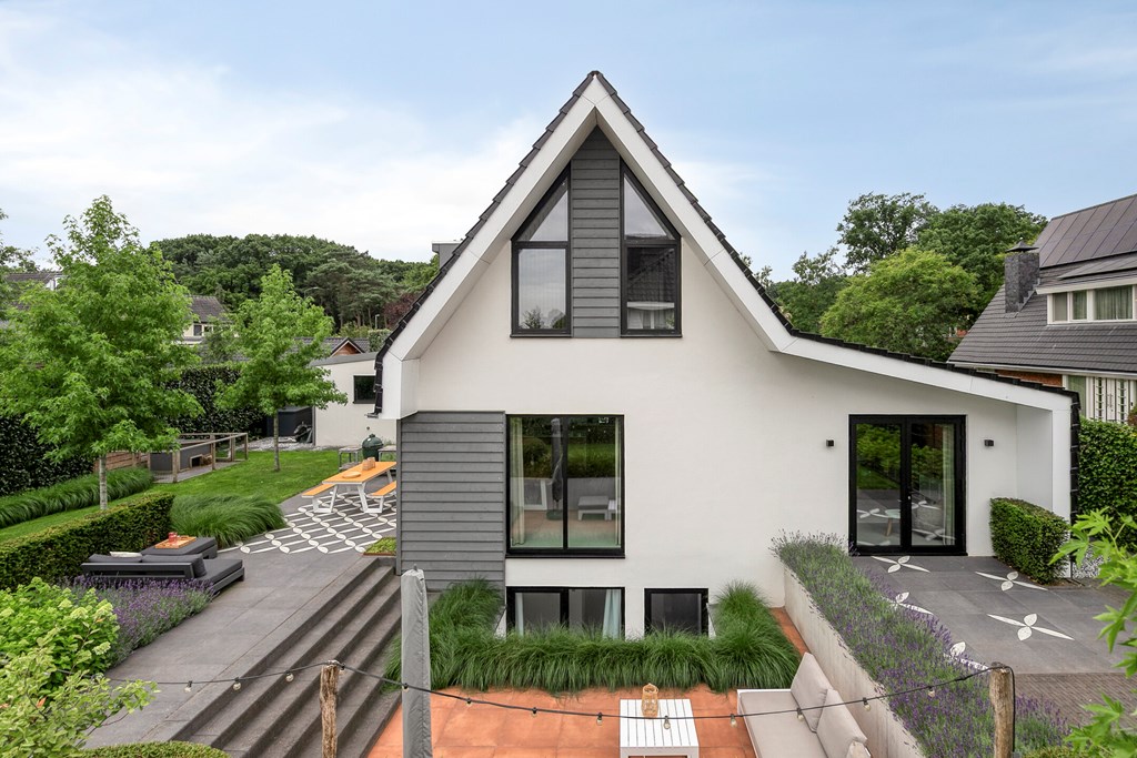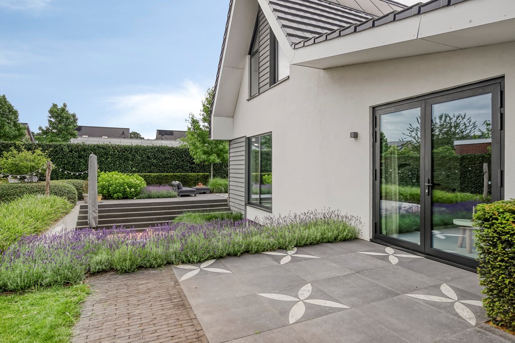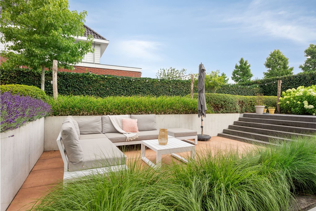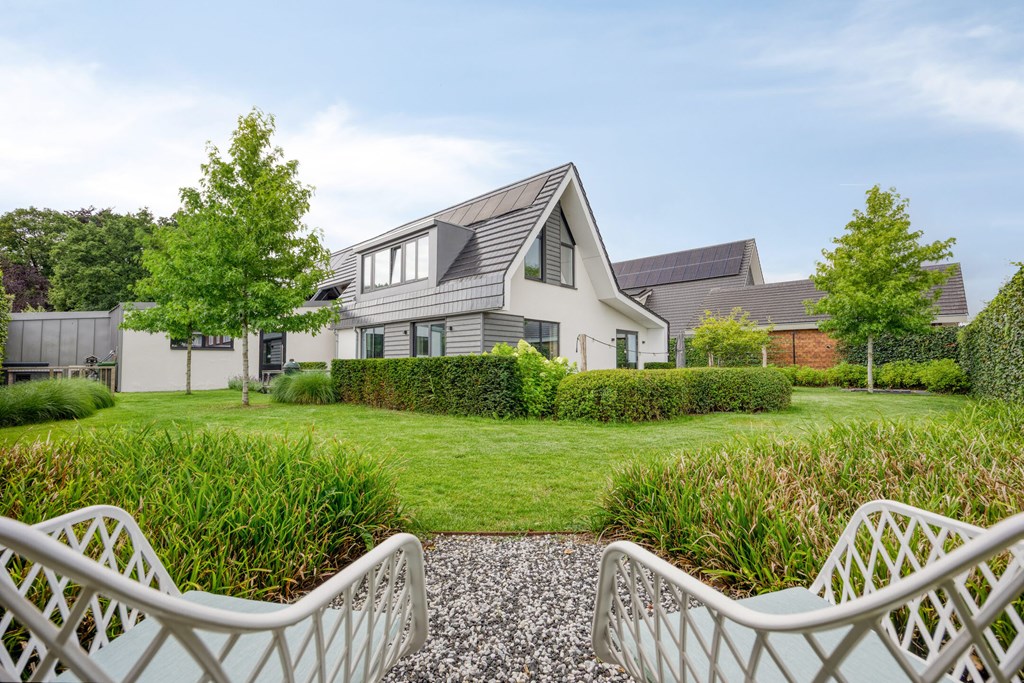 Around the house lies a beautifully landscaped L-shaped garden that offers maximum privacy and peace. From the living and dining rooms you step straight outside to several terraces where you can enjoy the sun. A cozy sunken lounge and the clever layout ensure you’ll always find the perfect place to relax at any time of day. The garden is carefully maintained and truly extends the living pleasure this home provides.