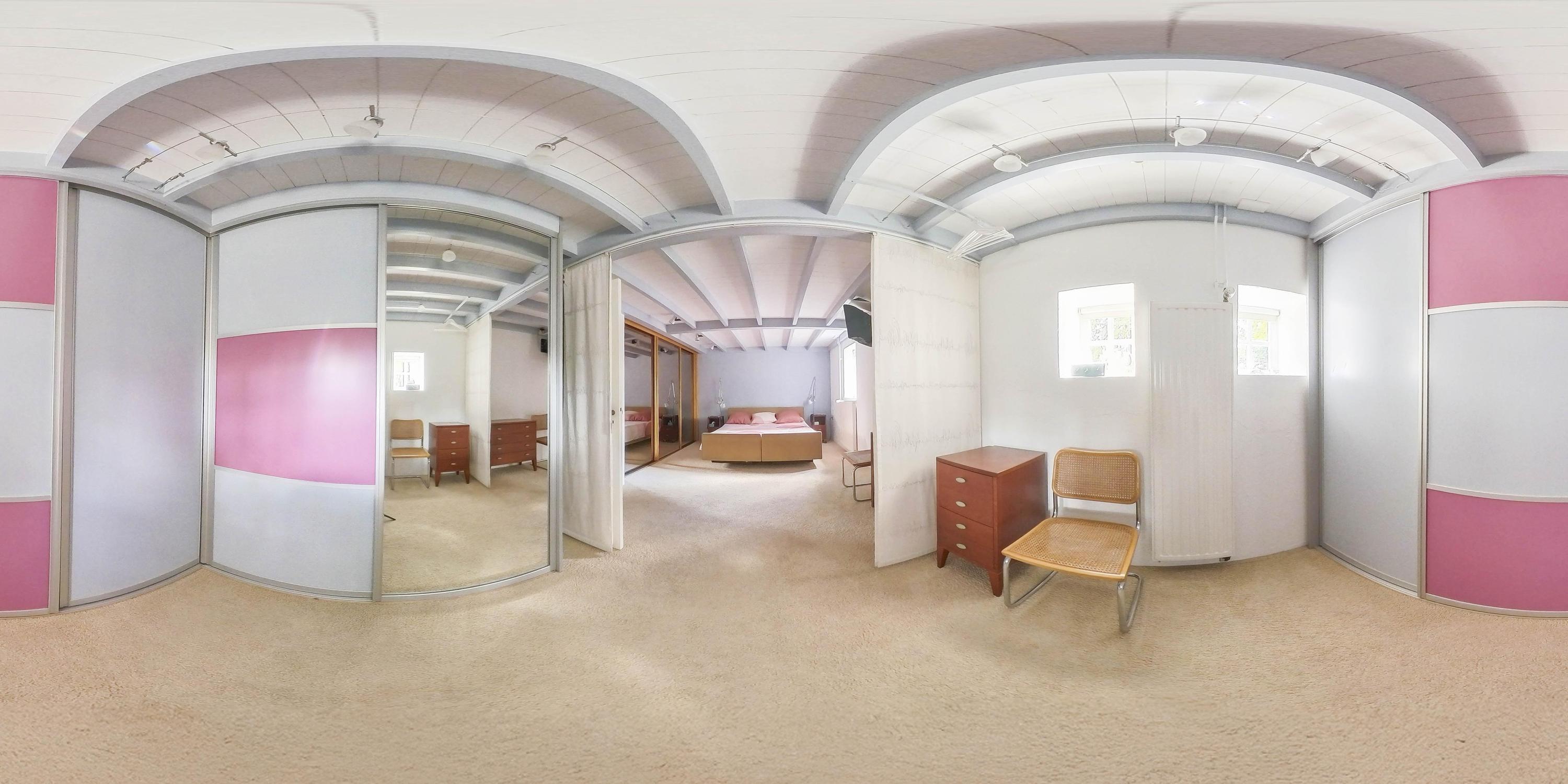 Adjacent to these two rooms on this floor is a connecting room, which could also be used as an extra bedroom or home office. This room has carpeted floors, plasterboard ceiling finish, and a large Velux skylight with blackout blinds.